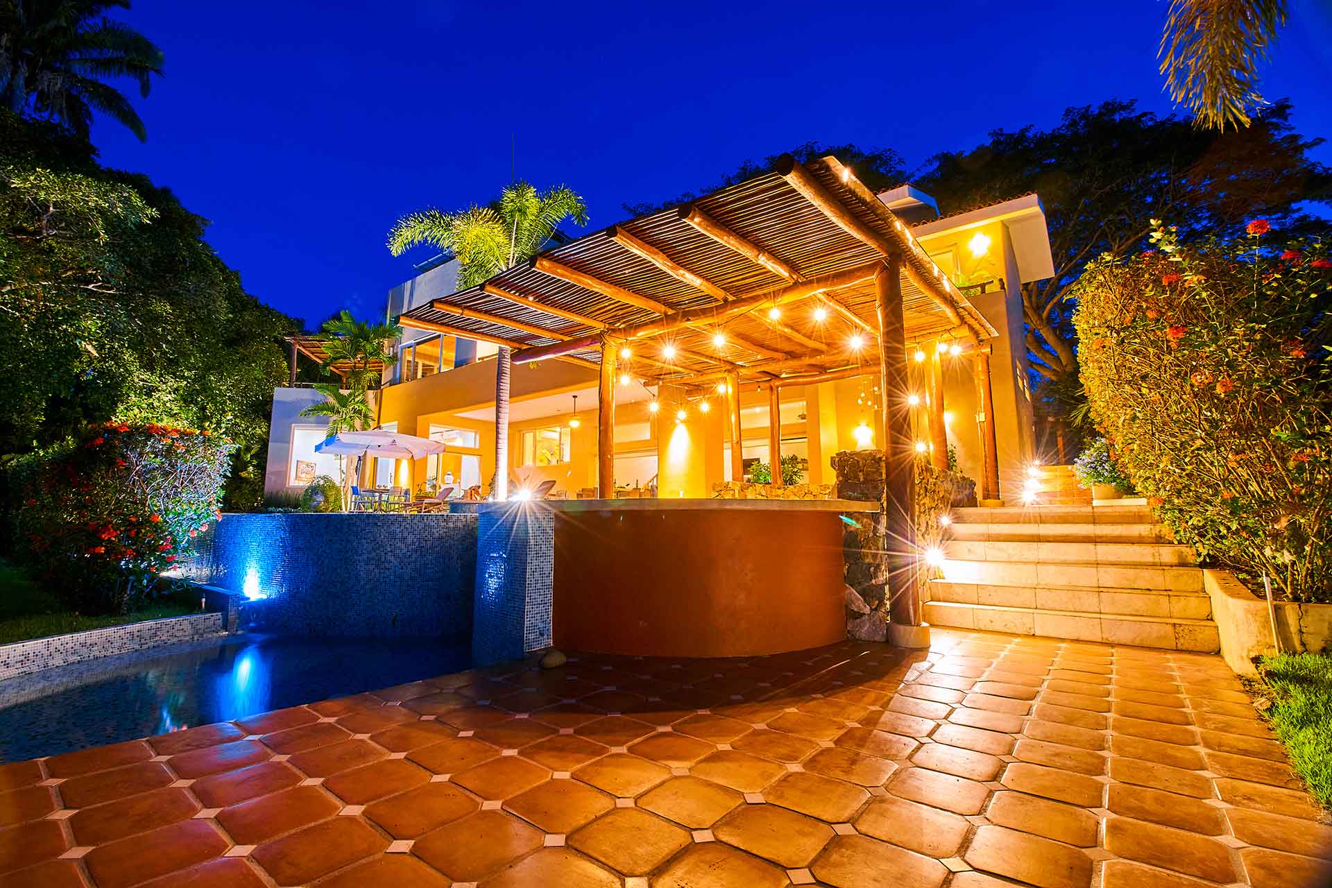 Casa Acuarelas & Casitas, House of Watercolors in English, is a picturesque, four en-suite bedroom villa with two private, one bedroom casitas that are surrounded by beautiful gardens, iguanas and a vast variety of birds while offering views of the Pacific Ocean. Situated in the Las Olas Subdivision, a prestigious, gated, beach front community, Casa Acuarelas & Casitas are less than a five minute walk to the main beach and a short, ten minute, casual walk to the quaint village of San Pancho. The villa and private, detached casitas were constructed in 2010 with an open and modern style that encompasses the idea of maintaining privacy while being spacious enough for family vacations together.