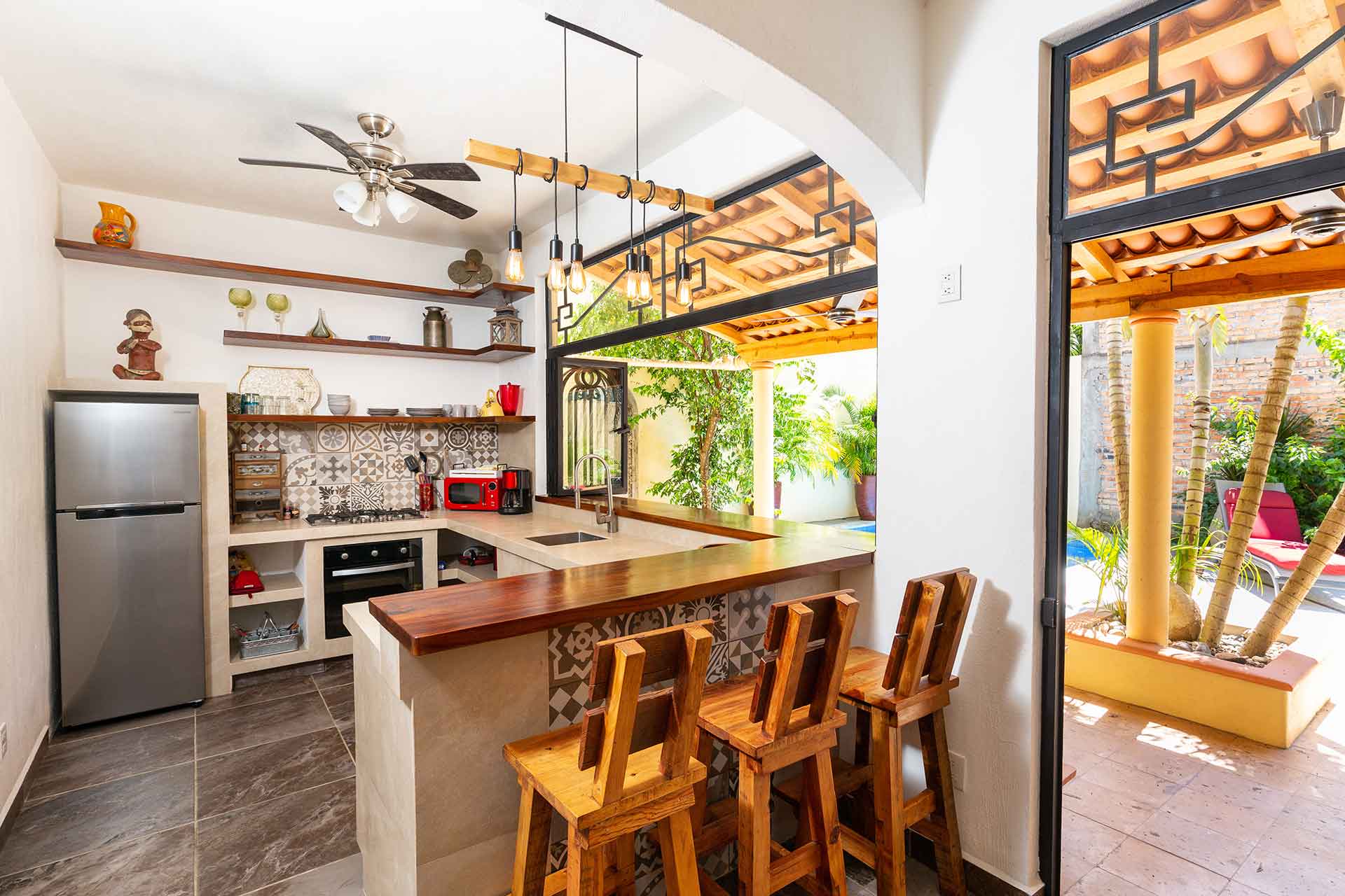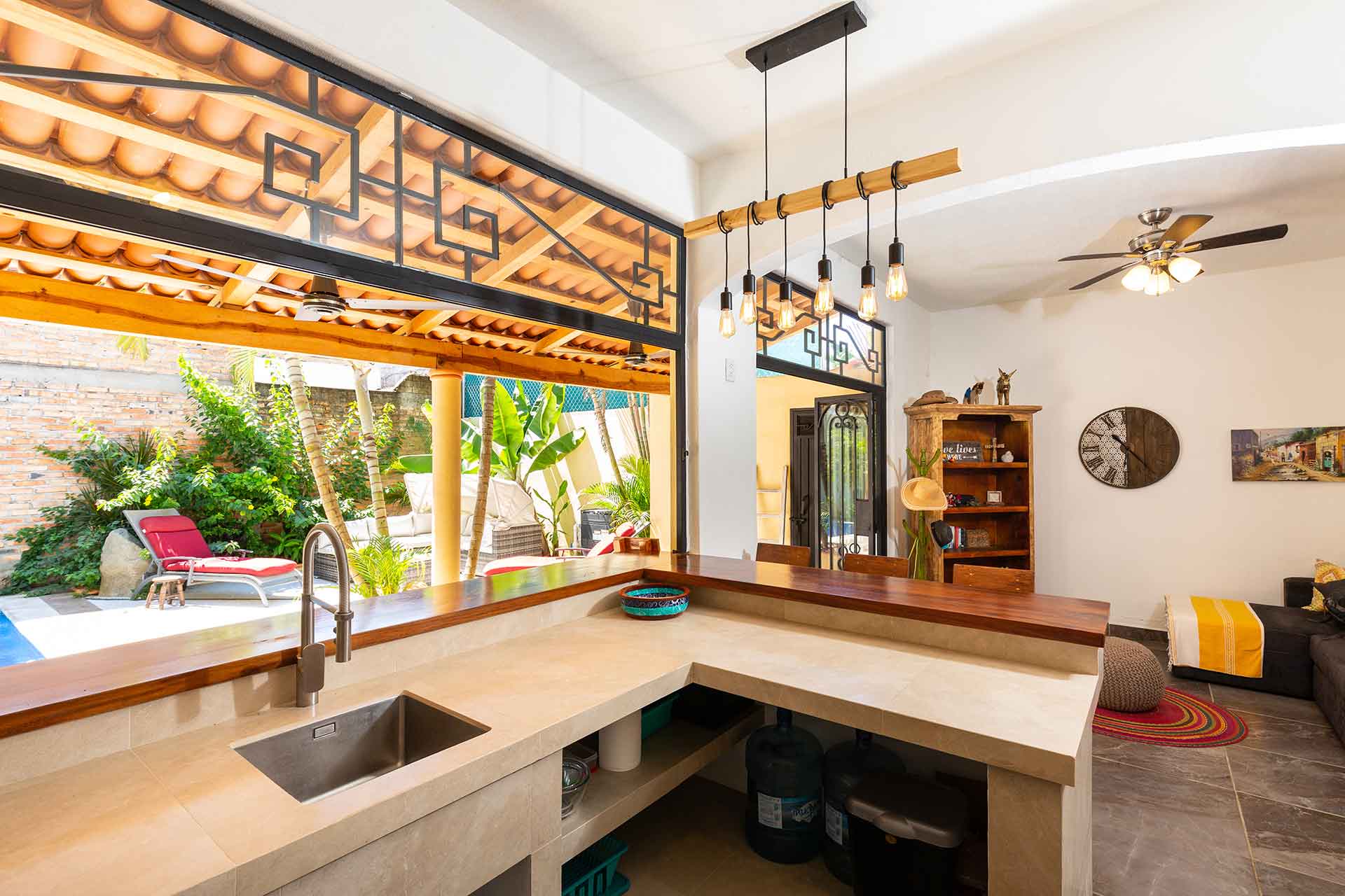 Casa Amorosa (The Loving House) is a highly desirable, newly remodeled, two bedroom, 1 bathroom home, conveniently located in the heart of the pueblo. It is only one block from a wide array of restaurants, mini-groceries stores, gift shops and parks; as well as a quick, five-minute or less walk to the sought after Riviera Nayarit, Pacific Coast beach. The clean and well thought out modern design provides all the necessary comforts, encompassing the warmth of Mexico with either owner or vacation rental occupancy in mind.