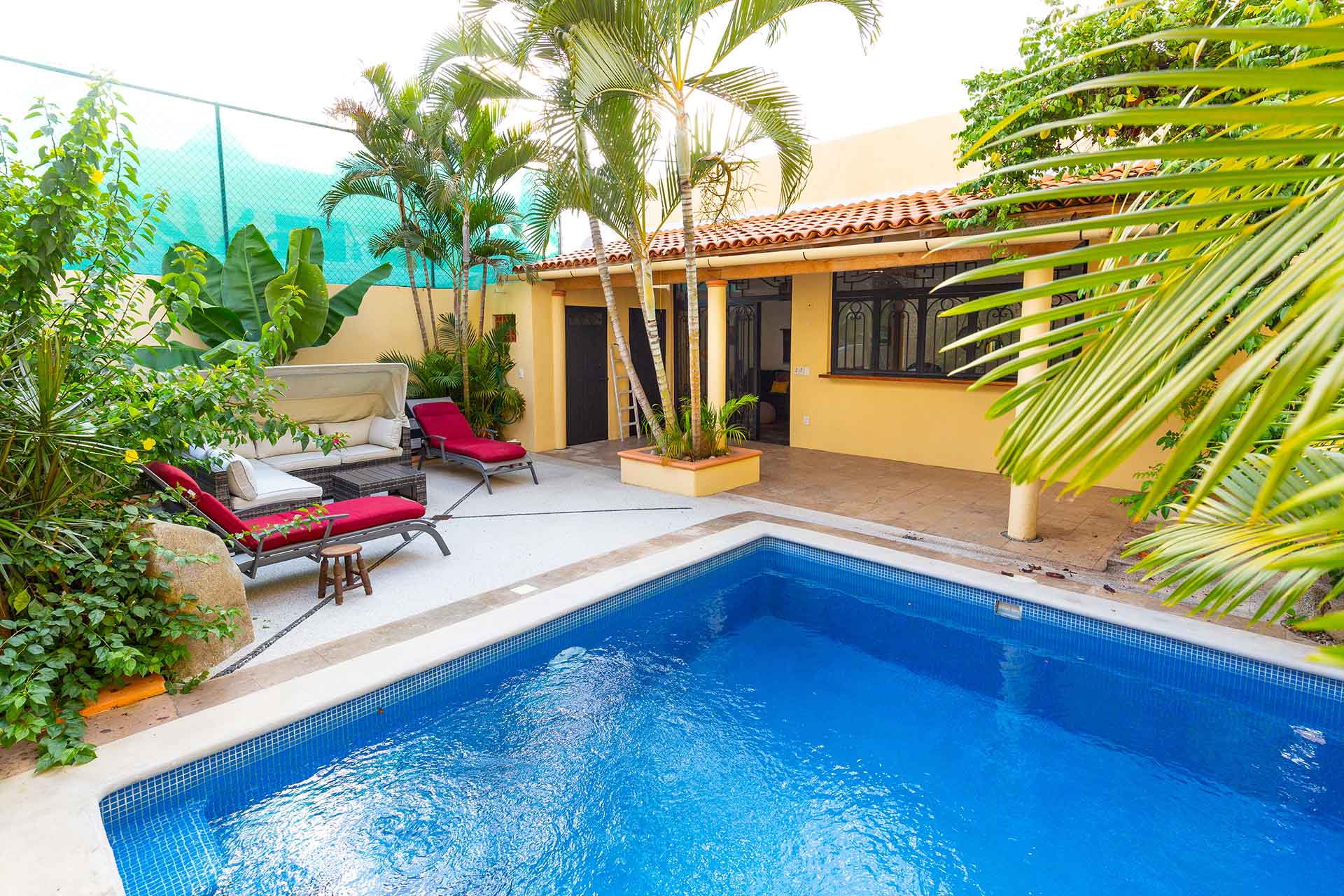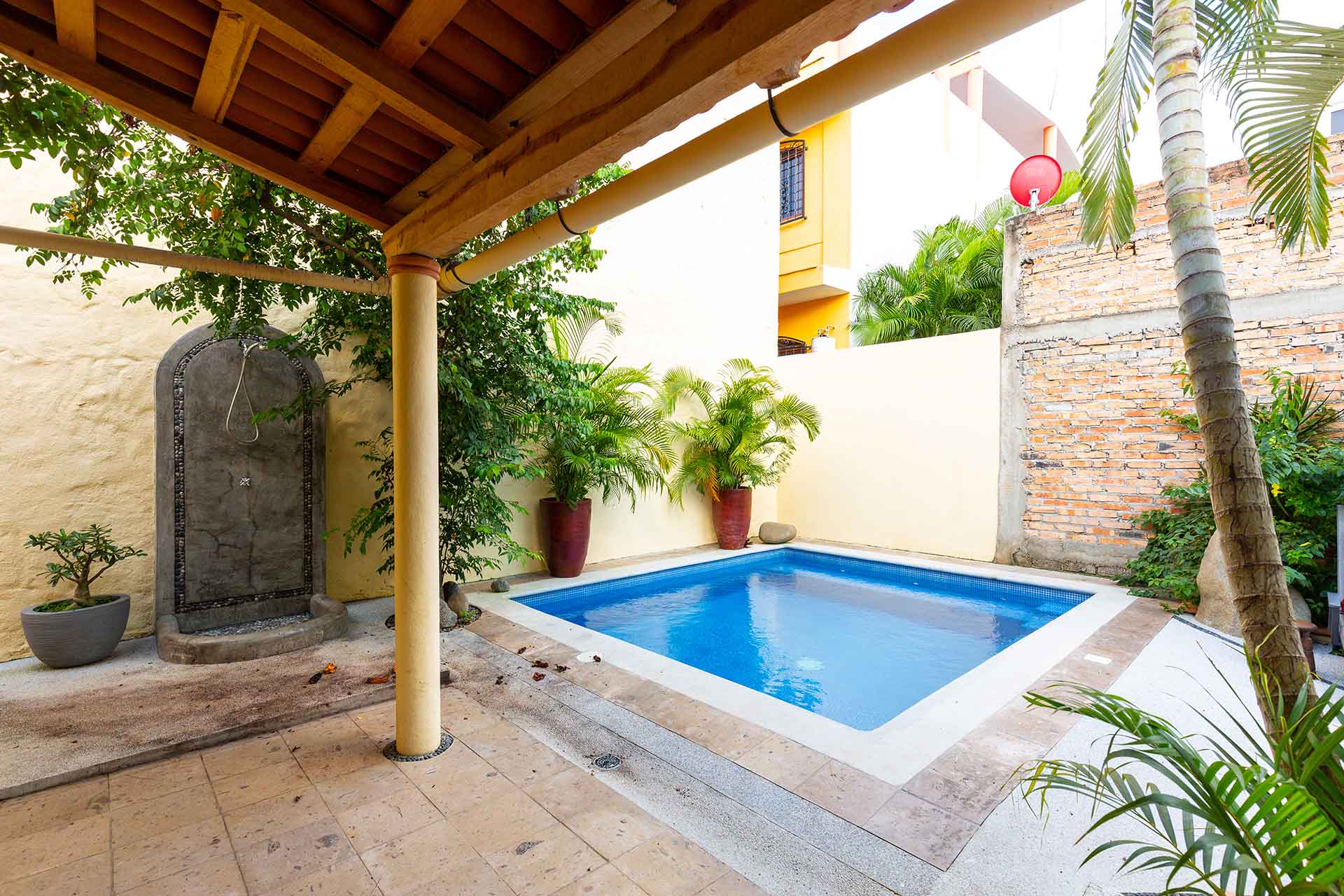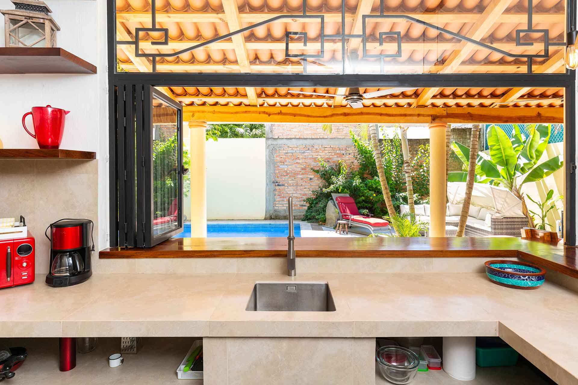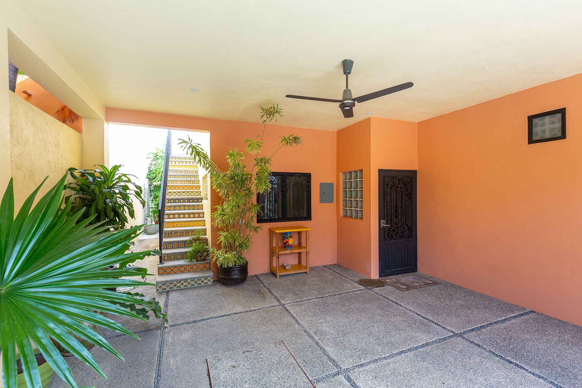 Casa Amorosa is a fully enclosed one level home, providing easy access for all, with the ability to open up the large accordion doors and windows in the kitchen/living room to provide an open air atmosphere when desired. To the side of the home is a covered and gated carport for one car with immediate access to the pool and courtyard, the stairs leading to the roof or a second entrance into the home.