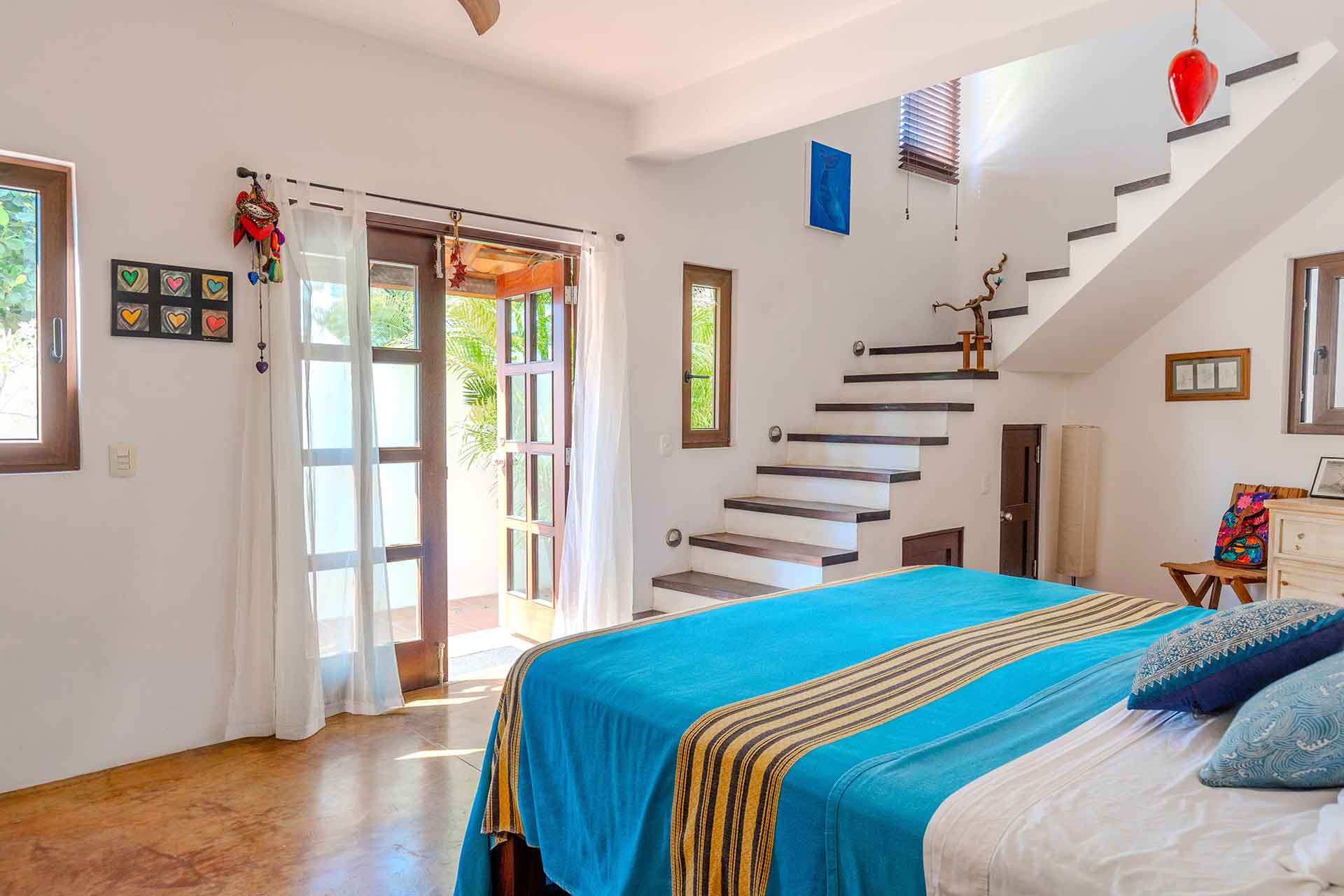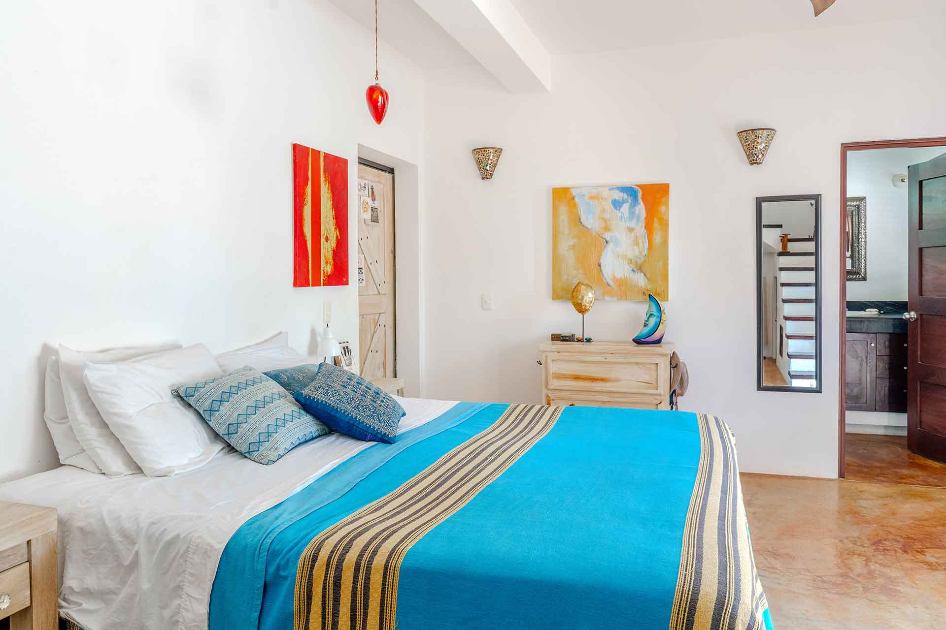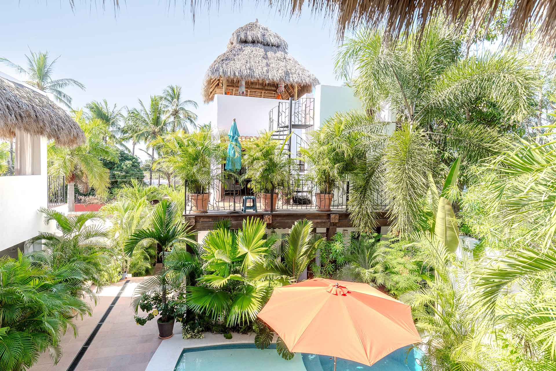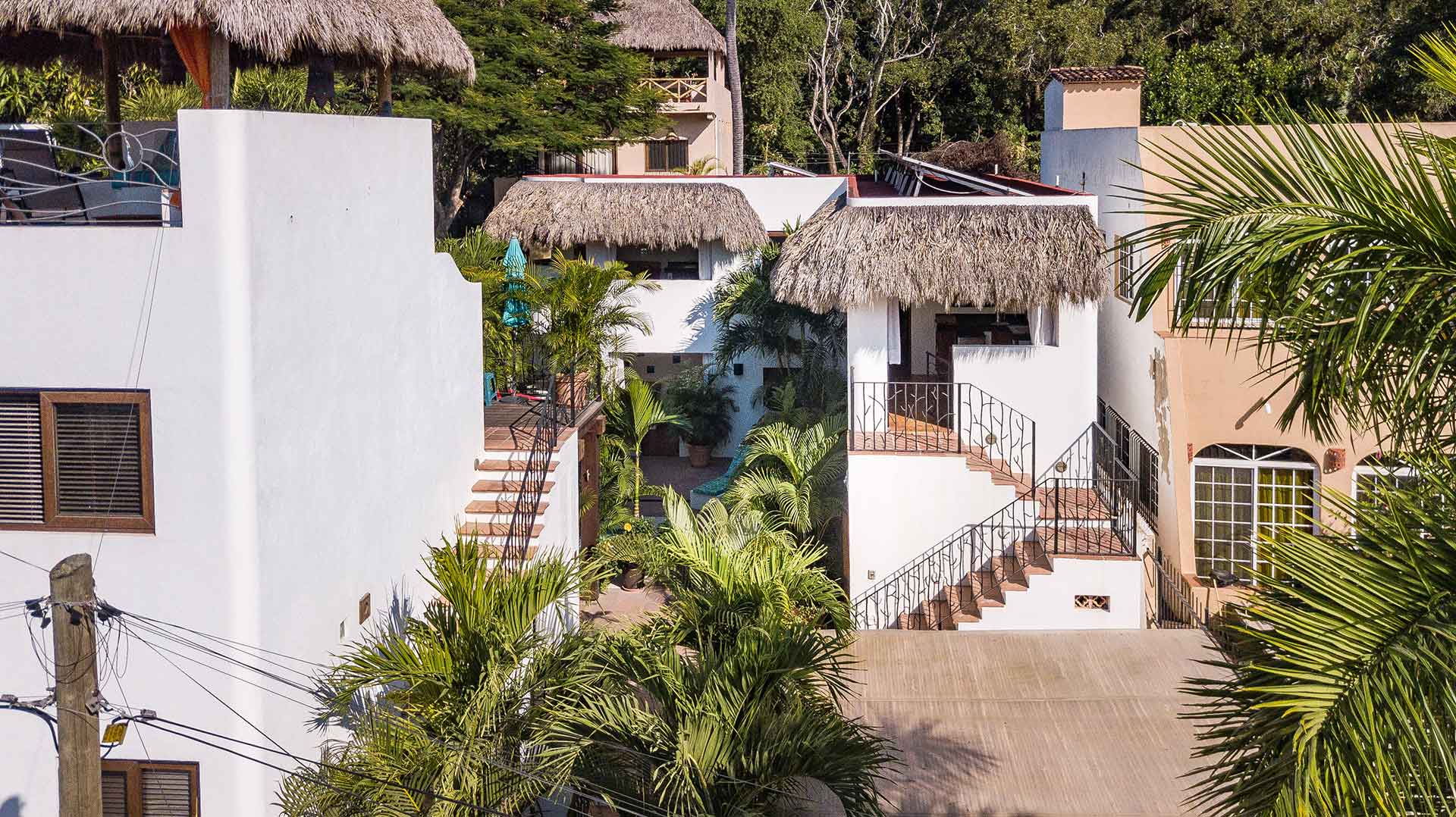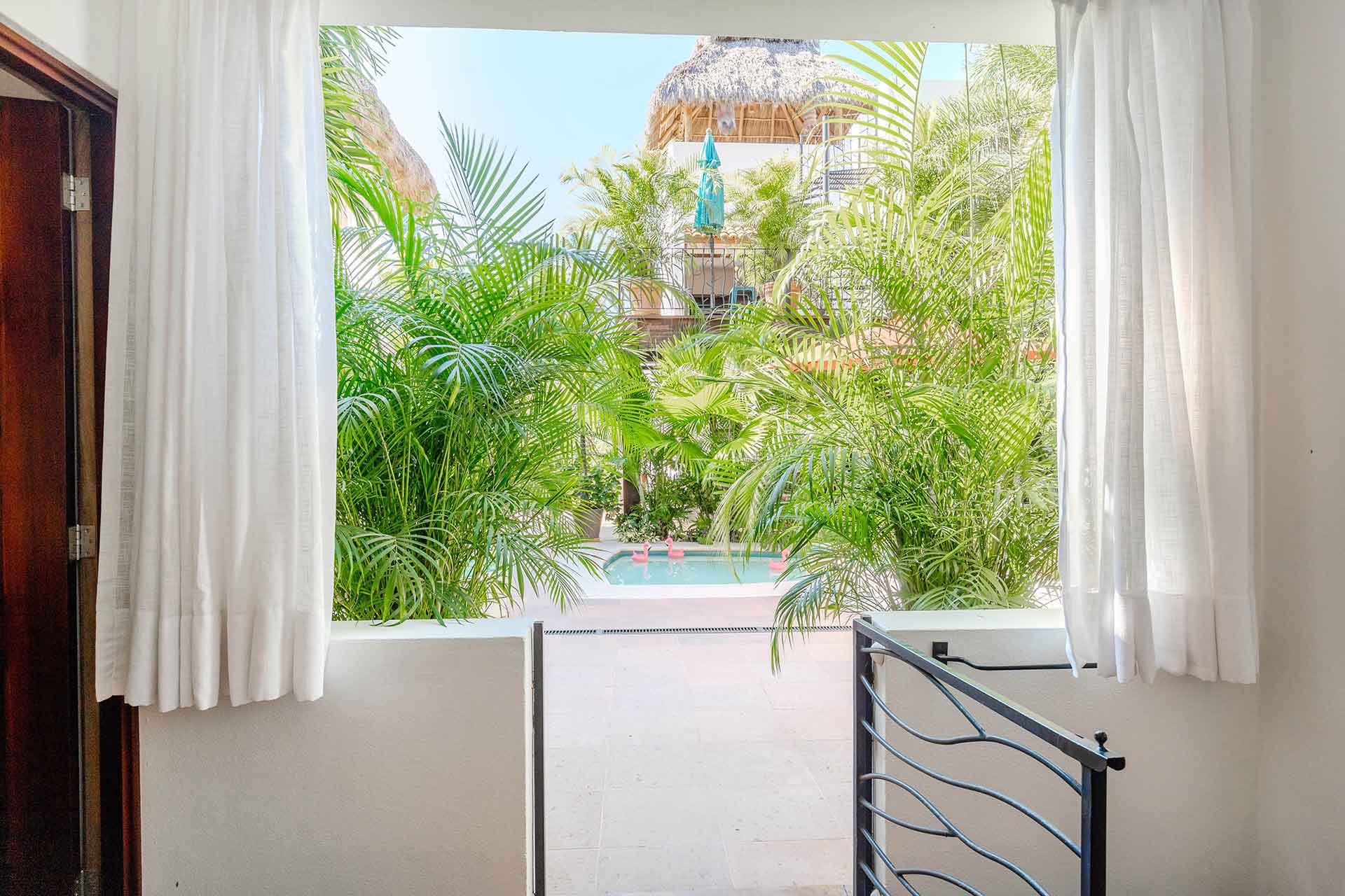 Casa Belenos Suites (named after the Celtic Sun God) is a hidden gem, located in the heart of San Pancho, Riviera Nayarit. The five suites were designed with an owner user in mind, hosting an owner suite along and four additional private suites that can be rented separately or together. The detached two story owner’s suite is equipped with an en suite king bedroom, full kitchen, living room and rooftop terrace. The other four suites are on two levels, surrounding a central courtyard with lush tropical vegetation and refreshing dipping pool. The Oceana and Selva suites are on the ground level with the Corazón and Luna suites above them. These four king bedroom en suites each have an open-air living area with kitchenette. All five suites have air-conditioned bedrooms, purified drinking water from the tap, double glazed sliding windows (with screens) for noise and heat reduction, and a spa-like bathroom with large glass-enclosed showers.