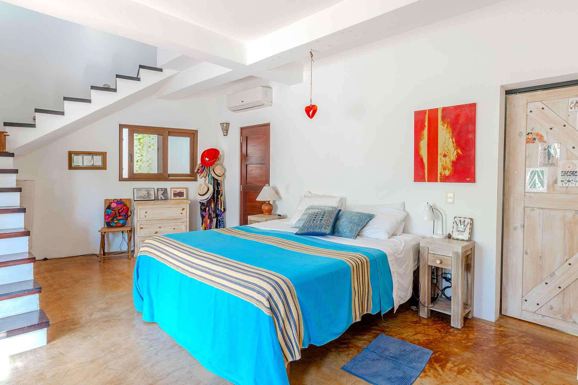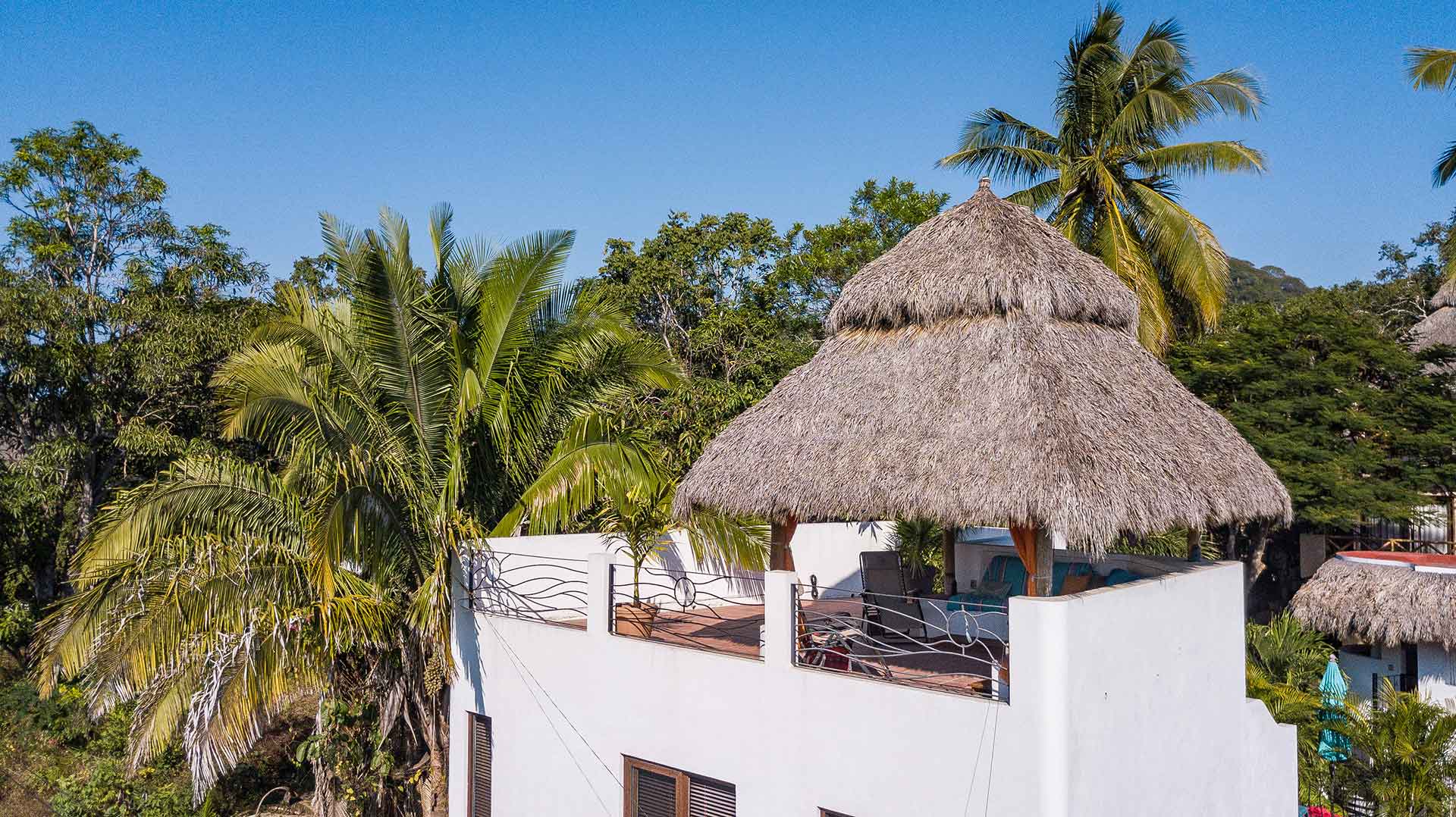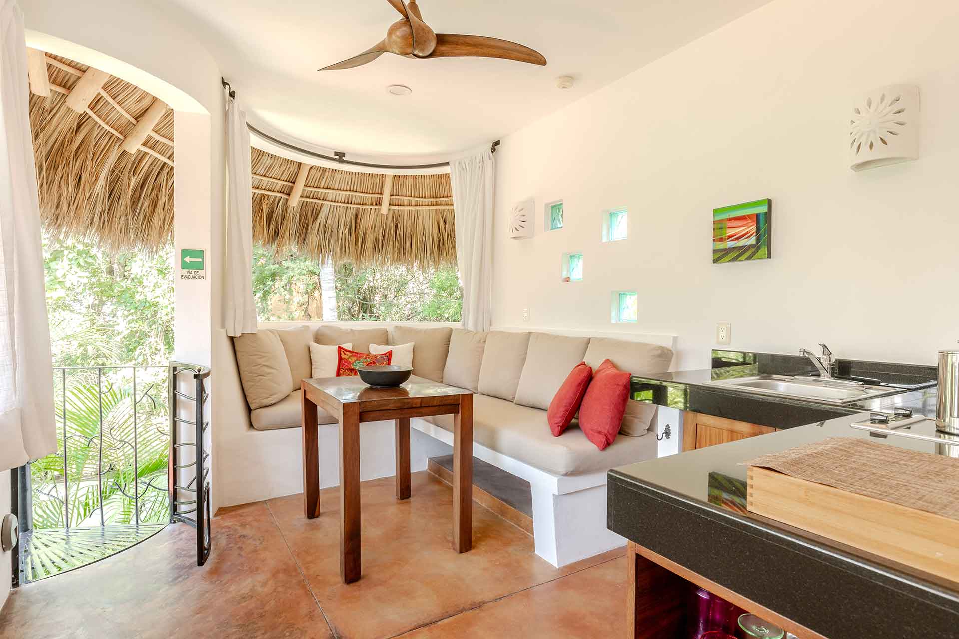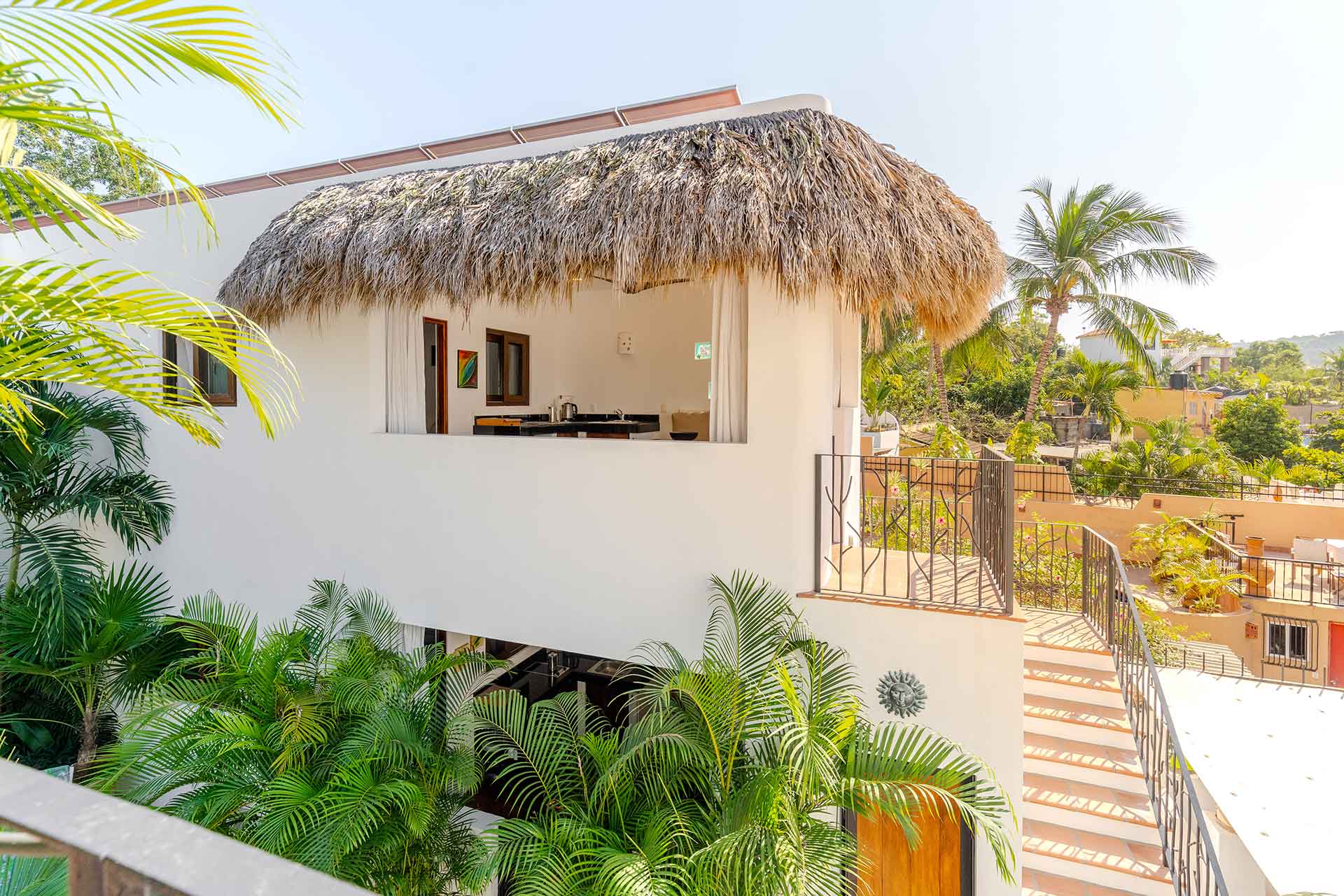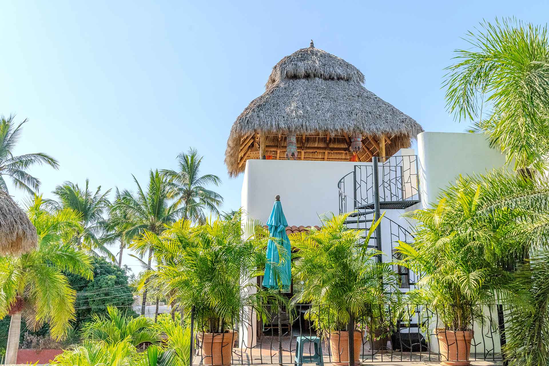 Casa Belenos Suites (named after the Celtic Sun God) is a hidden gem, located in the heart of San Pancho, Riviera Nayarit. The five suites were designed with an owner user in mind, hosting an owner suite along and four additional private suites that can be rented separately or together. The detached two story owner’s suite is equipped with an en suite king bedroom, full kitchen, living room and rooftop terrace. The other four suites are on two levels, surrounding a central courtyard with lush tropical vegetation and refreshing dipping pool. The Oceana and Selva suites are on the ground level with the Corazón and Luna suites above them. These four king bedroom en suites each have an open-air living area with kitchenette. All five suites have air-conditioned bedrooms, purified drinking water from the tap, double glazed sliding windows (with screens) for noise and heat reduction, and a spa-like bathroom with large glass-enclosed showers.