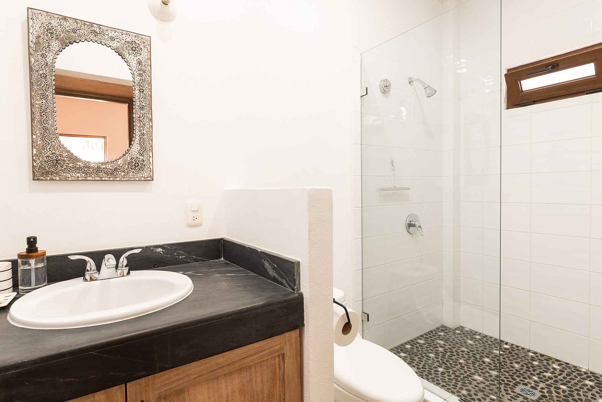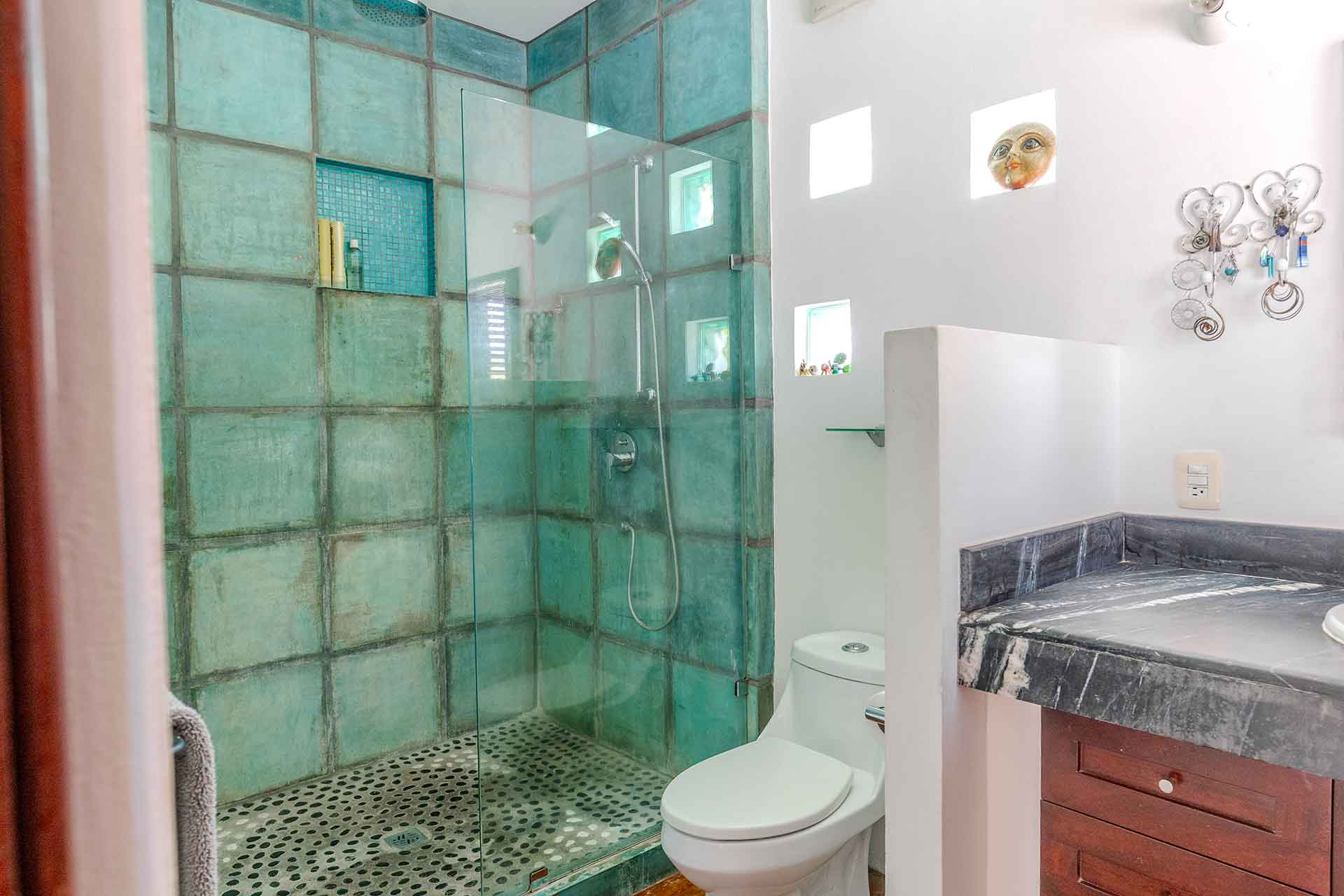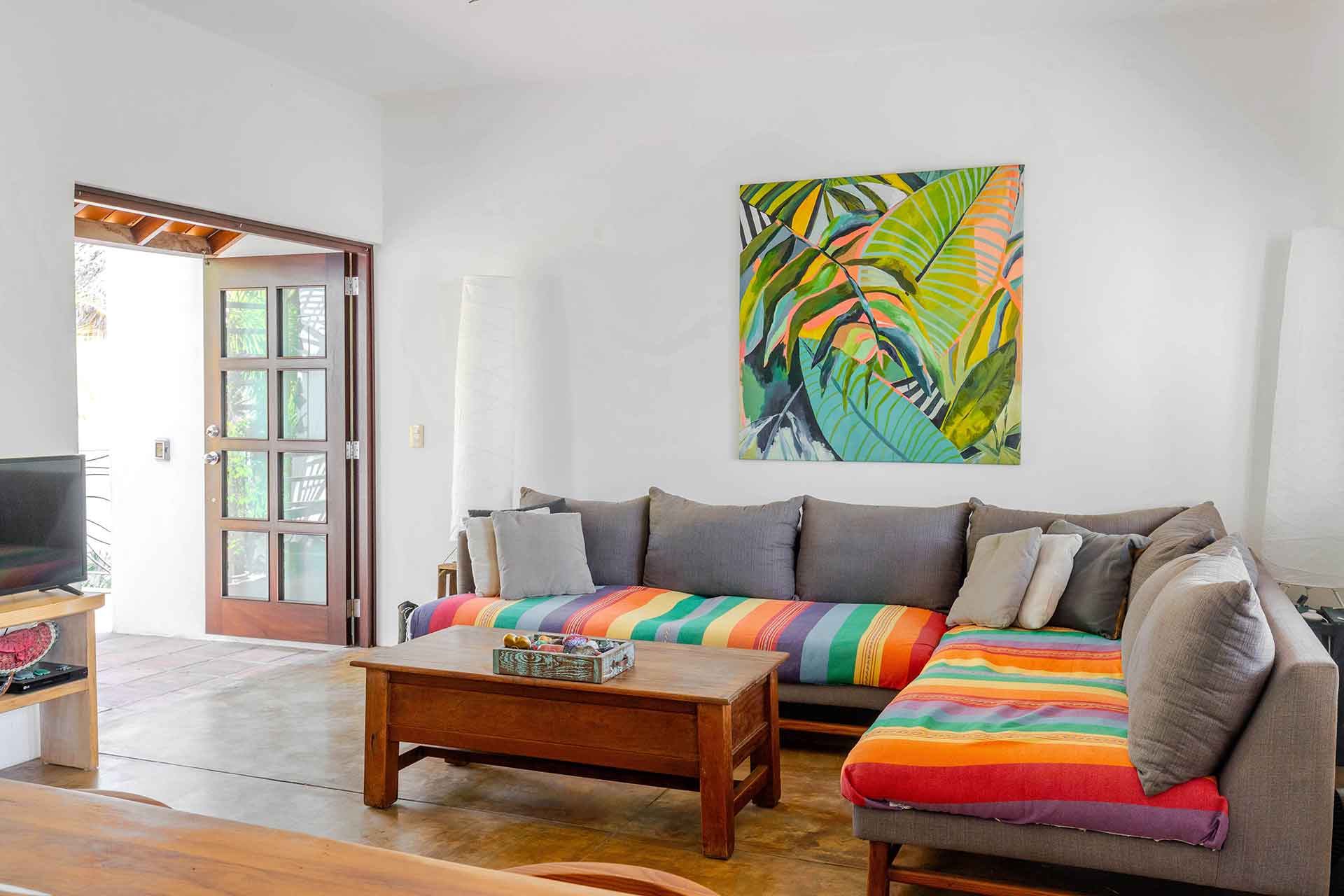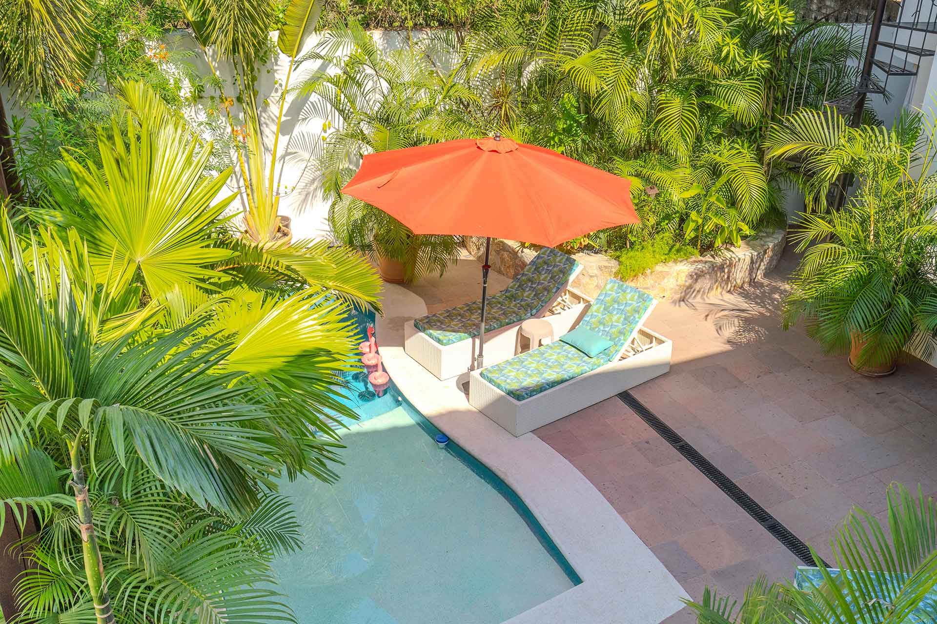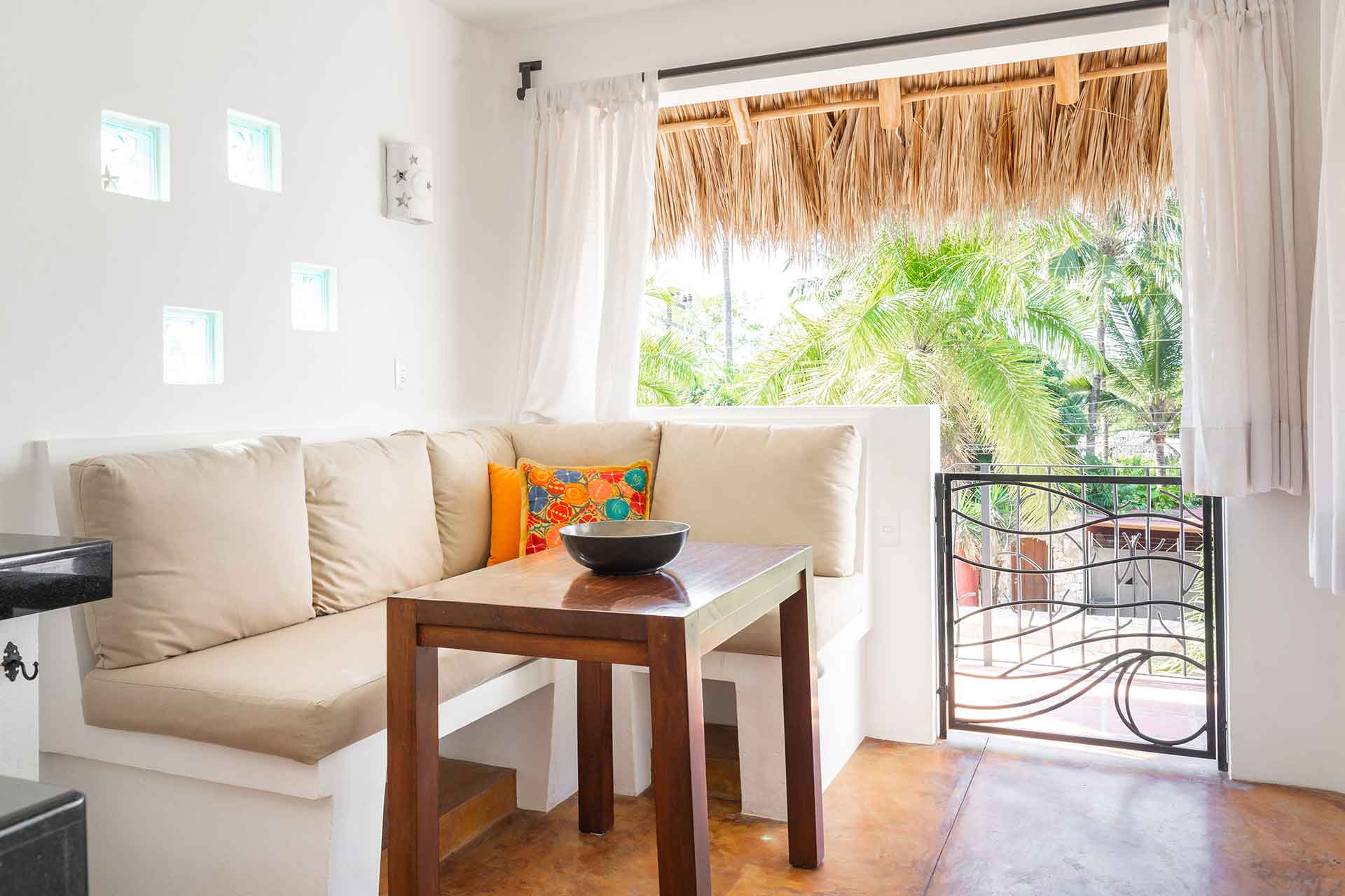 Casa Belenos Suites (named after the Celtic Sun God) is a hidden gem, located in the heart of San Pancho, Riviera Nayarit. The five suites were designed with an owner user in mind, hosting an owner suite along and four additional private suites that can be rented separately or together. The detached two story owner’s suite is equipped with an en suite king bedroom, full kitchen, living room and rooftop terrace. The other four suites are on two levels, surrounding a central courtyard with lush tropical vegetation and refreshing dipping pool. The Oceana and Selva suites are on the ground level with the Corazón and Luna suites above them. These four king bedroom en suites each have an open-air living area with kitchenette. All five suites have air-conditioned bedrooms, purified drinking water from the tap, double glazed sliding windows (with screens) for noise and heat reduction, and a spa-like bathroom with large glass-enclosed showers.