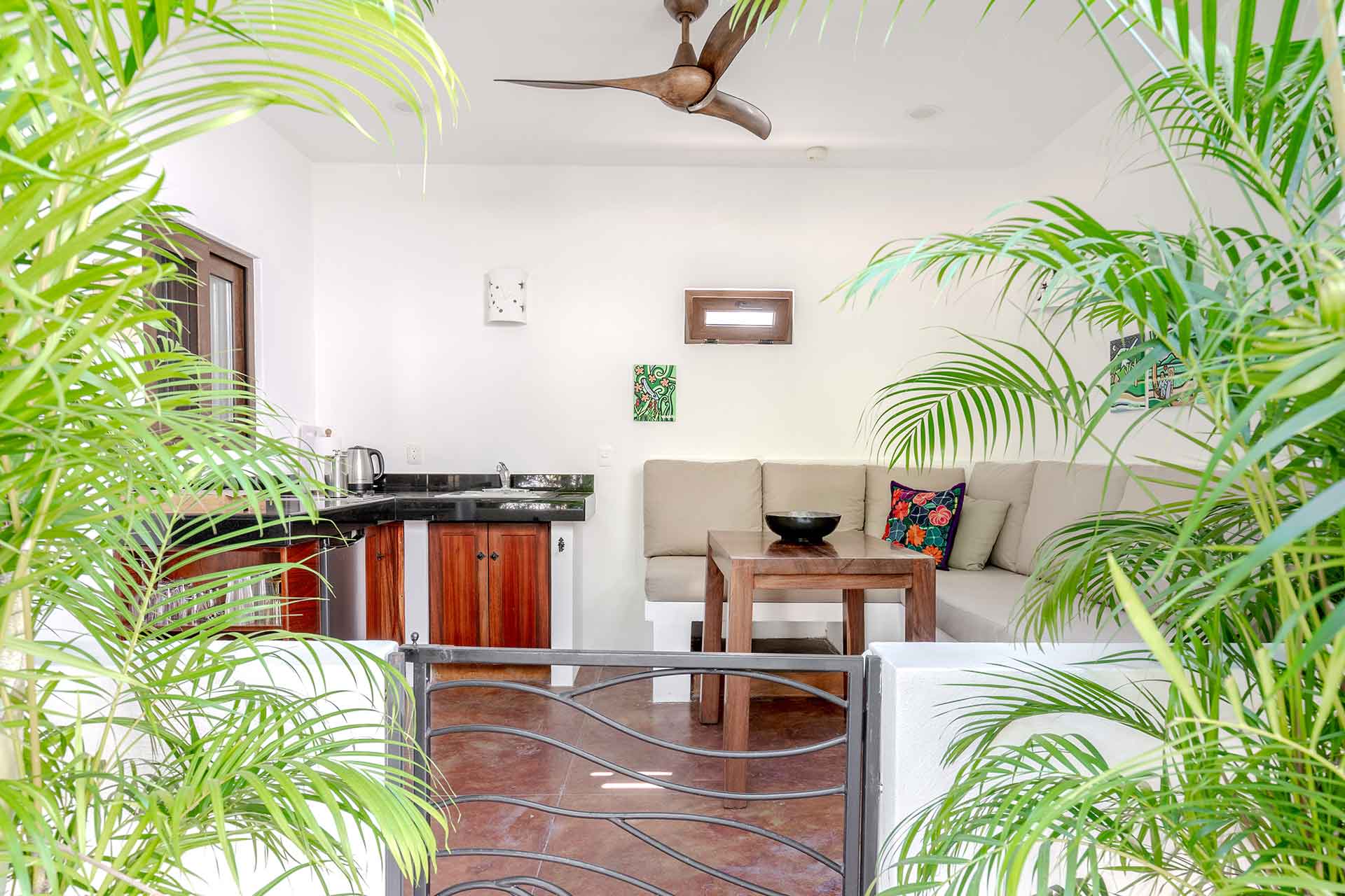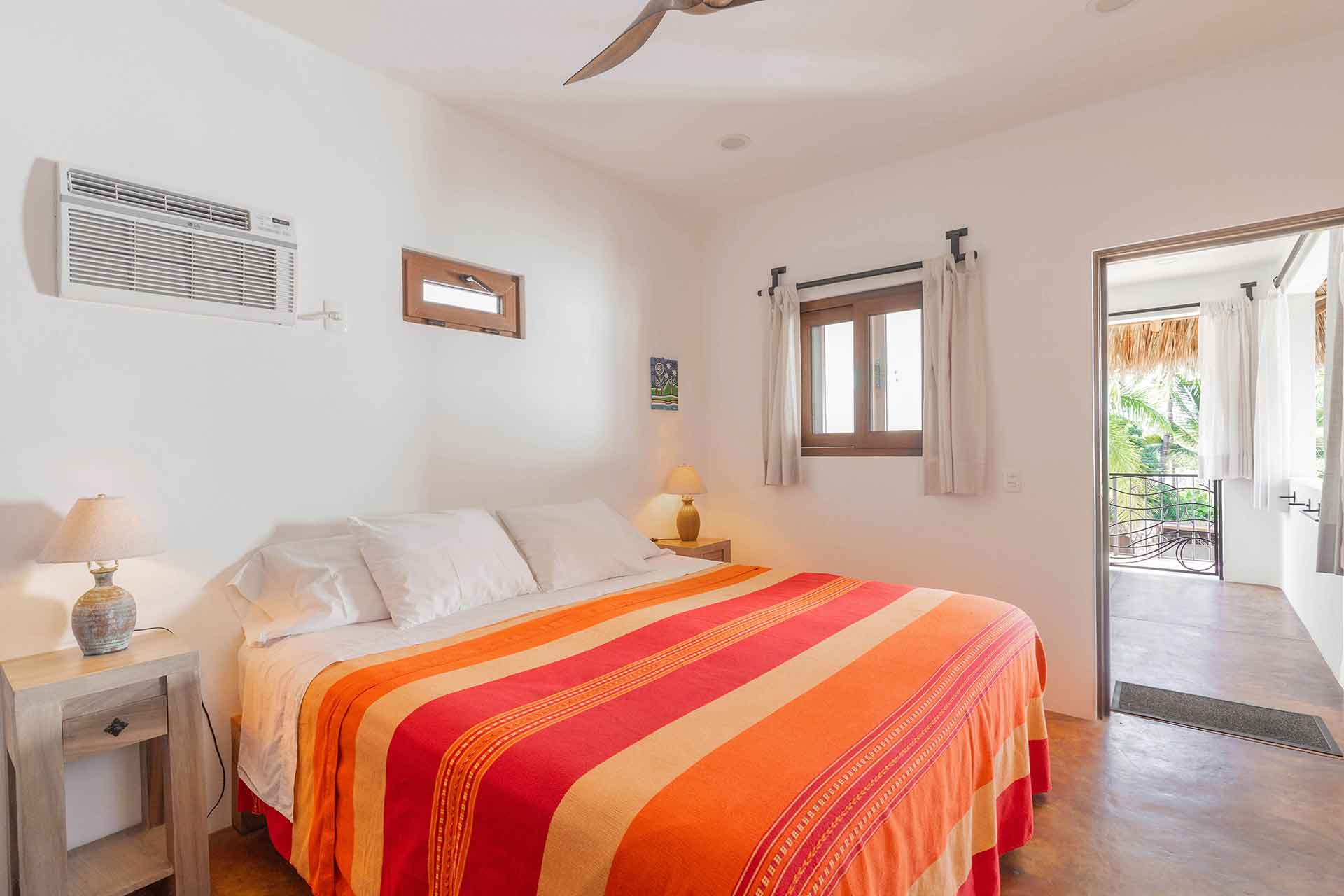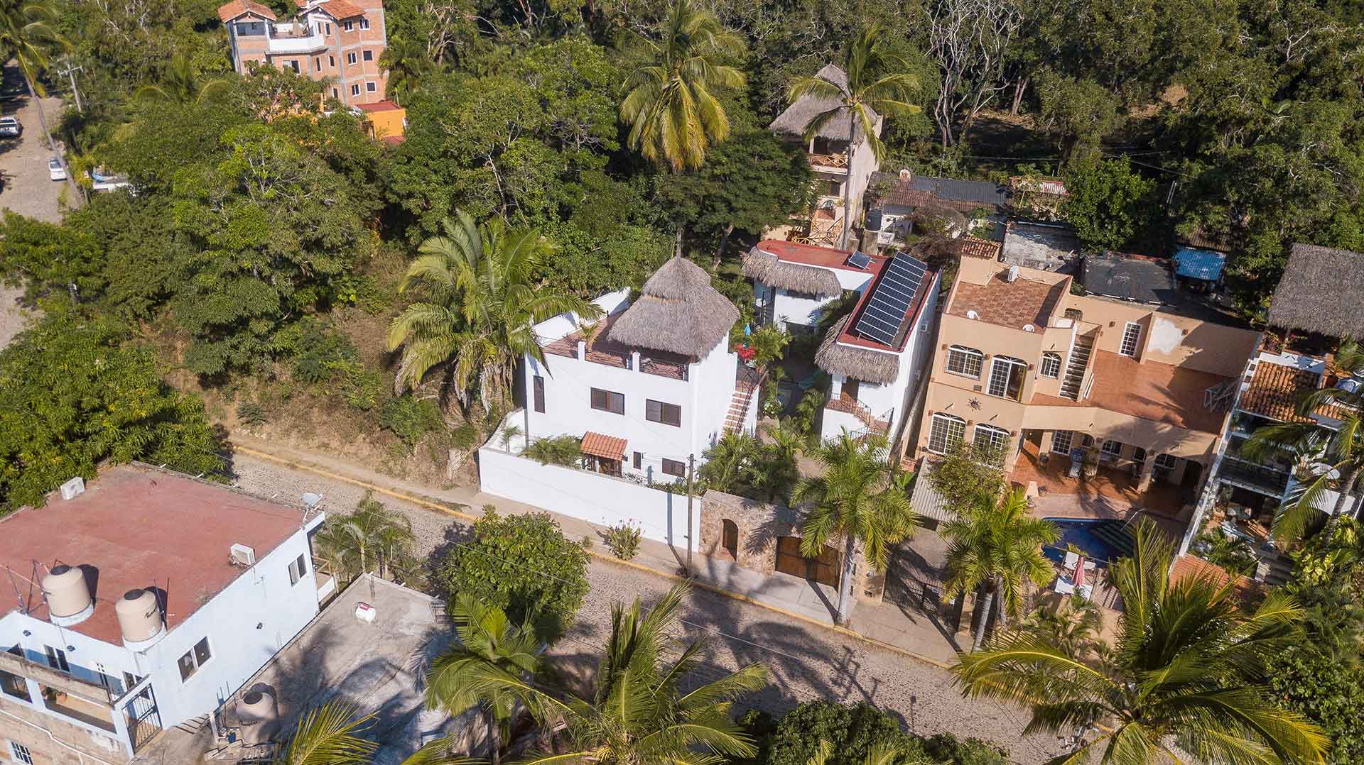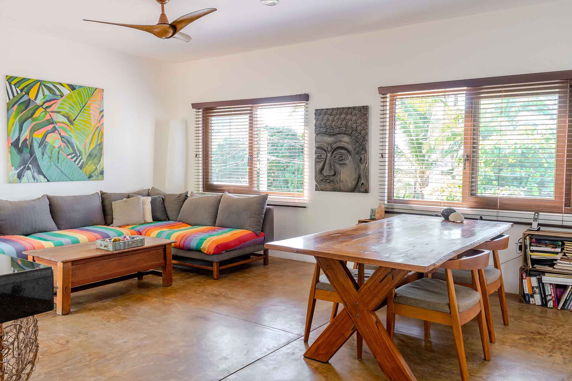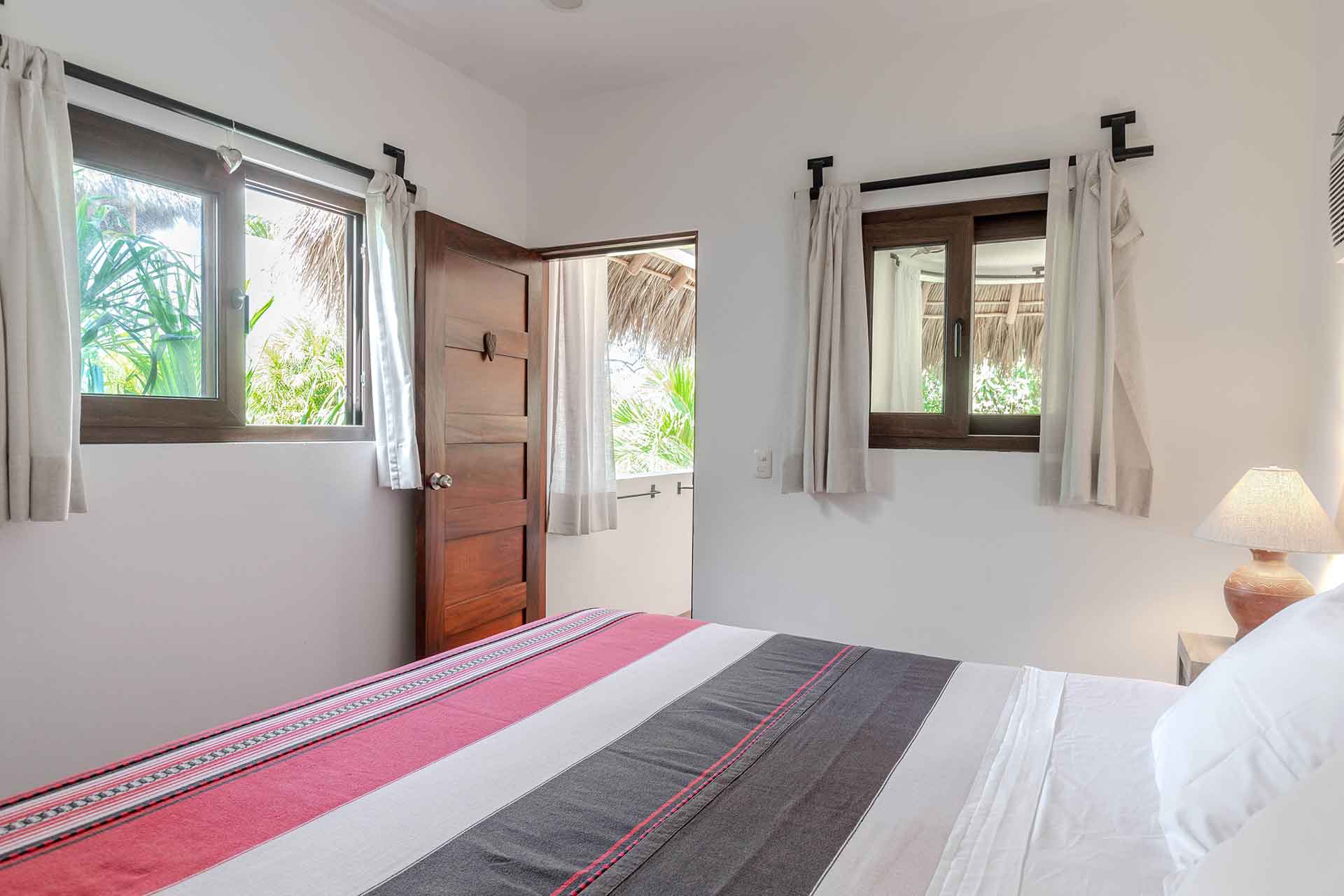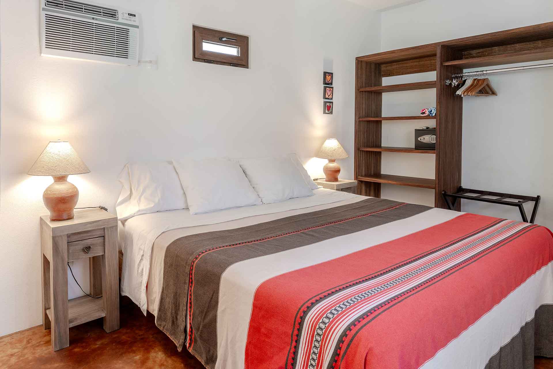 Casa Belenos Suites (named after the Celtic Sun God) is a hidden gem, located in the heart of San Pancho, Riviera Nayarit. The five suites were designed with an owner user in mind, hosting an owner suite along and four additional private suites that can be rented separately or together. The detached two story owner’s suite is equipped with an en suite king bedroom, full kitchen, living room and rooftop terrace. The other four suites are on two levels, surrounding a central courtyard with lush tropical vegetation and refreshing dipping pool. The Oceana and Selva suites are on the ground level with the Corazón and Luna suites above them. These four king bedroom en suites each have an open-air living area with kitchenette. All five suites have air-conditioned bedrooms, purified drinking water from the tap, double glazed sliding windows (with screens) for noise and heat reduction, and a spa-like bathroom with large glass-enclosed showers.
