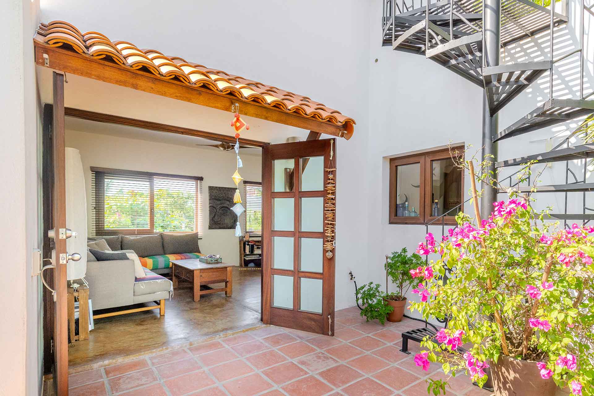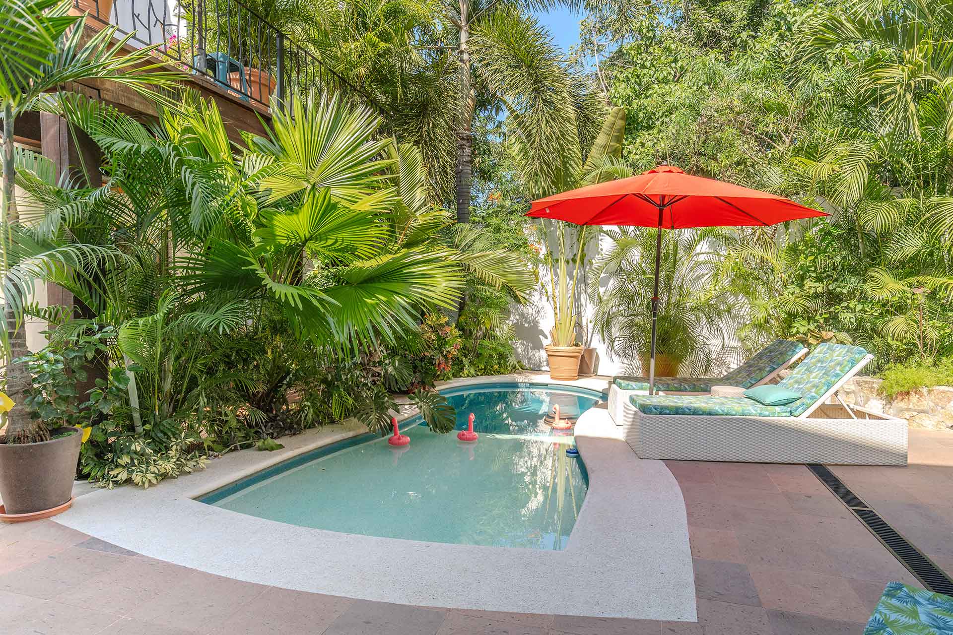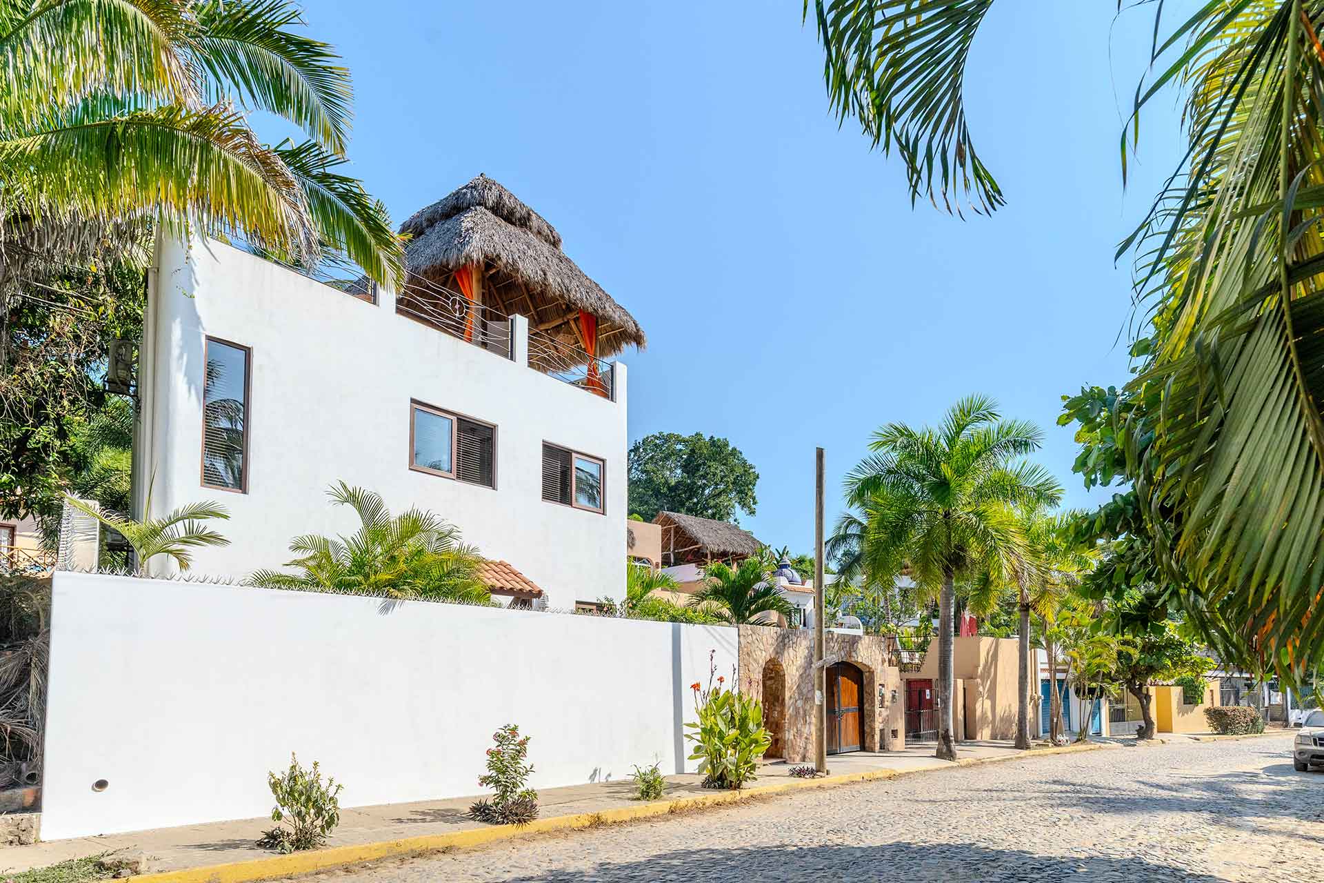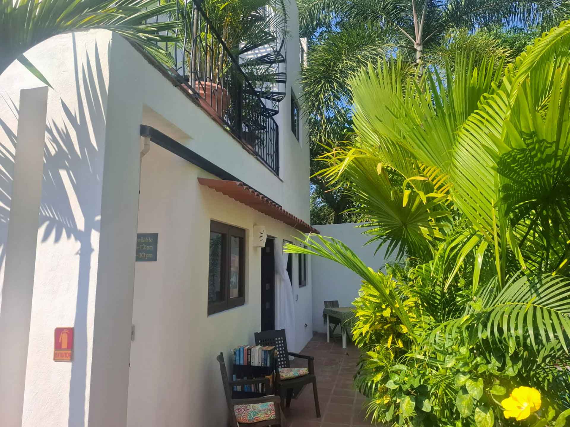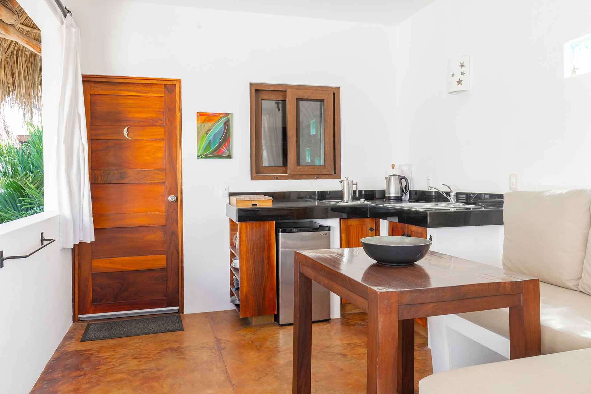 Casa Belenos Suites (named after the Celtic Sun God) is a hidden gem, located in the heart of San Pancho, Riviera Nayarit. The five suites were designed with an owner user in mind, hosting an owner suite along and four additional private suites that can be rented separately or together. The detached two story owner’s suite is equipped with an en suite king bedroom, full kitchen, living room and rooftop terrace. The other four suites are on two levels, surrounding a central courtyard with lush tropical vegetation and refreshing dipping pool. The Oceana and Selva suites are on the ground level with the Corazón and Luna suites above them. These four king bedroom en suites each have an open-air living area with kitchenette. All five suites have air-conditioned bedrooms, purified drinking water from the tap, double glazed sliding windows (with screens) for noise and heat reduction, and a spa-like bathroom with large glass-enclosed showers.