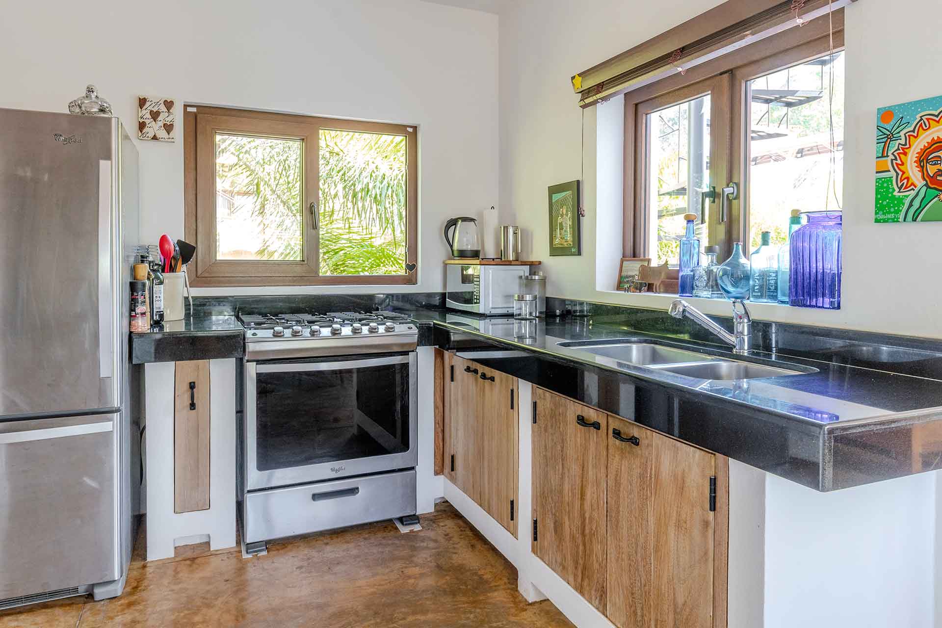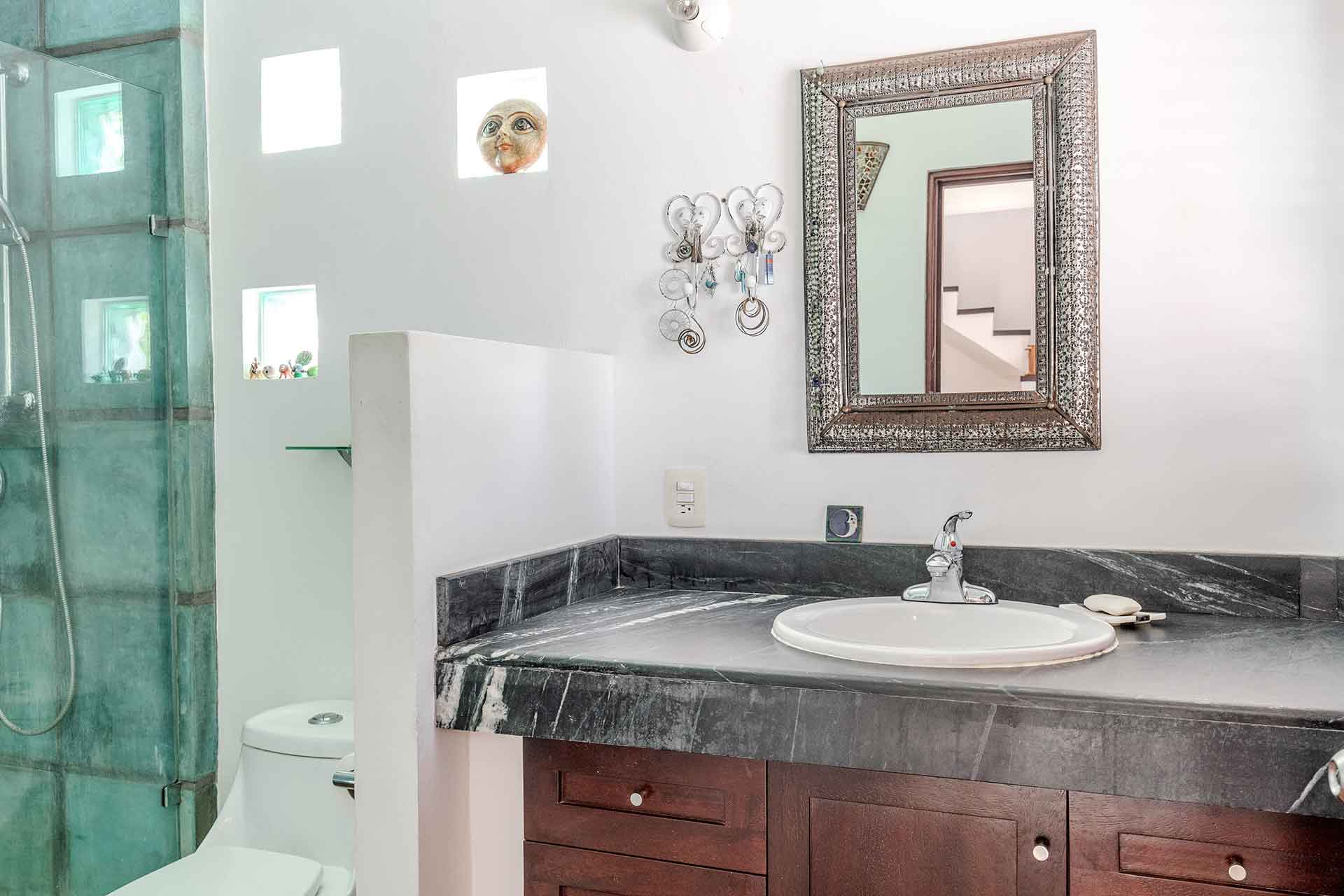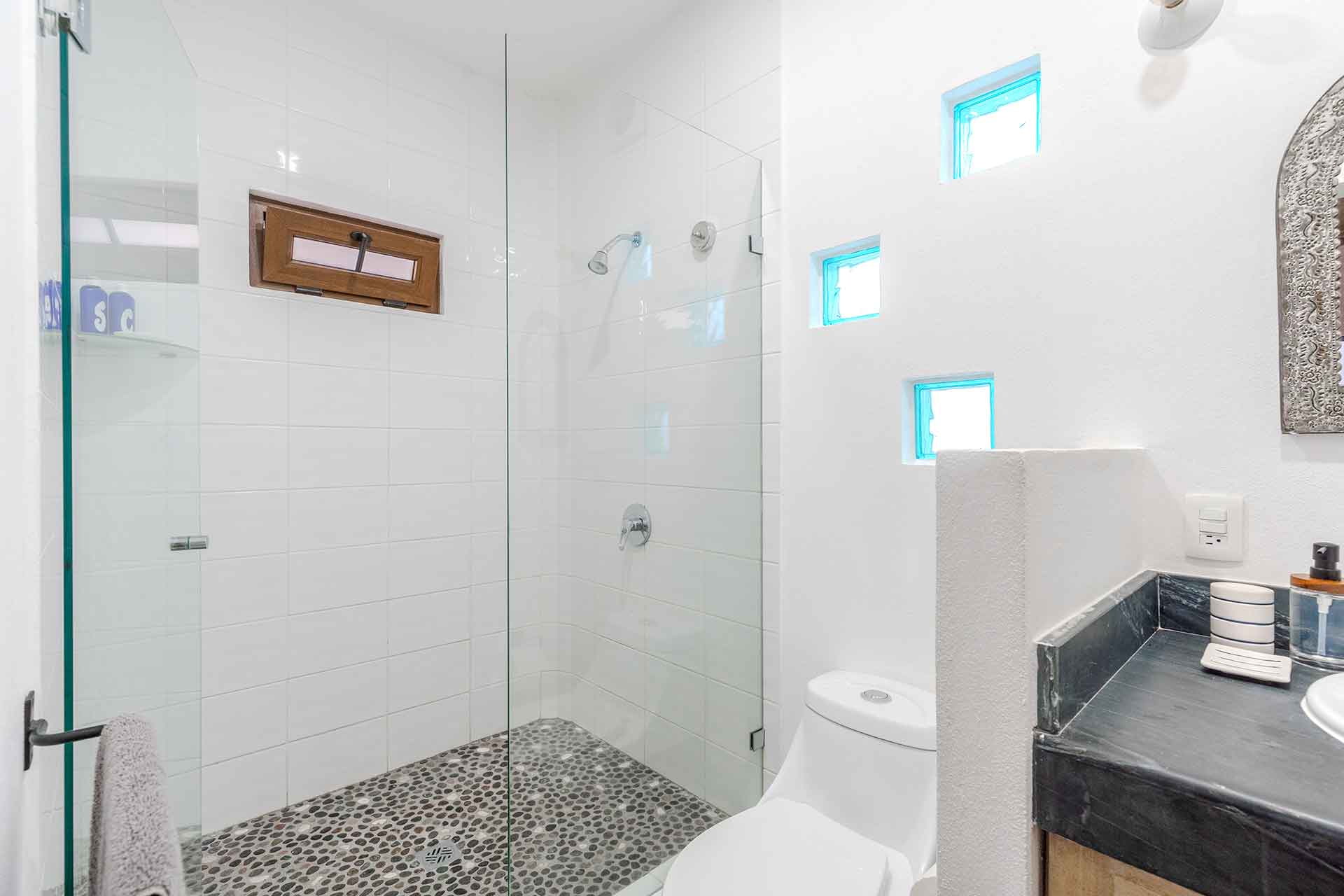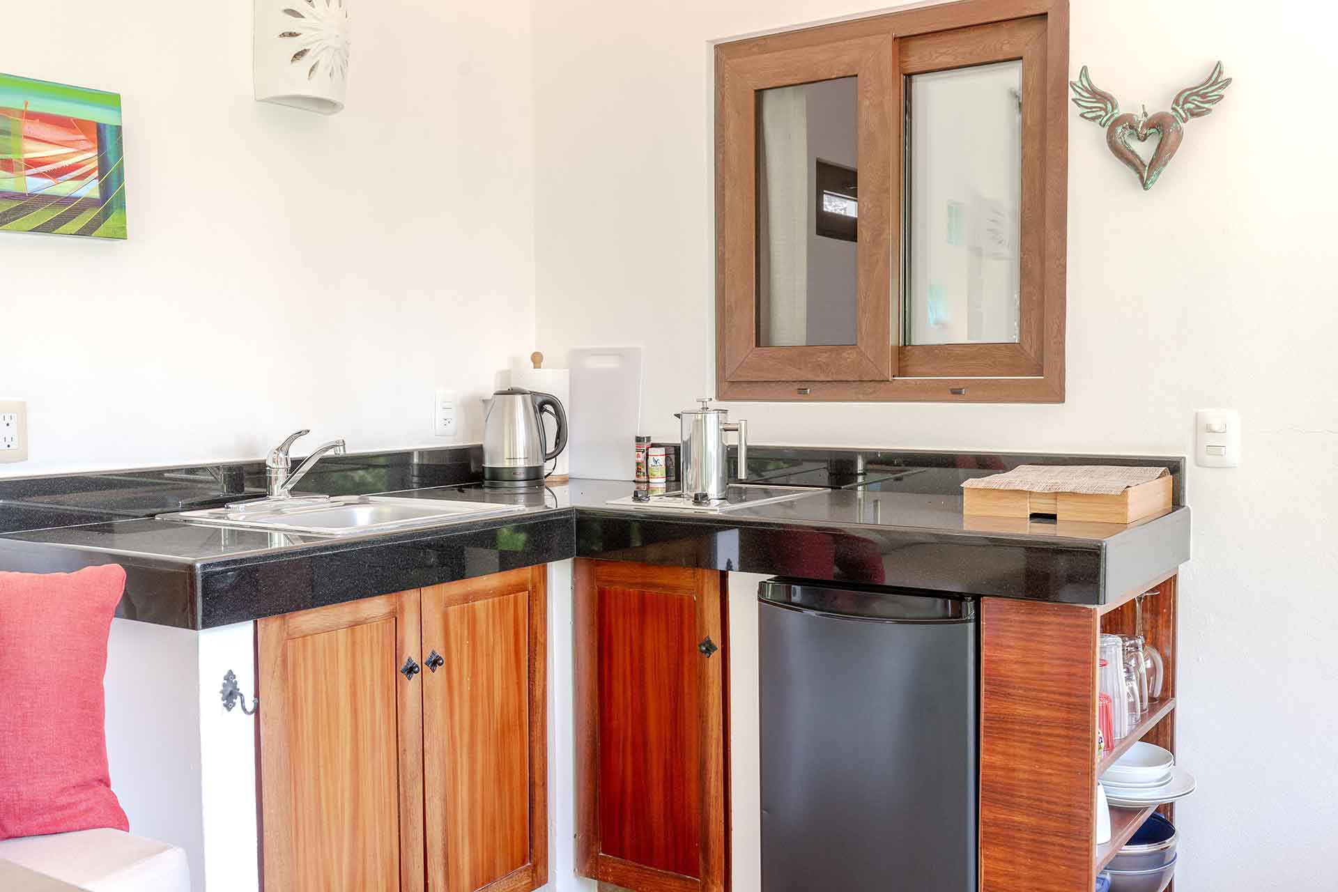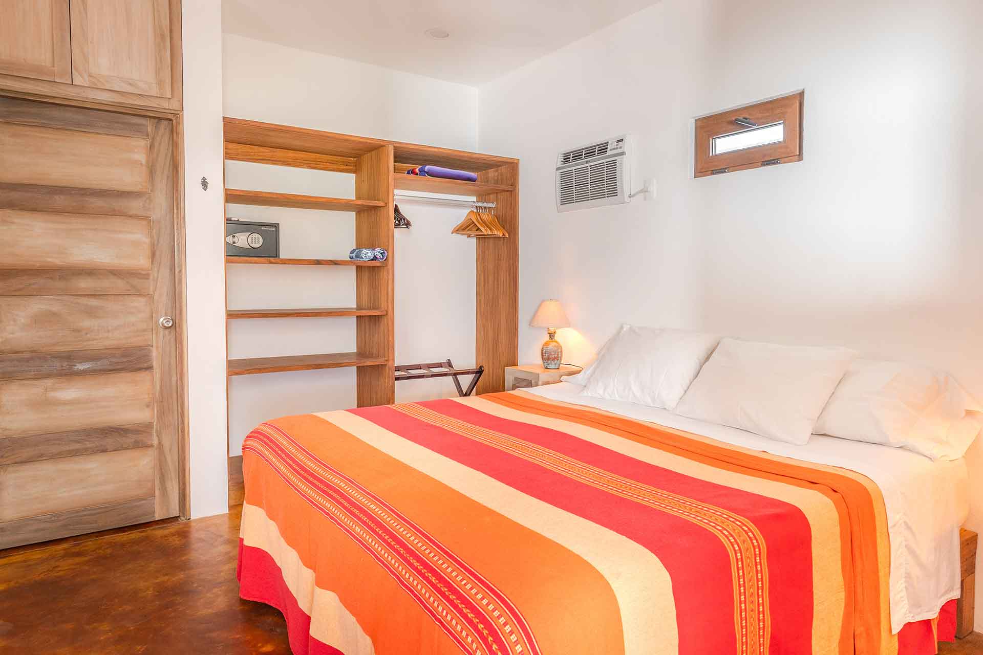 Casa Belenos Suites (named after the Celtic Sun God) is a hidden gem, located in the heart of San Pancho, Riviera Nayarit. The five suites were designed with an owner user in mind, hosting an owner suite along and four additional private suites that can be rented separately or together. The detached two story owner’s suite is equipped with an en suite king bedroom, full kitchen, living room and rooftop terrace. The other four suites are on two levels, surrounding a central courtyard with lush tropical vegetation and refreshing dipping pool. The Oceana and Selva suites are on the ground level with the Corazón and Luna suites above them. These four king bedroom en suites each have an open-air living area with kitchenette. All five suites have air-conditioned bedrooms, purified drinking water from the tap, double glazed sliding windows (with screens) for noise and heat reduction, and a spa-like bathroom with large glass-enclosed showers.
