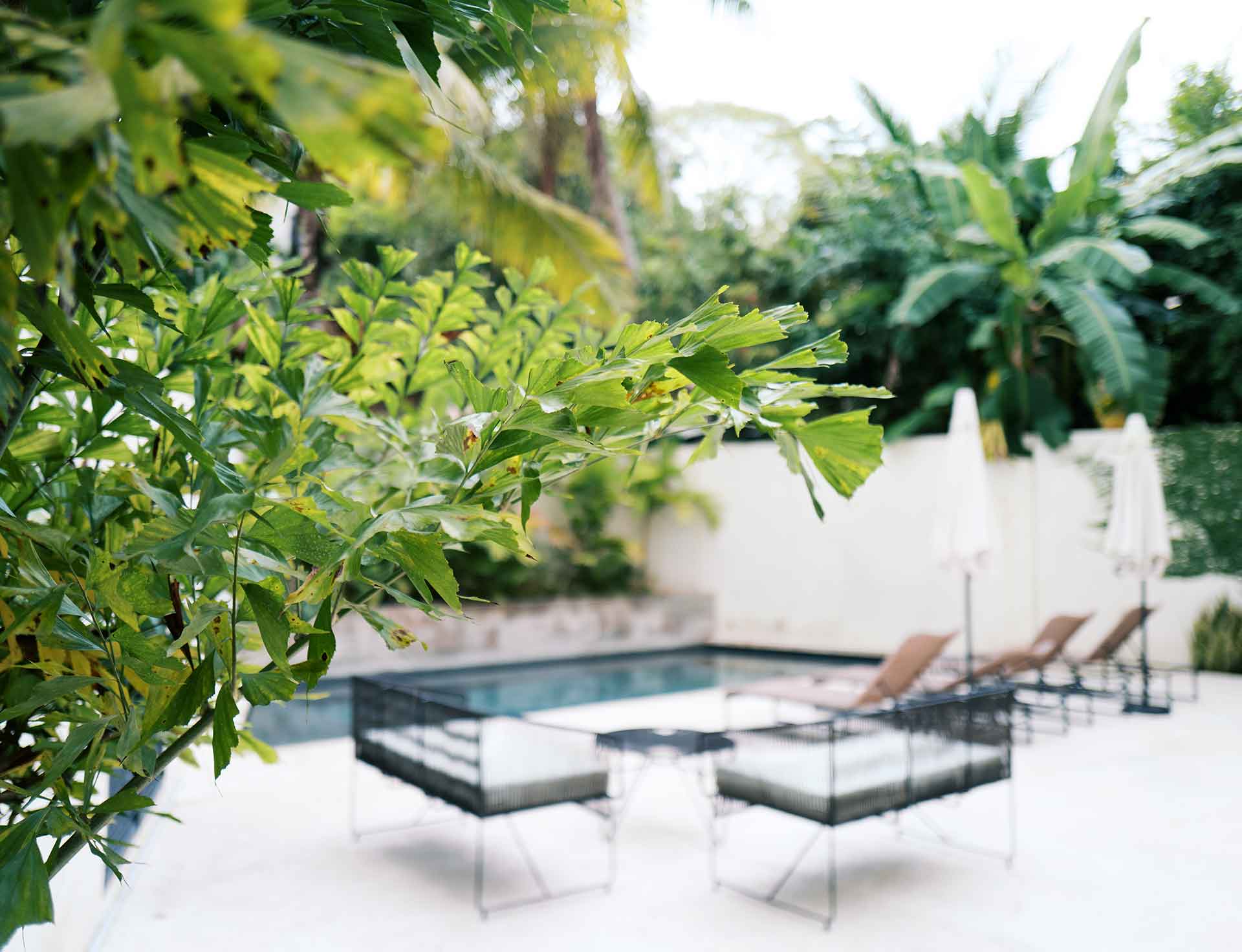 Upon entering the gated property, immediately to the west lies the detached garage with a fully equipped queen bedroom studio apartment above. Continue down the pathway through the manicured garden to the main four bedroom home with private terrace and salt water pool. The entrance level encompasses the open concept living, dining and kitchen area, private full bathroom and bonus room all opening up to the pool terrace surrounded by lush tropical foliage. The second story hosts three spacious en suite bedrooms, two with king size beds and one with a queen size bed.