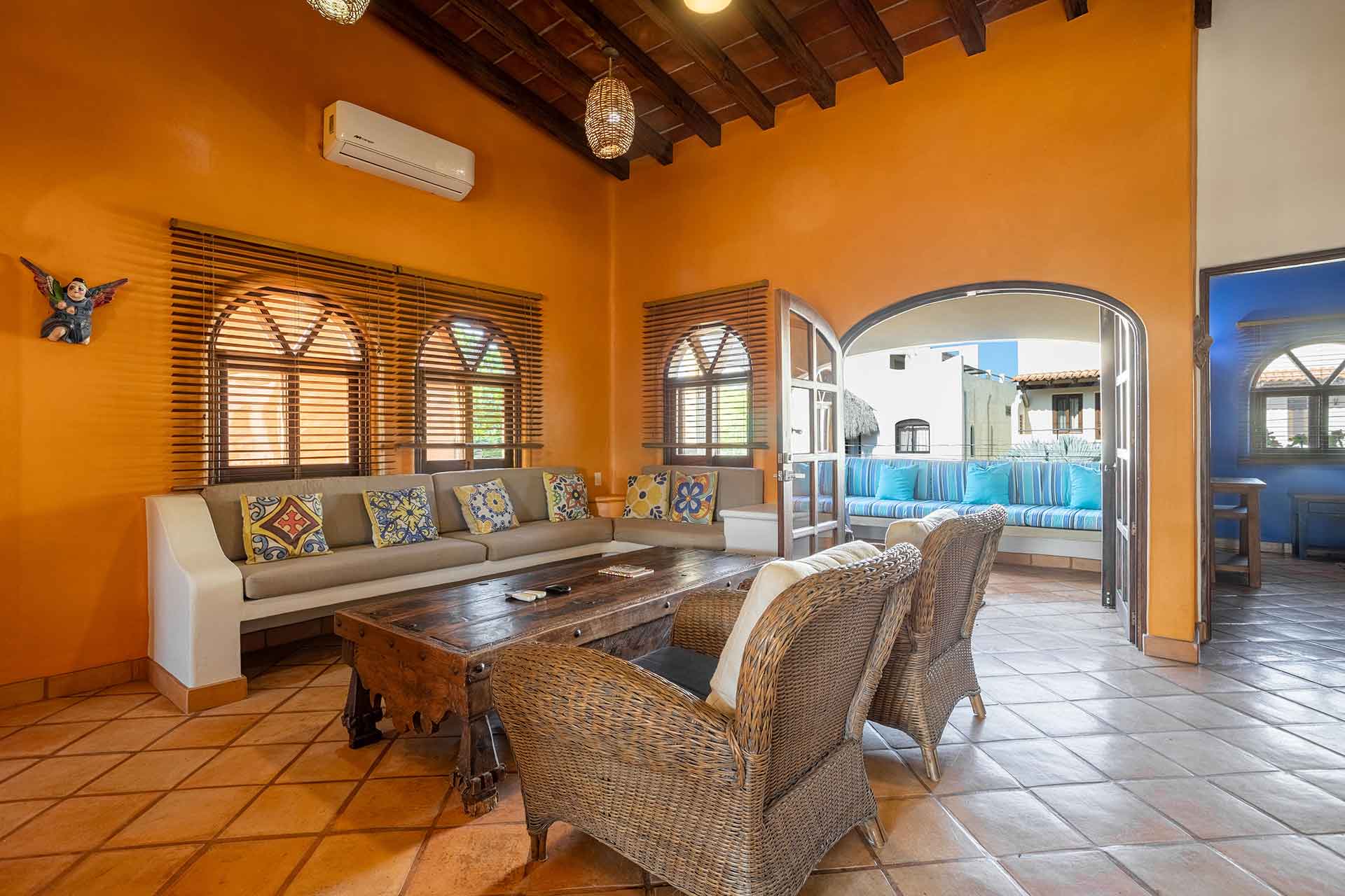This home is part of a two-level duplex consisting of another two-bedroom home, Casa Alegre, which has its own private entrance. Both houses can be rented together to make a four-bedroom villa, Villa Amigos. Click to view the two-bedroom, Casa Alegre. Click to view the four-bedroom, Villa Amigos.