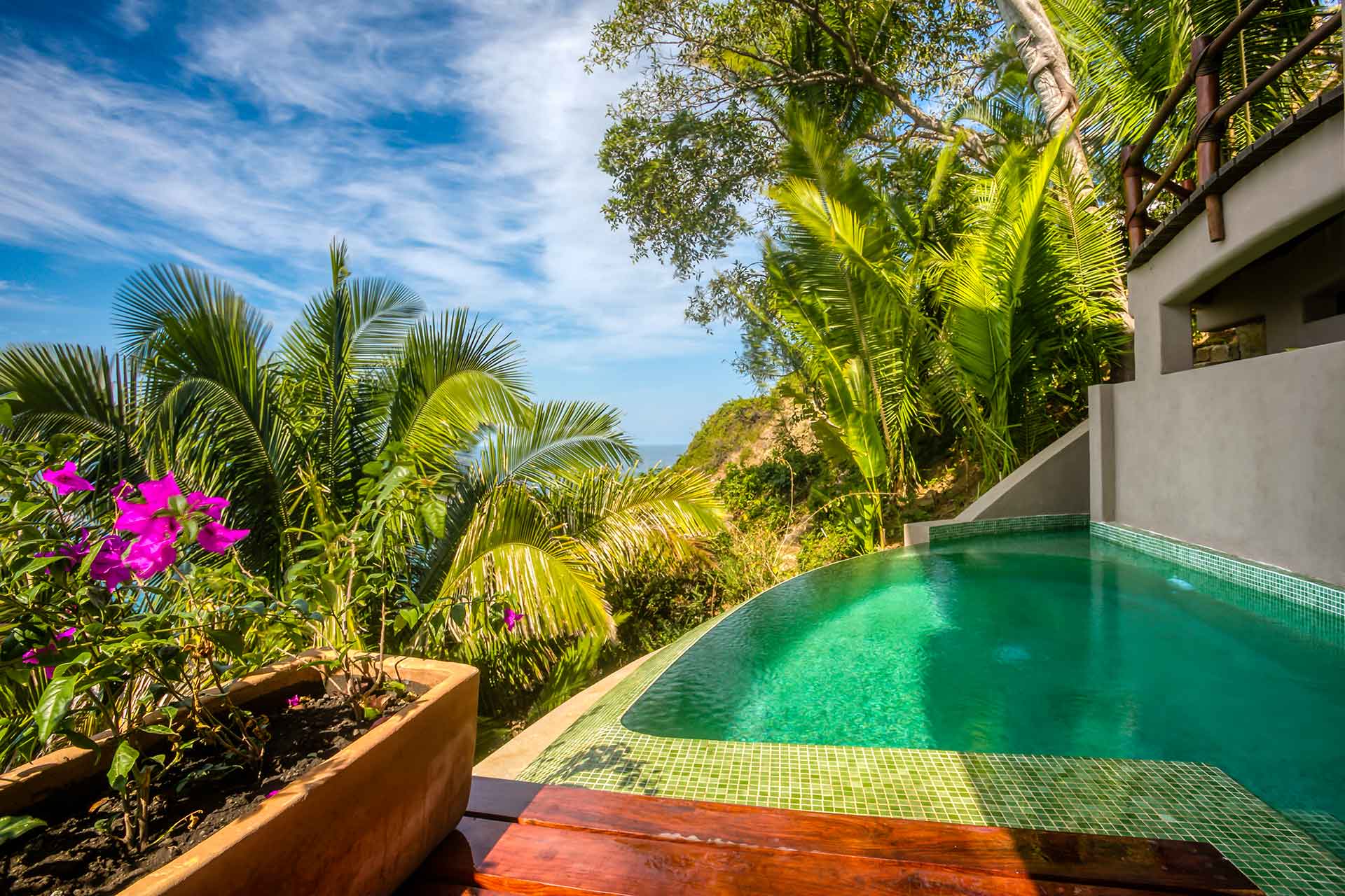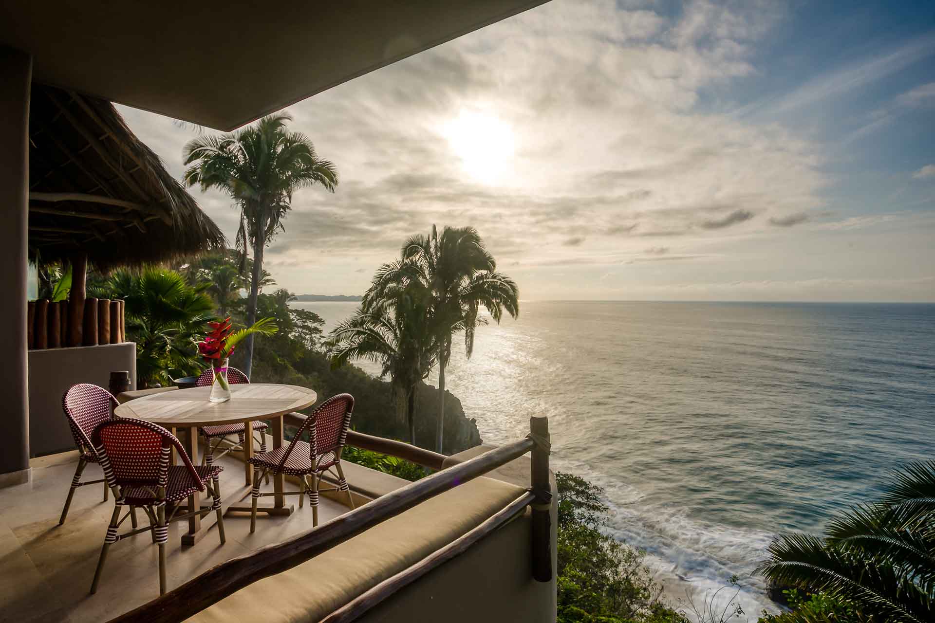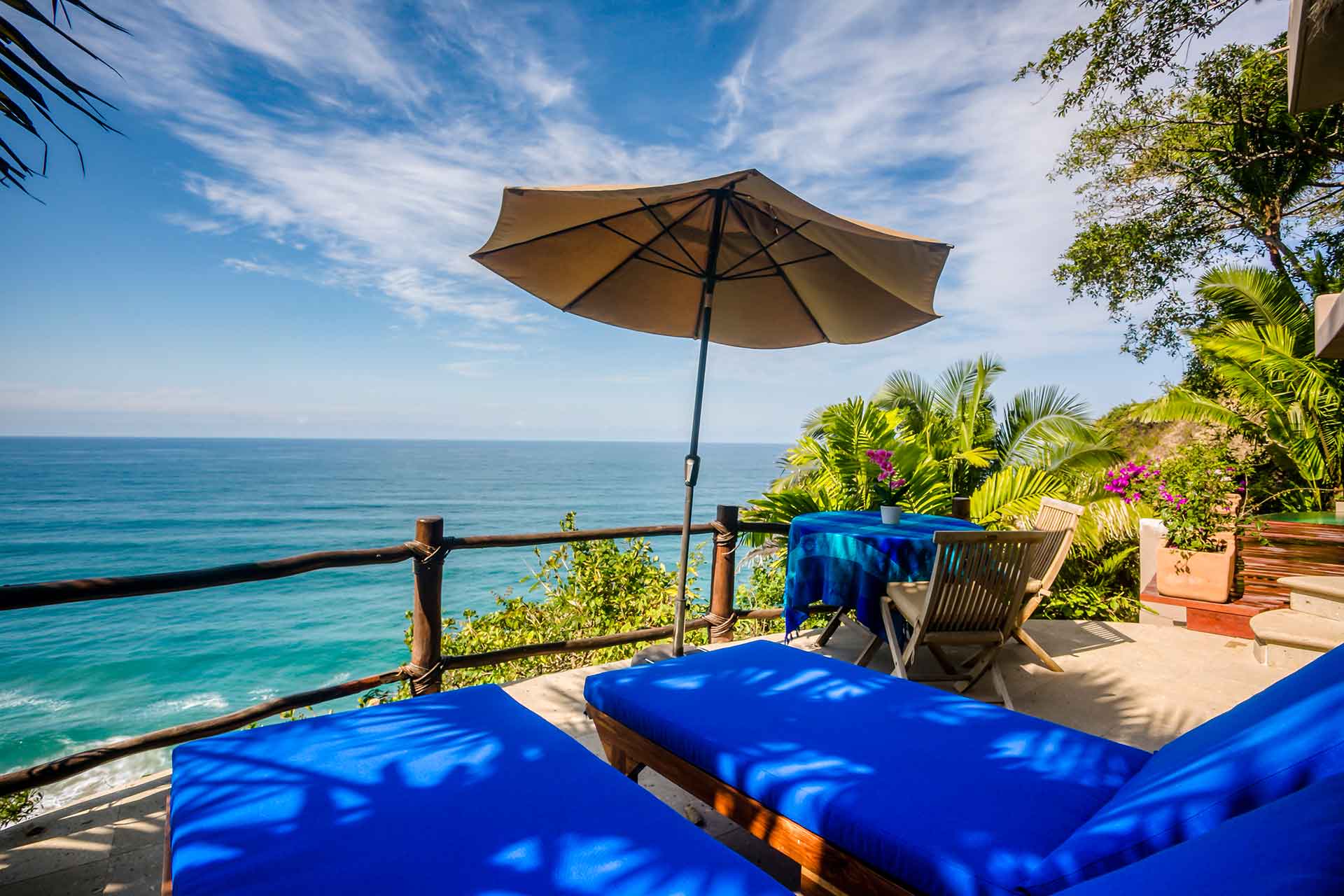 Enjoy spectacular ocean views in total seclusion while listening to the waves of the Pacific Ocean and the jungle birds sing at Casa del Risco. This fabulous home is perched approximately 110 feet above a quiet beach cove on a private half acre with 180 degree, coastal views of the Pacific Ocean and tropical jungle.
