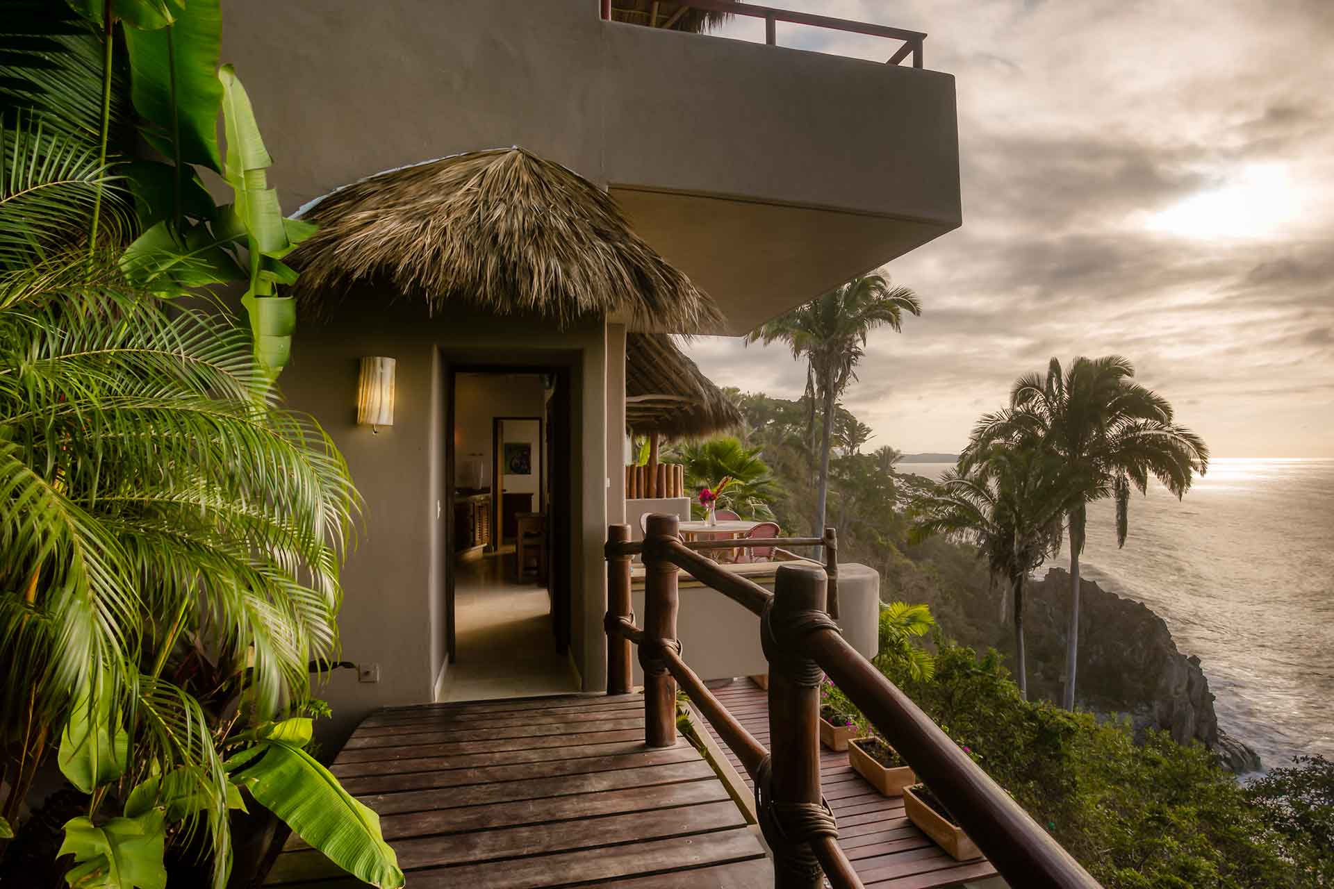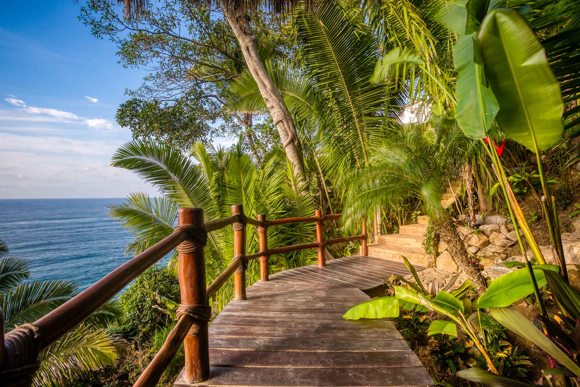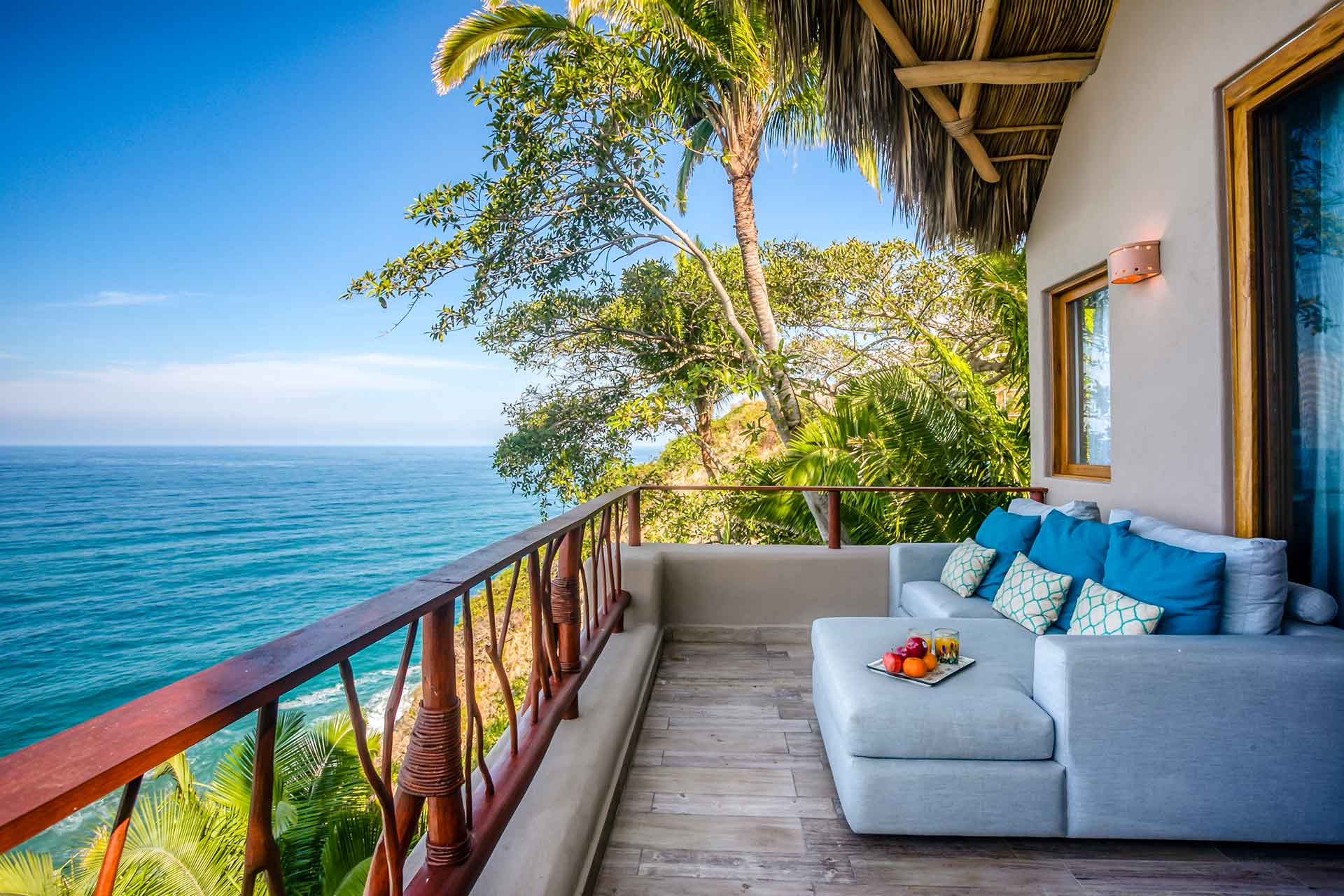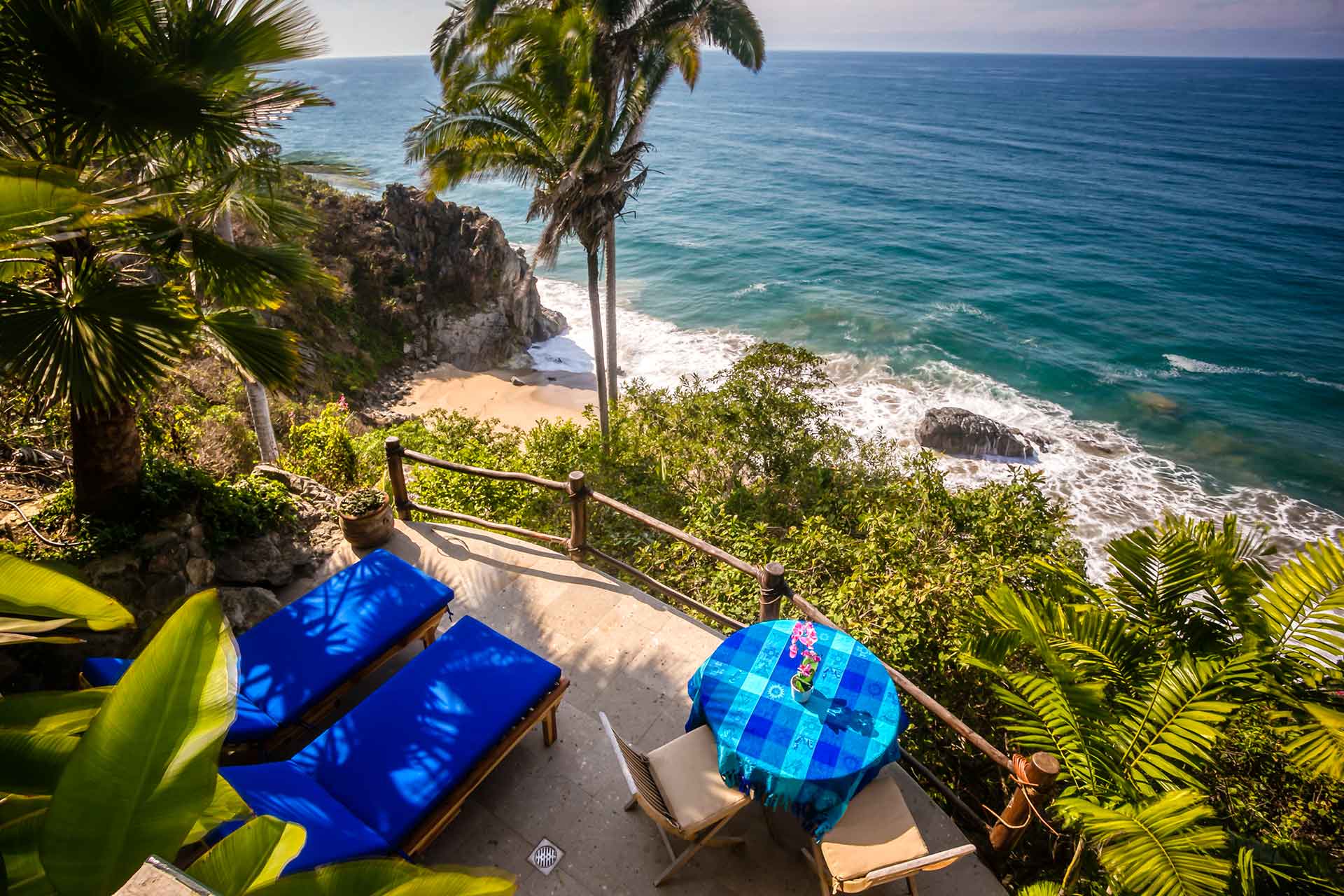 Enjoy spectacular ocean views in total seclusion while listening to the waves of the Pacific Ocean and the jungle birds sing at Casa del Risco. This fabulous home is perched approximately 110 feet above a quiet beach cove on a private half acre with 180 degree, coastal views of the Pacific Ocean and tropical jungle.