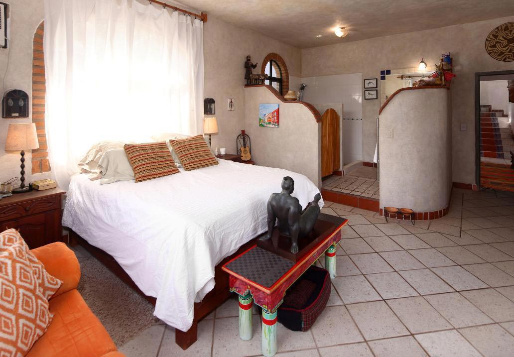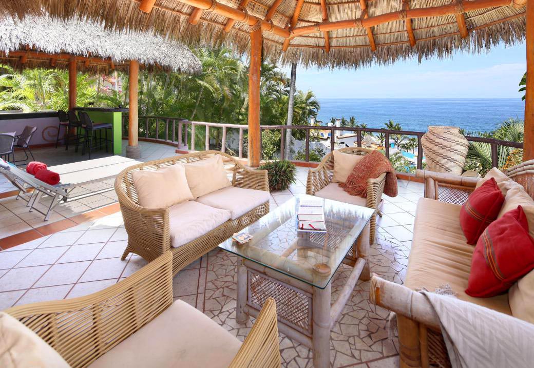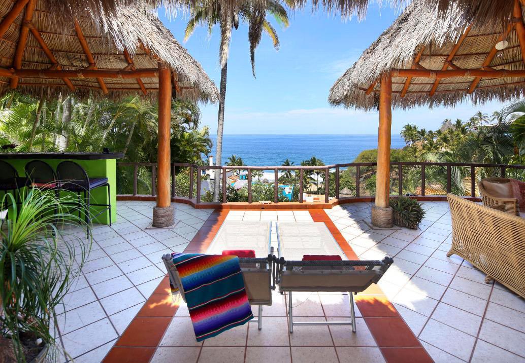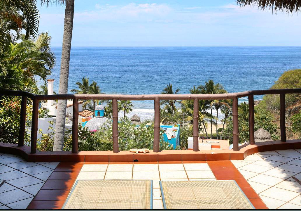 The entry level is open and airy, appointed with charming Mexican décor and hosts a full kitchen, dining area, powder room and living room with glass doors opening up to the expansive ocean view terrace. The terrace offers an outdoor bar with barbecue area and plenty of space to host a party, lounge in the shade under twin palapas or just relax while watching the waves roll in, on the beach below.
