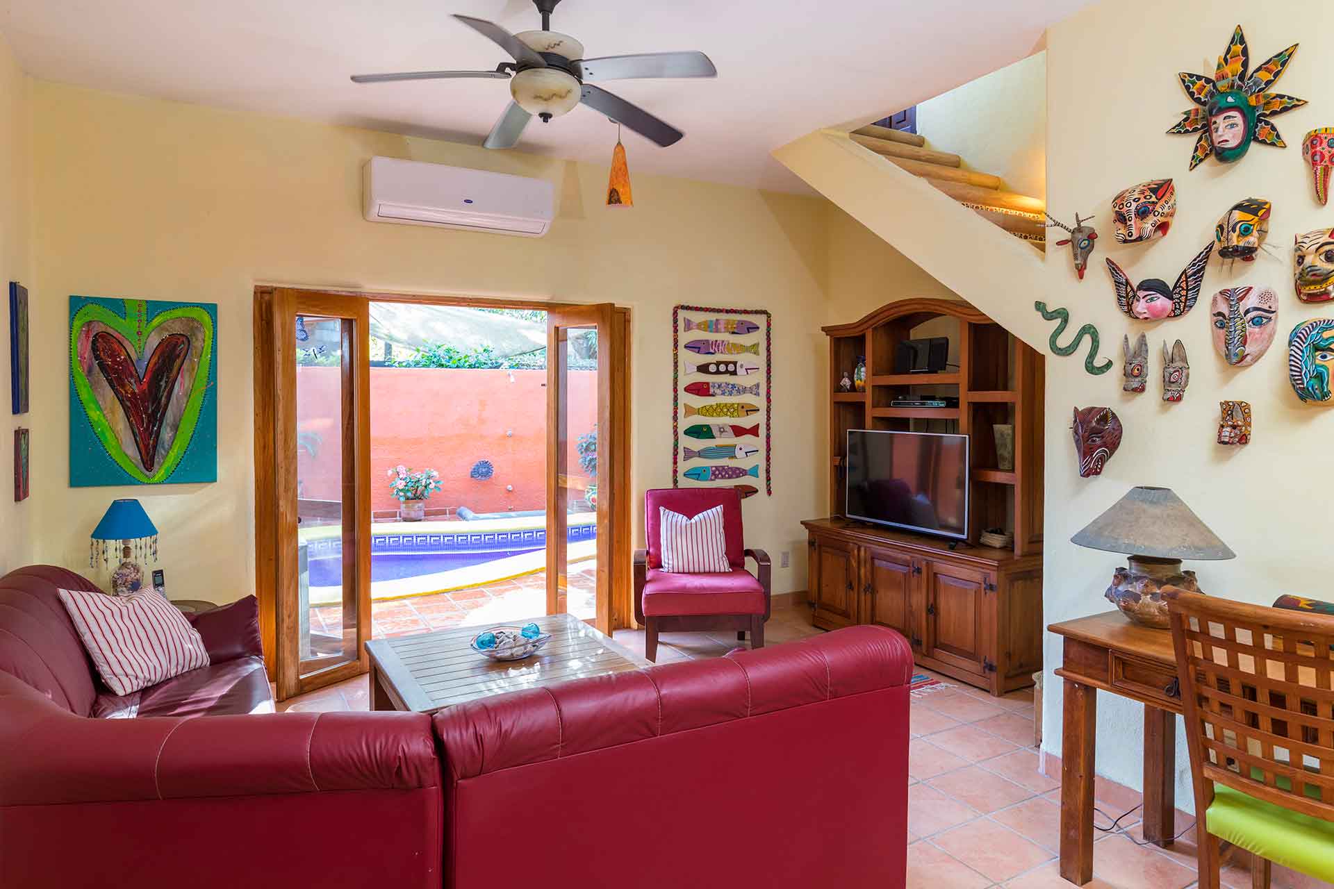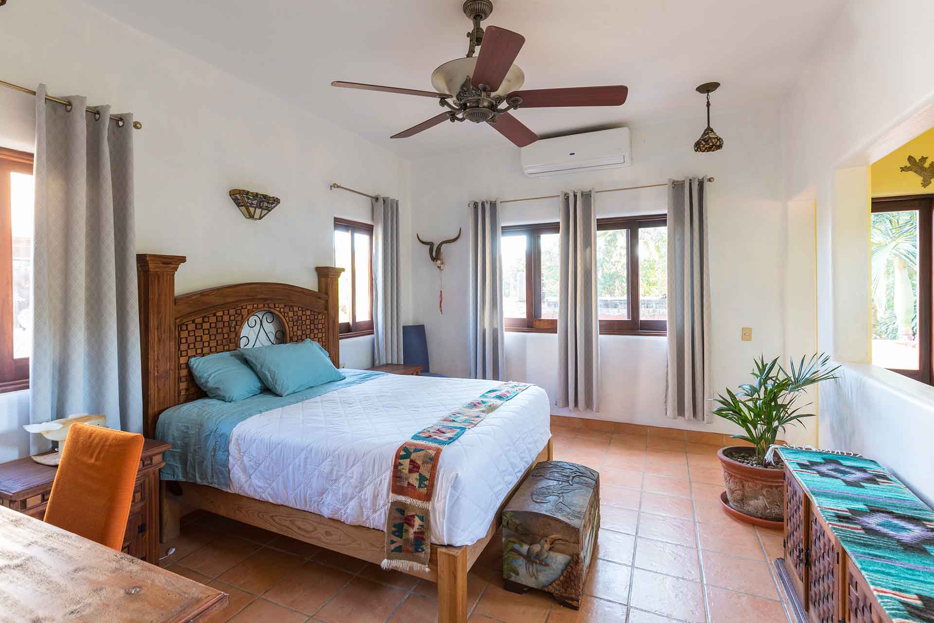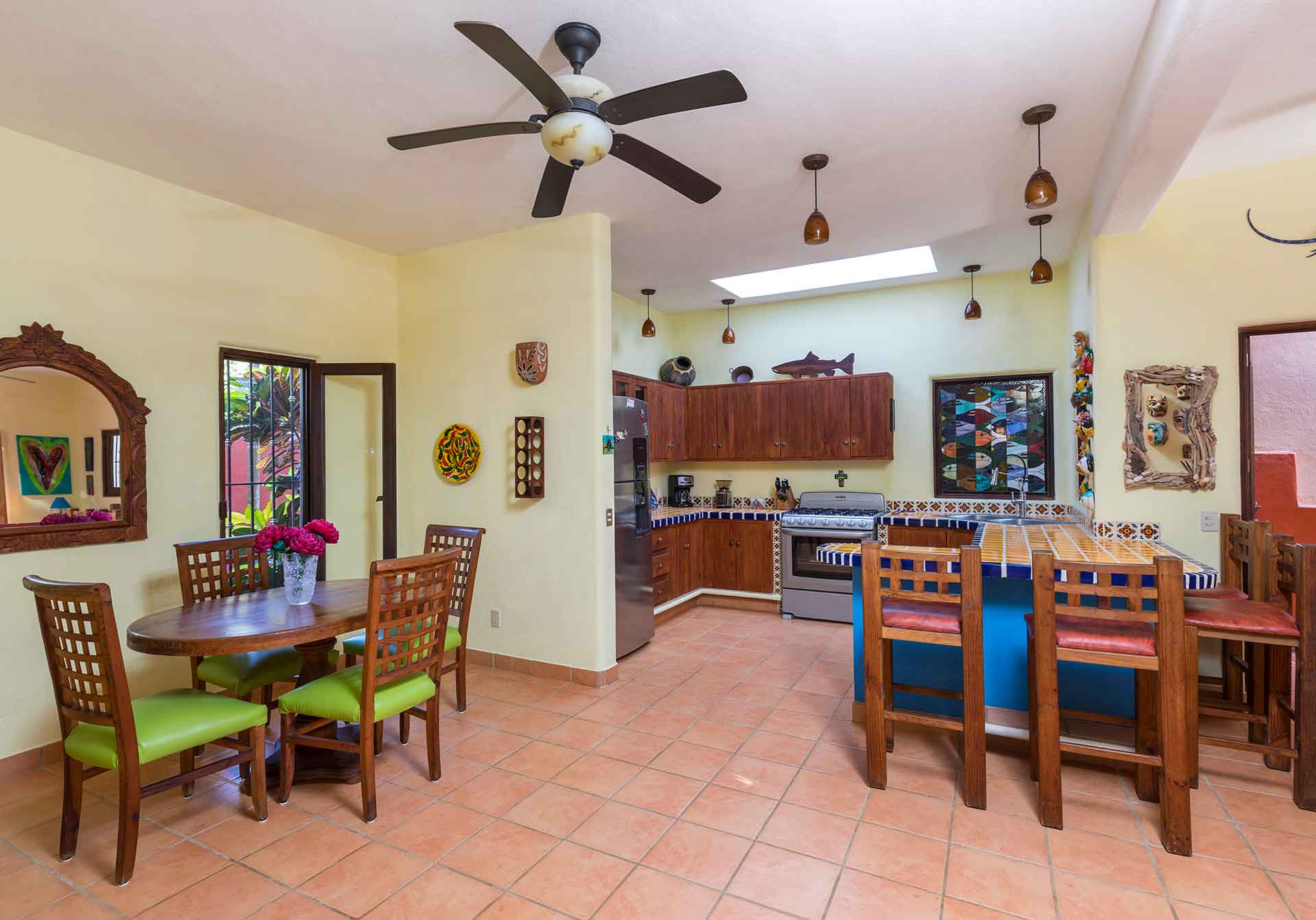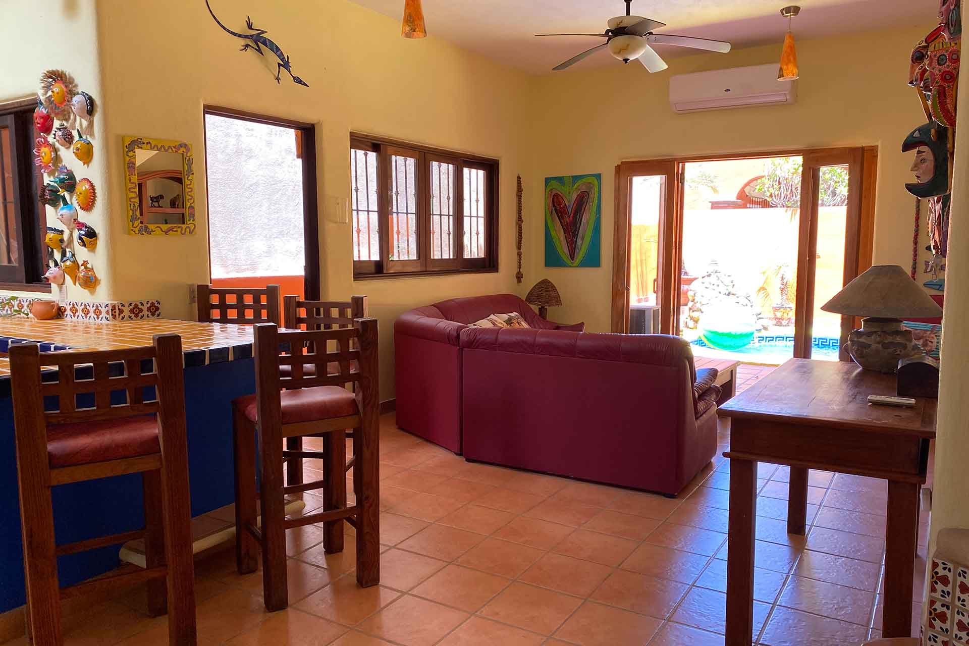Casa el Izote is a three bedroom, two bathroom, two story home nestled in a quaint San Pancho residential neighborhood, surrounded by tropical palms, mango trees, avocado trees and of course, the Izote tree. The home was constructed in an elegant blend of traditional and southwest style with a lush garden off the private pool area and is only a 5 minute walk to all the restaurants and activities San Pancho has to offer, including the beach and surf!