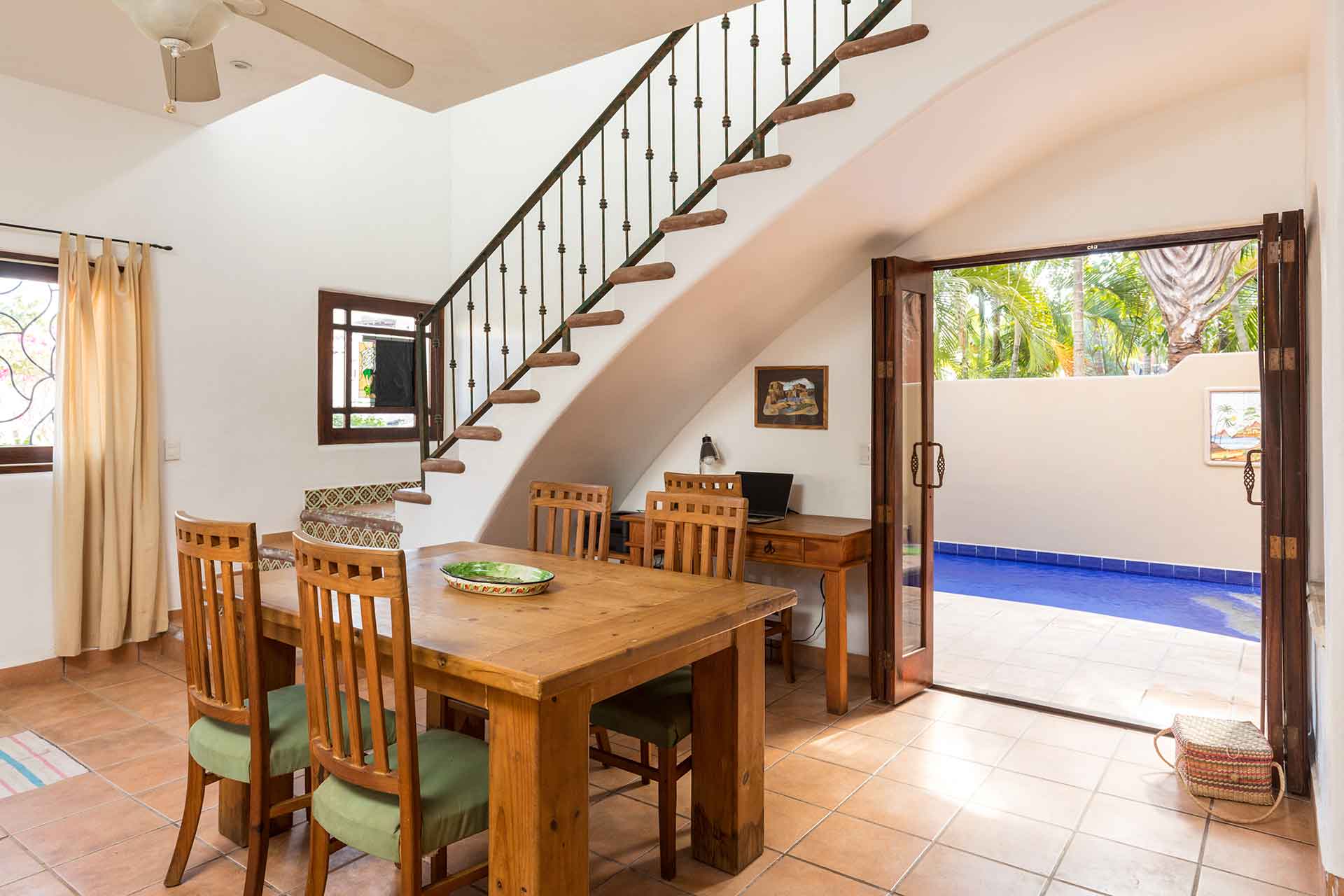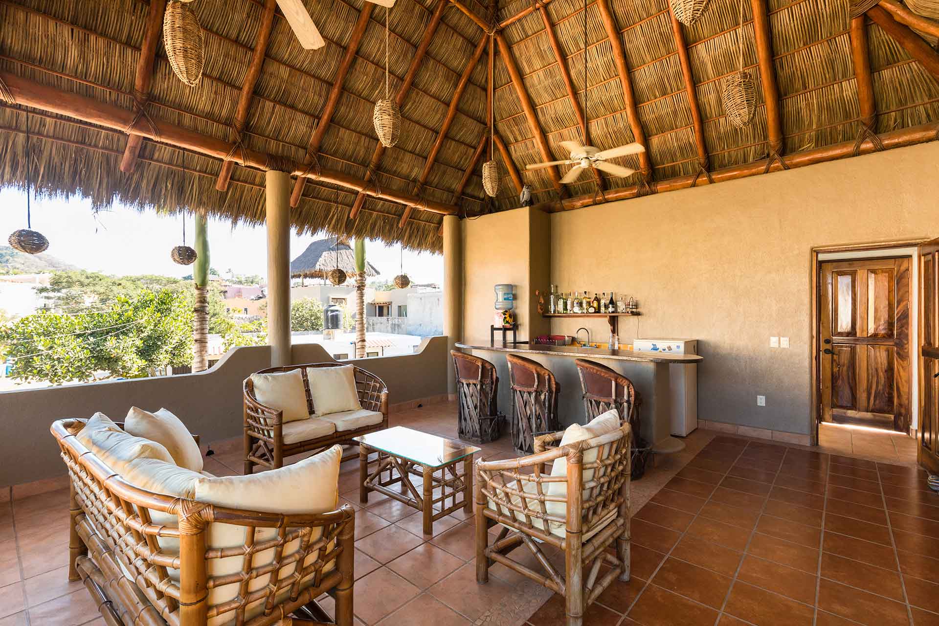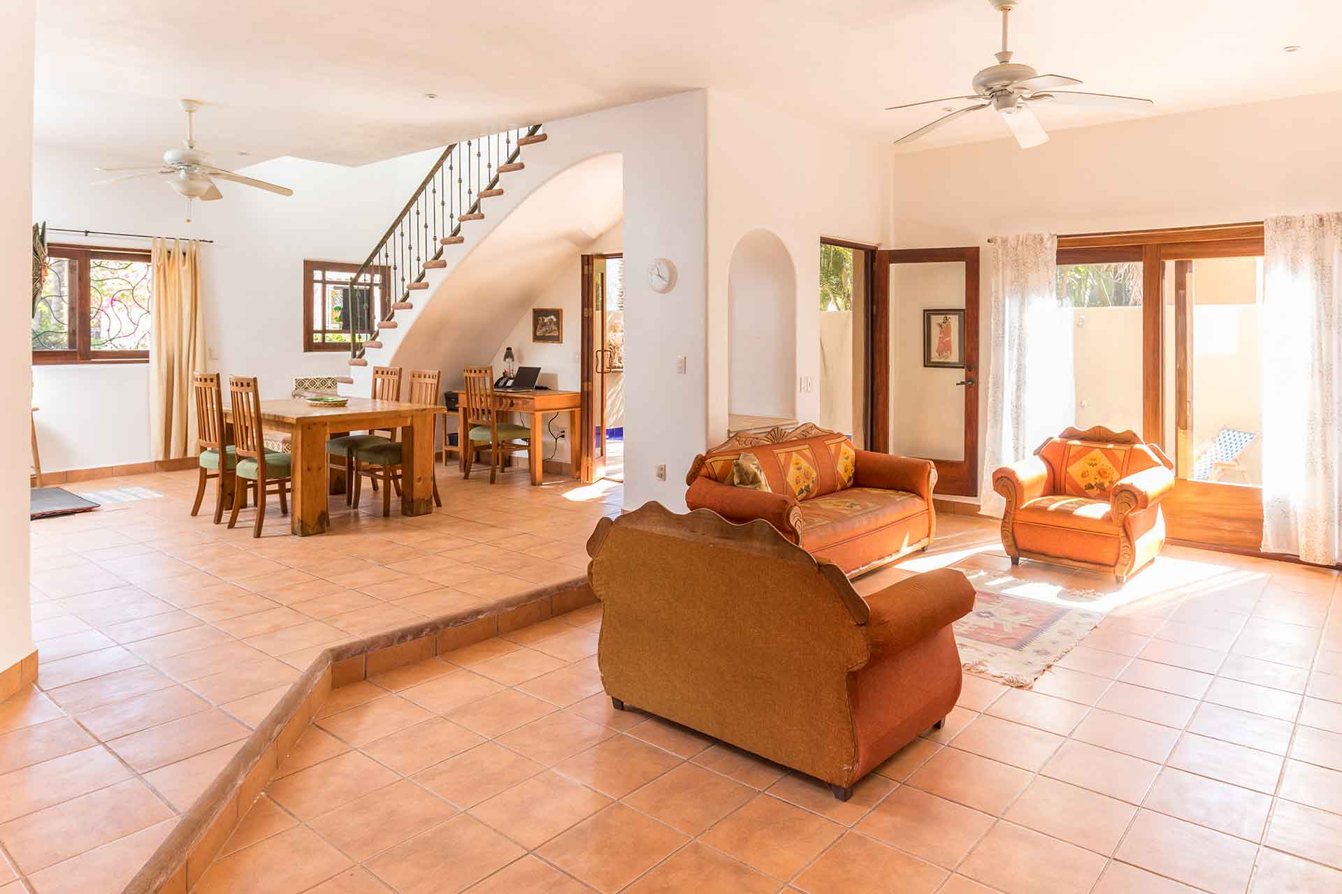 The pool/courtyard area is completely walled in for privacy, the kitchen and laundry room are large and there is great outdoor space upstairs with a 20×20 palapa-covered bar/lounge area to enjoy your afternoon margarita. Built in 2006, Kalea’s House is a wonderful setting to experience the flavor and culture of San Pancho.