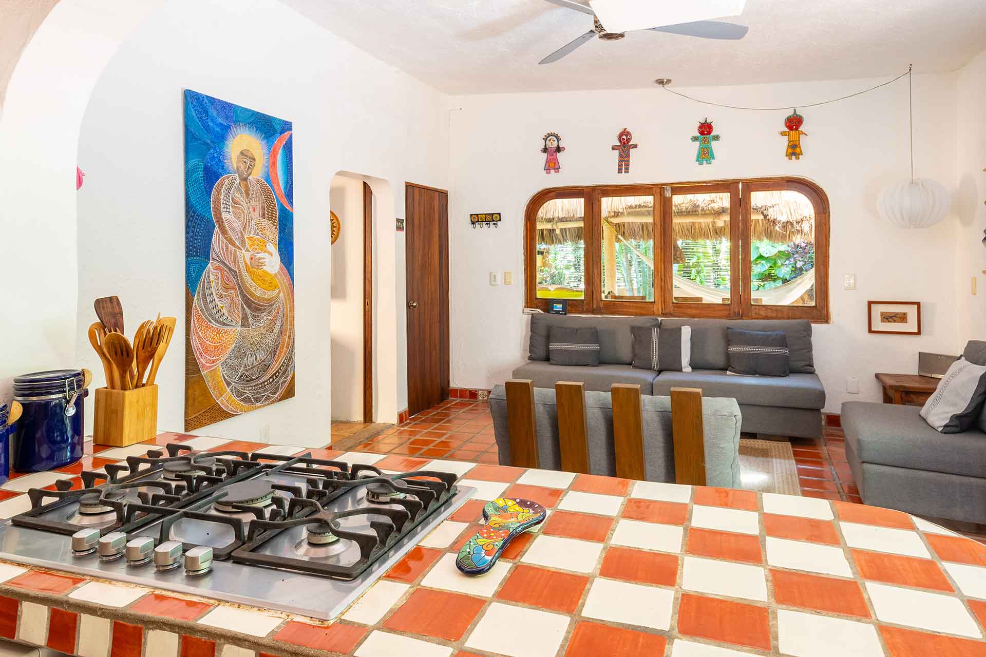 Within walking distance to everything downtown, Casa Jardín provides the opportunity to be centrally located in the San Pancho pueblo, a truly authentic Mexican village that offers a perfect place to relax and soak in all the delights of Mexico. Here you will find a magnificent beach where one can watch the beautiful waves and have a perfect vantage point for enjoying the stunning sunsets along with a wide array of restaurants, mini-groceries stores, gift shops and parks. The vibrant community center, Entreamigos along with the art and music scene in San Pancho add to the enchantment and culture of the town.
