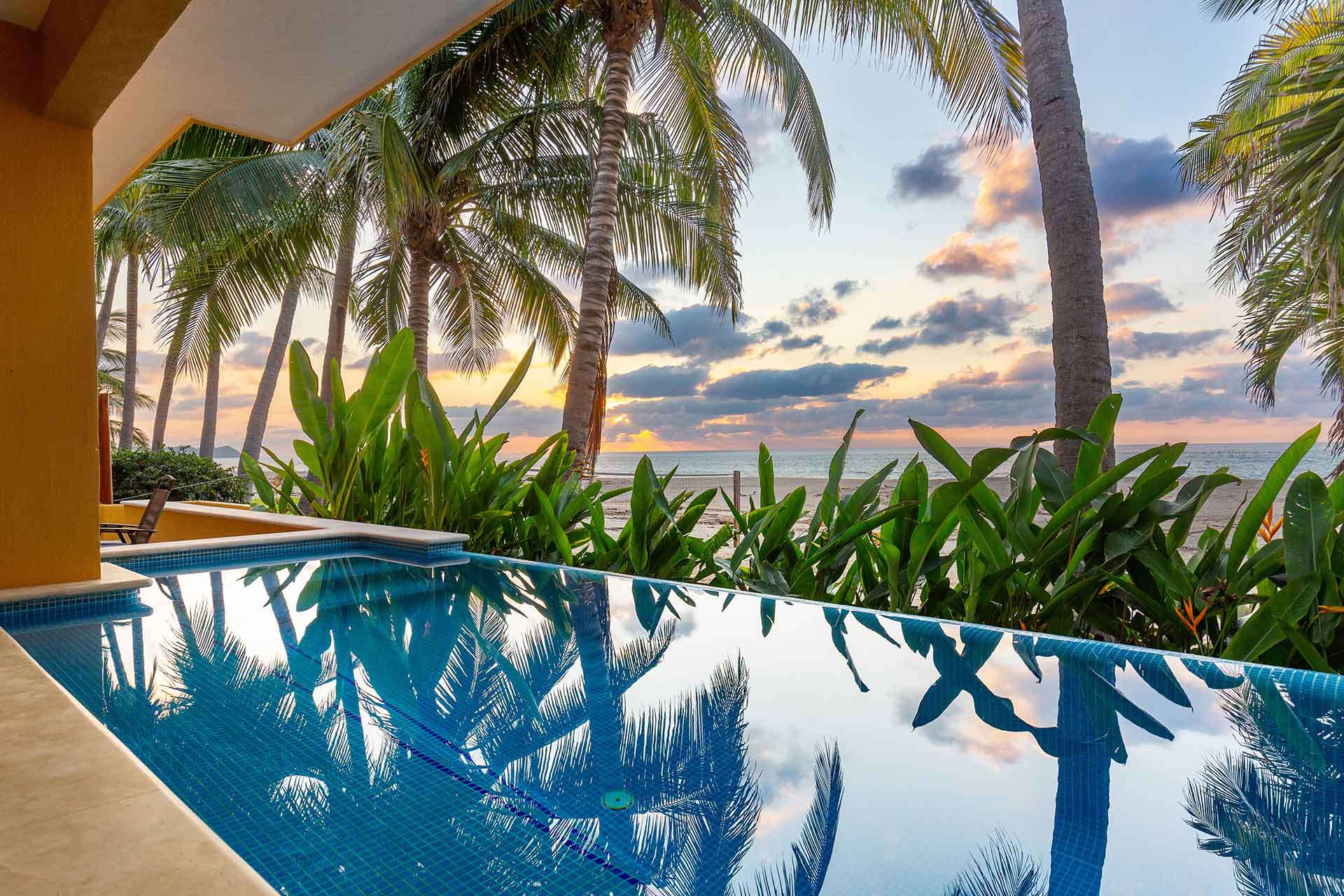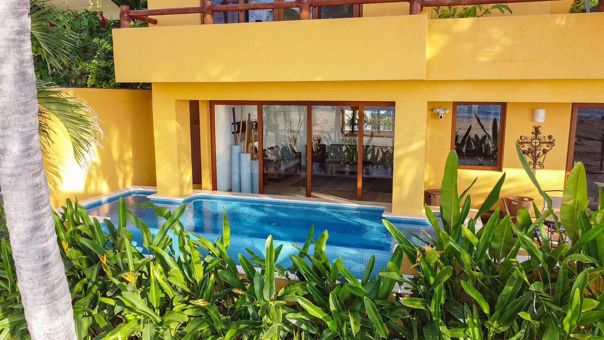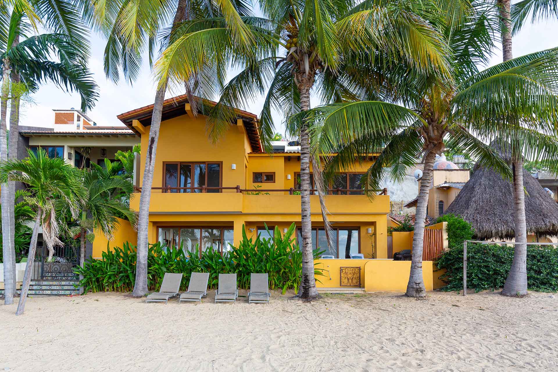 Casa Linda is a grand two-story villa located right on the San Pancho beach in one of the most sought out regions of Mexico, the Riviera Nayarit. Casa Linda has everything one needs for a fantastic vacation; five air-conditioned bedrooms, four full bathrooms, a beachfront pool, an American style kitchen, dining room, family room, ocean view balconies, daily housekeeping and an excellent private cook.