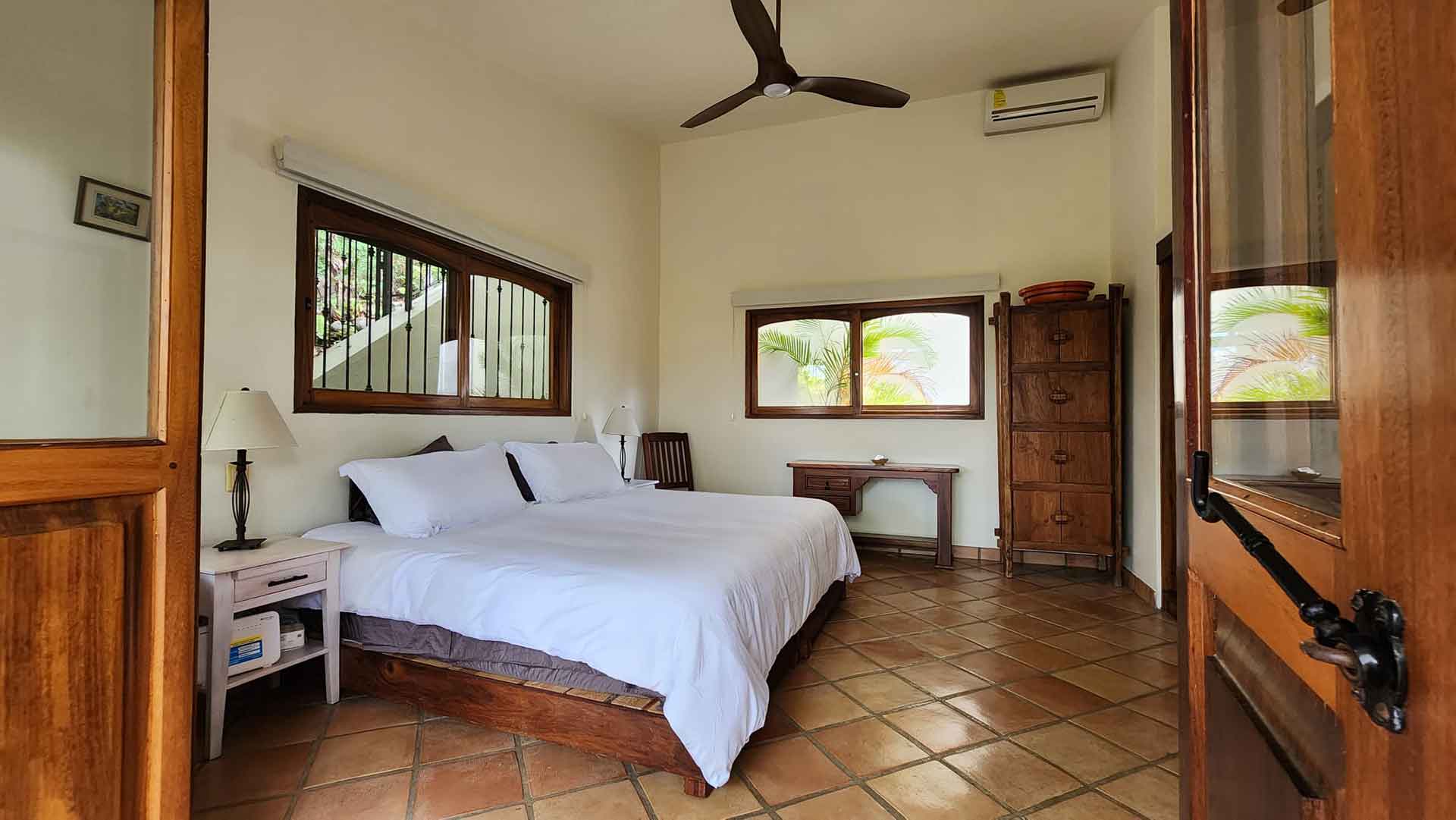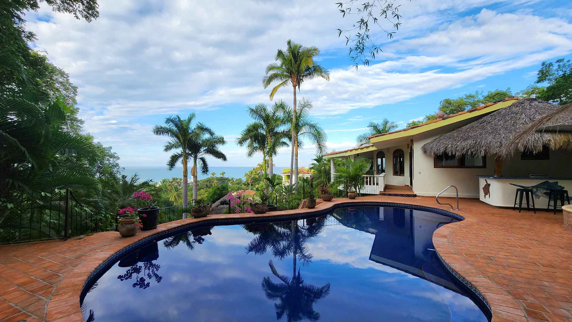 When you arrive at Casa Vista del Mar you are immediately taken by the lush landscaping that encircles the entire property. From the carports, stairs lead you to the main entrance of the home. The entire home is on the same level, including the outdoor pool terrace. The center of this home includes a large great room encompassing the kitchen and a large dining/living area. This entire area is enclosed with screened windows and sliding glass doors, surrounded by a wrap around, ocean view terrace that leads you to the large pool patio with wet bar. Each en-suite bedroom is located on opposite ends of this grand living area, offering the utmost privacy. The outdoor pool patio with bar, barbecue, lounge chairs and umbrellas all provide the perfect place to relax while listening to the tropical birds, lounging in the sun and watching the famous San Pancho sunsets!