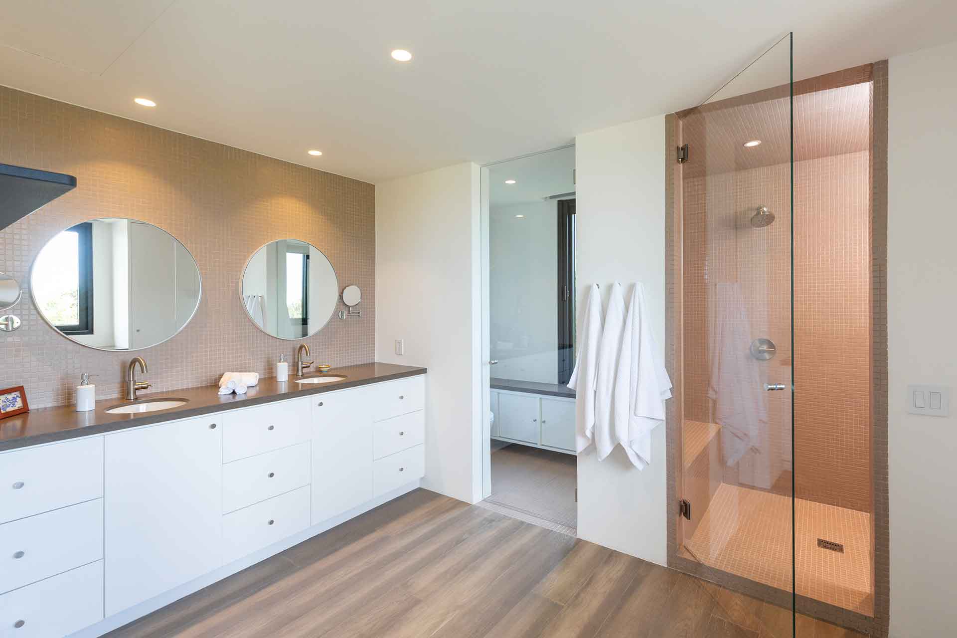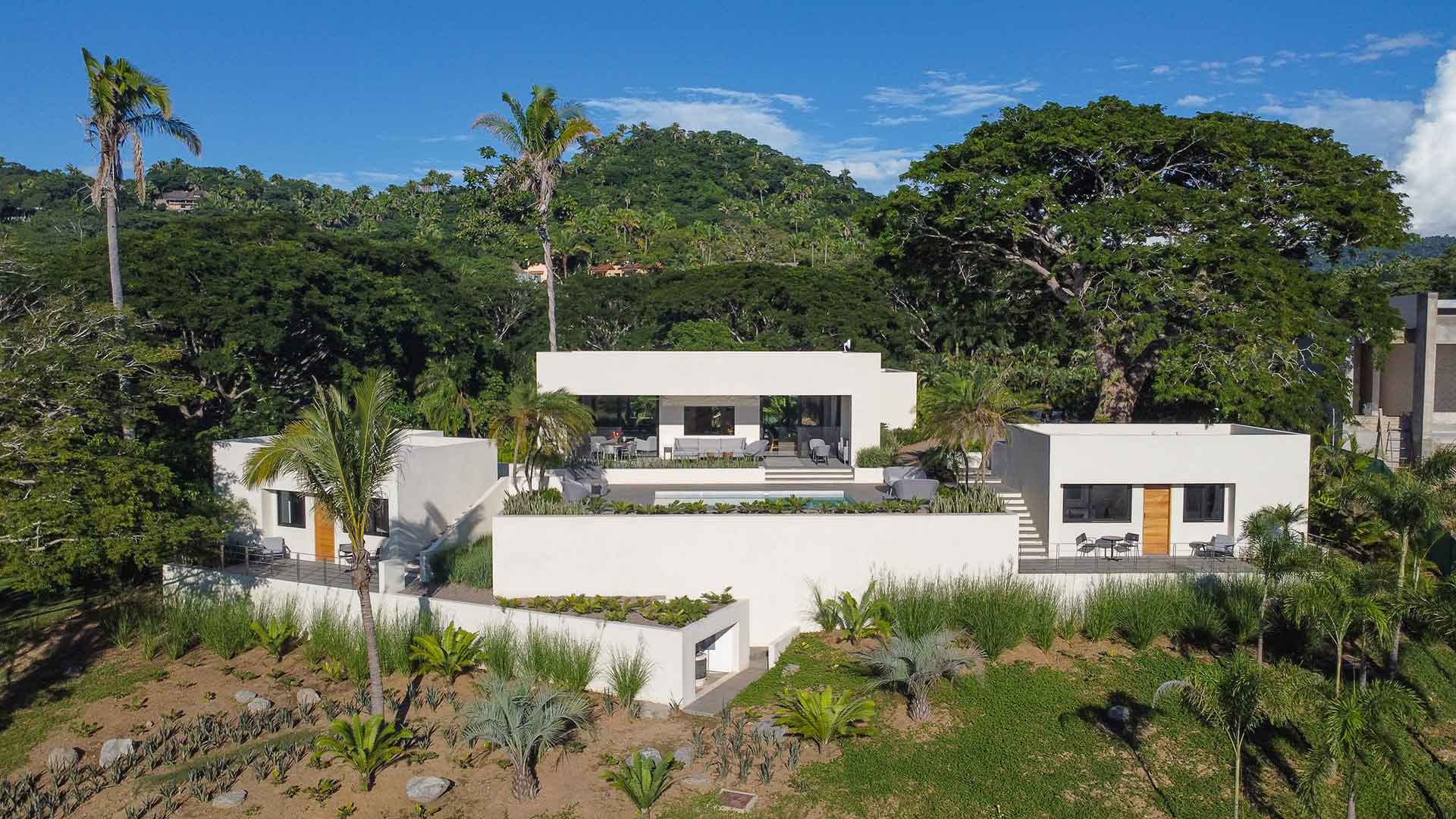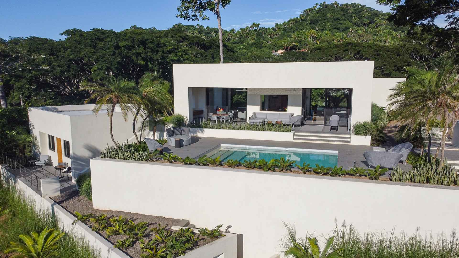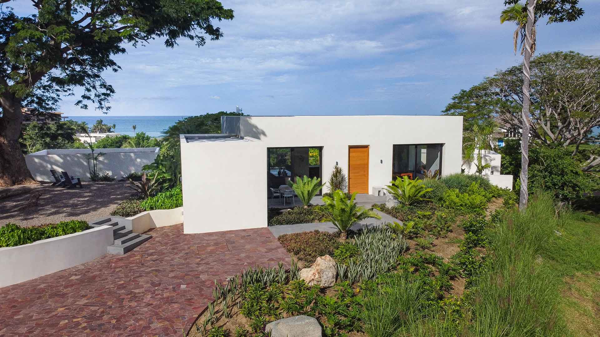 Casa Vista is one of San Pancho’s newest editions, hosting expansive views of the Pacific Ocean and lush tropical jungle, while just steps to the beach and conveniently located near the town center. Upon entering the grounds, one is immediately encompassed in the well-manicured gardens. The private parking leads to the entrance level with a fully air conditioned, open concept living area, dining room and kitchen, all of which lead out the ocean view terrace with heated swimming pool. On either side of the pool, steps lead to the air-conditioned, en-suite king bedrooms.
