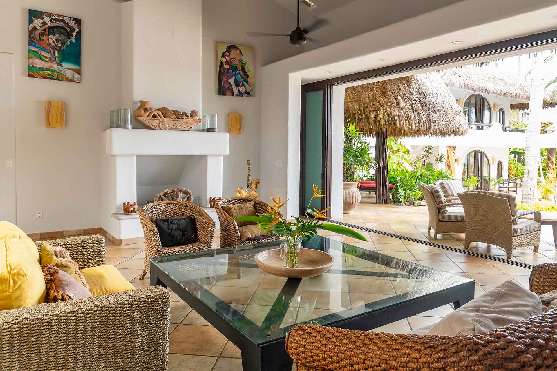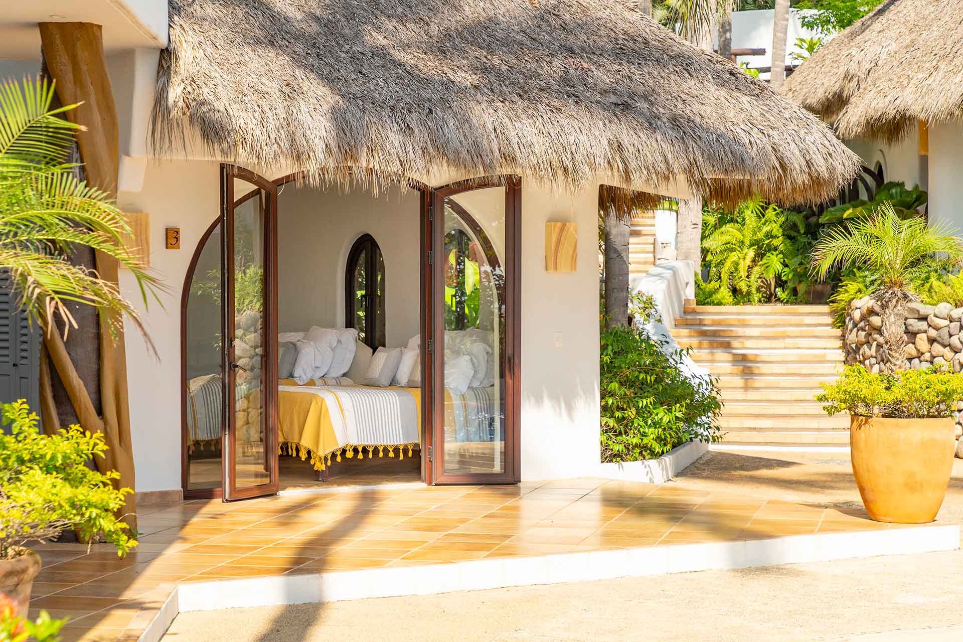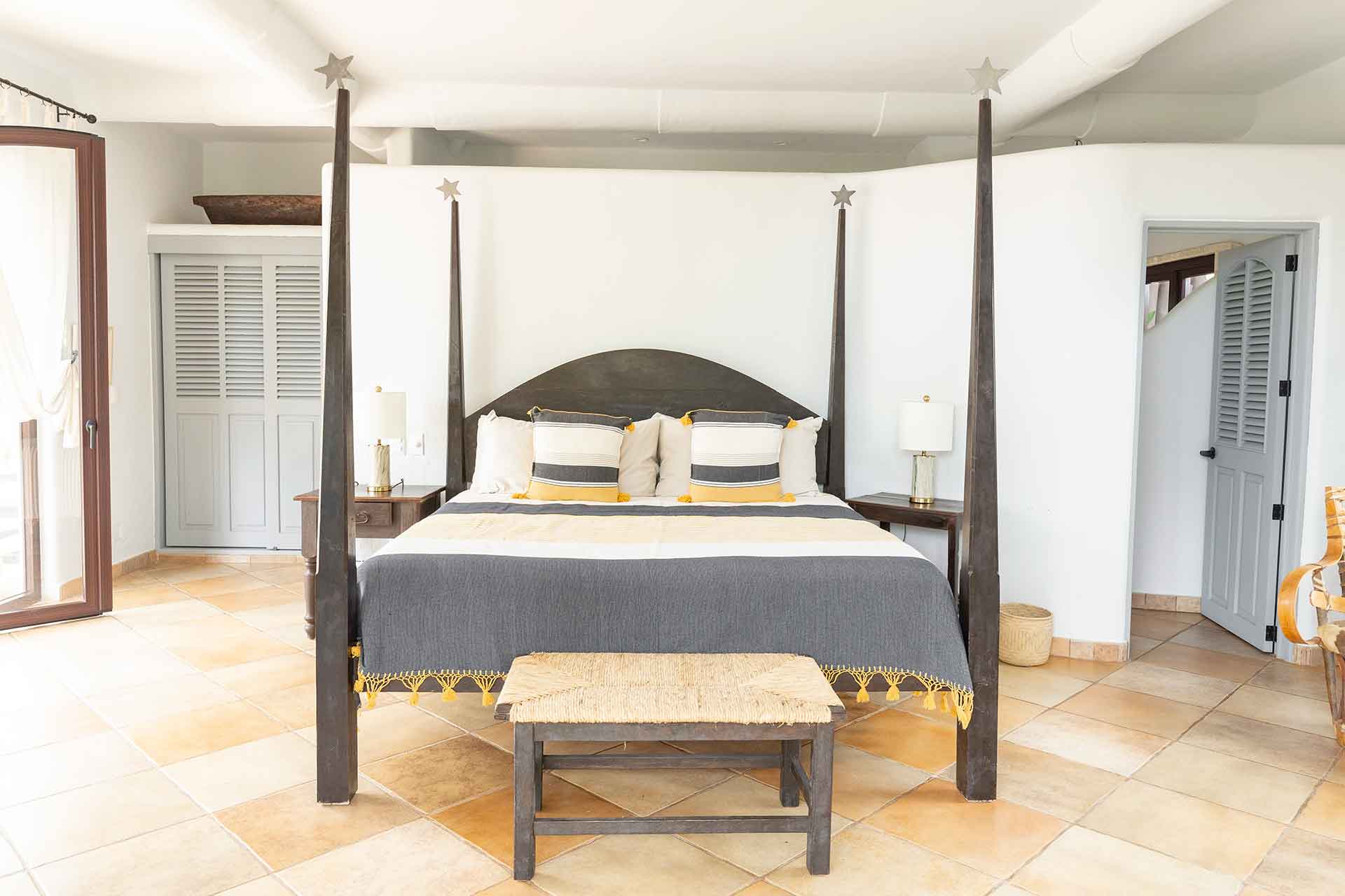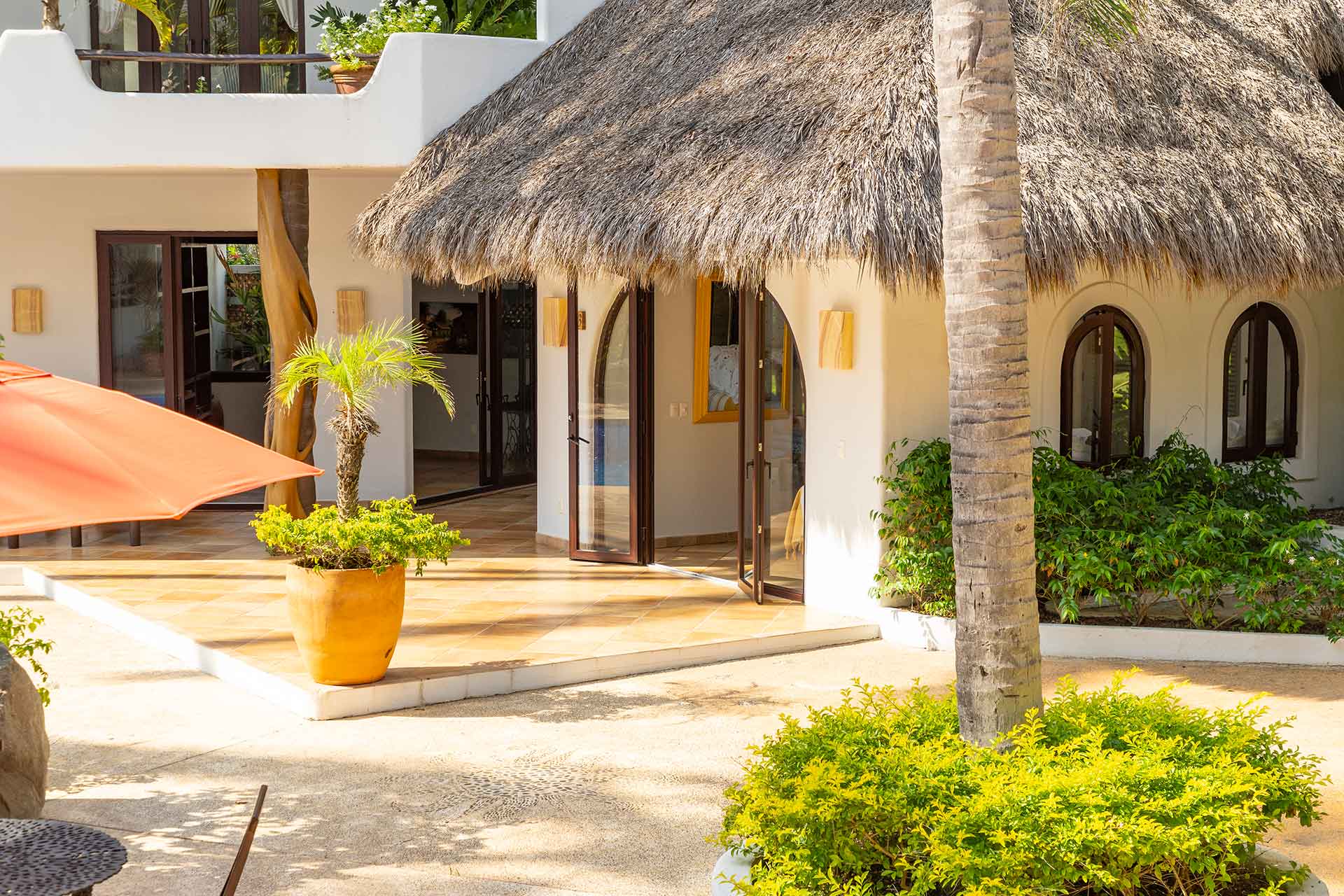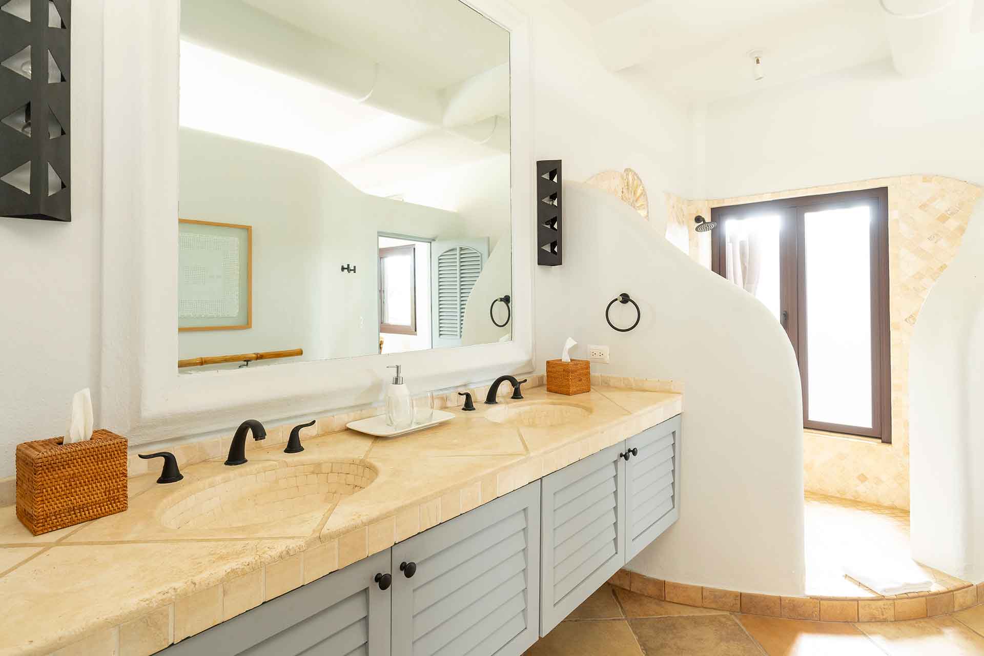 Encompassing over six thousand square feet of living space, El Fenix encompasses four thatched roof, palapa buildings. The five en suite bedrooms are separated to offer privacy, yet they all surround the sweeping garden terrace, beachfront pool and hot tub, providing a sense of close proximity for your entire group. The villa provides four en-suite king bedrooms and one en suite bedroom with two full size beds.