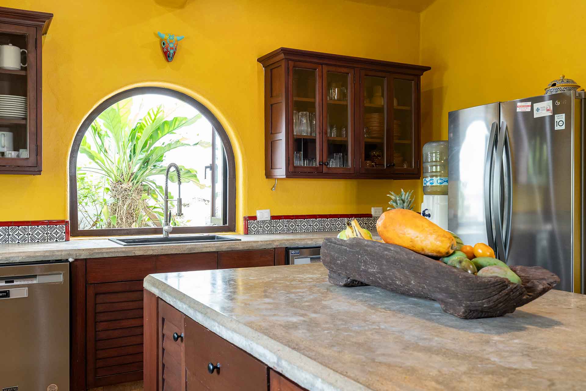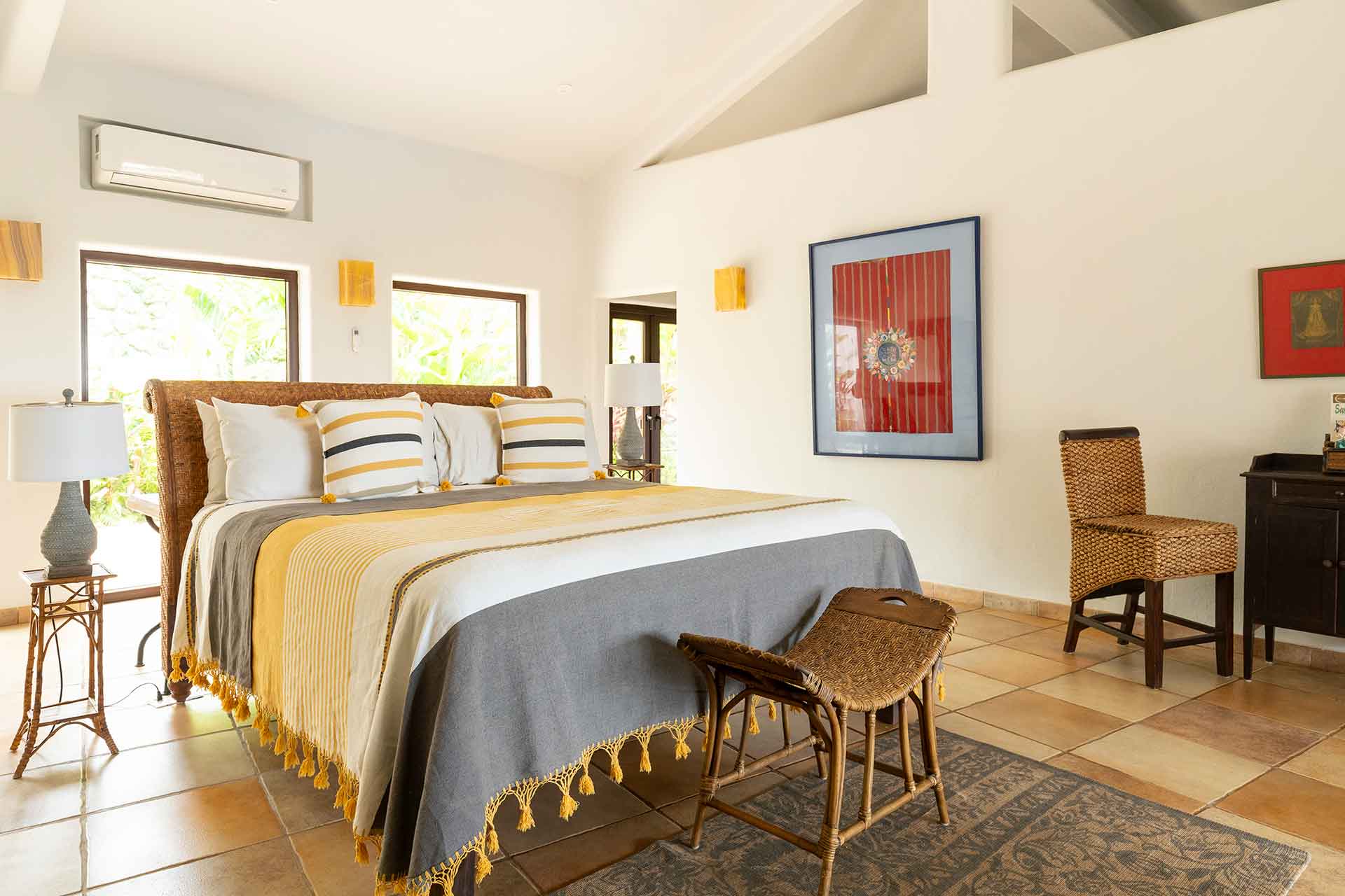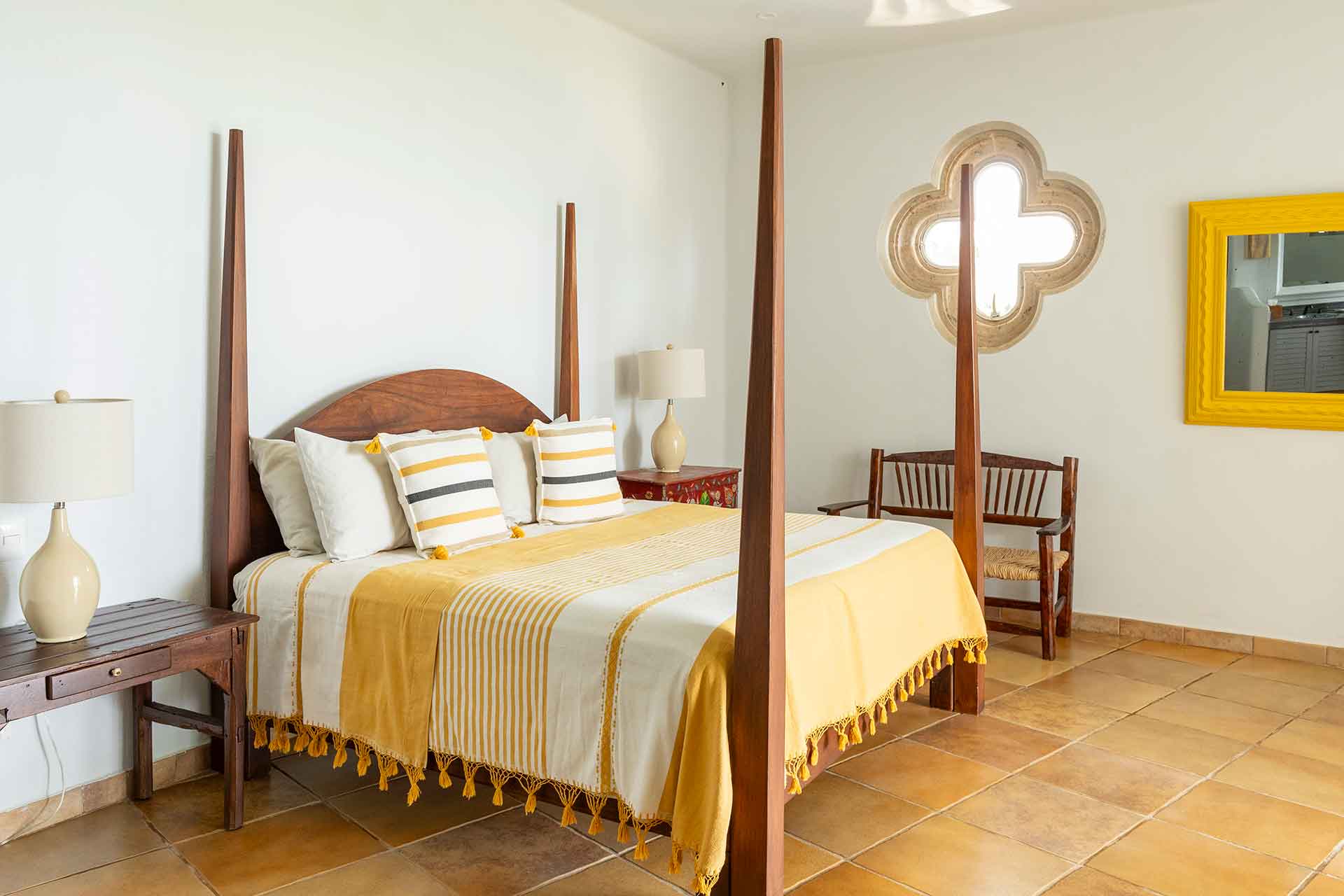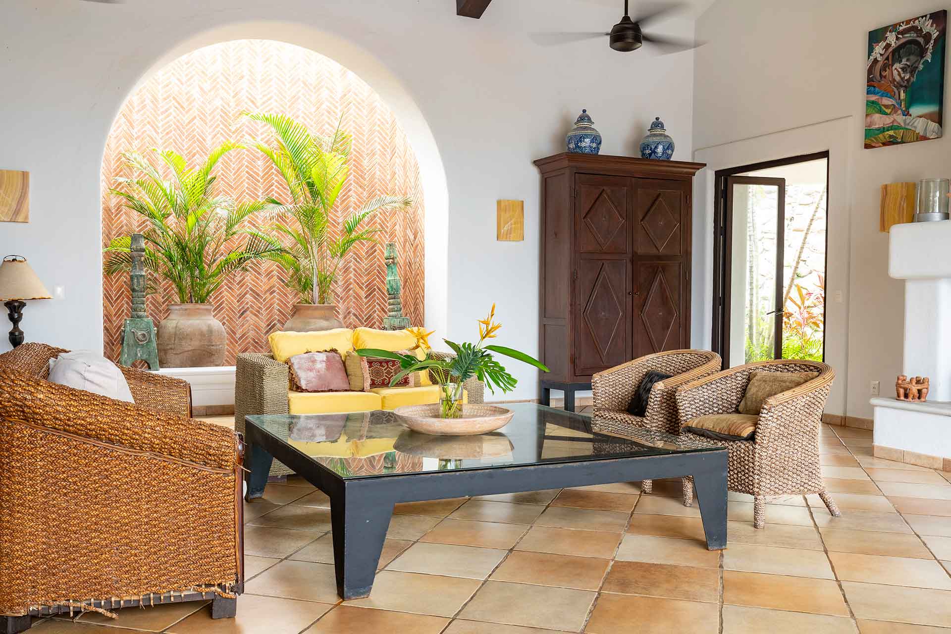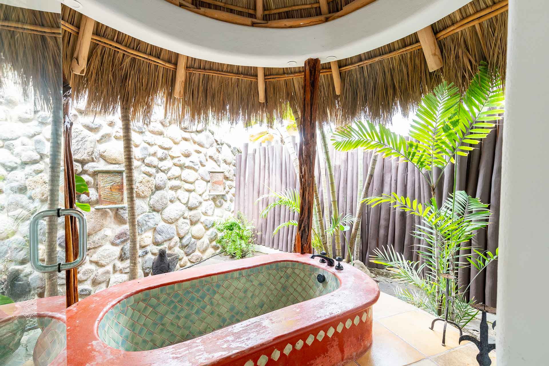 Encompassing over six thousand square feet of living space, El Fenix encompasses four thatched roof, palapa buildings. The five en suite bedrooms are separated to offer privacy, yet they all surround the sweeping garden terrace, beachfront pool and hot tub, providing a sense of close proximity for your entire group. The villa provides four en-suite king bedrooms and one en suite bedroom with two full size beds.