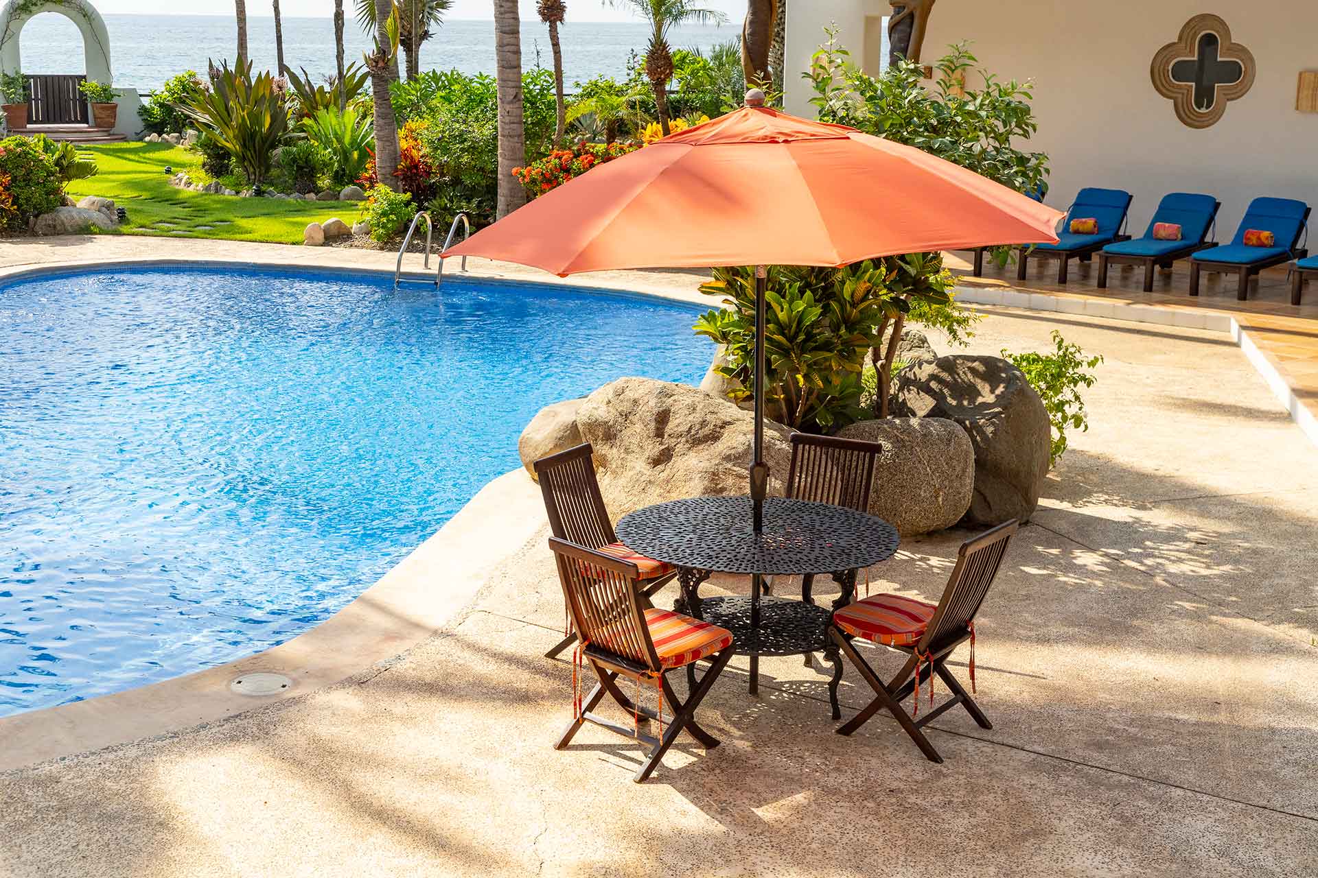 The expansive indoor/outdoor living room, covered outdoor dining table for twelve, fabulous beachside pool combined with the incredibly accommodating staff provide a dream vacation for families and friends looking to get away in their own private paradise.