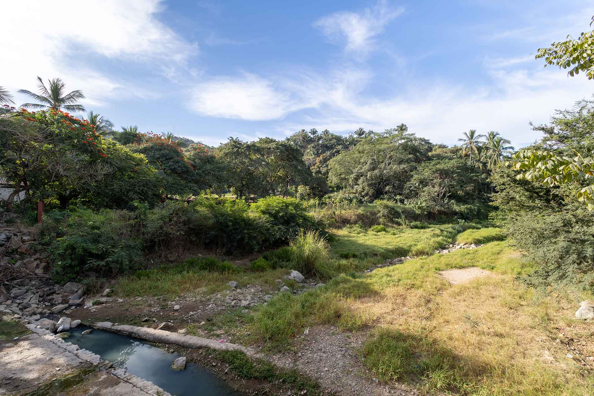 An expansive commercial parcel offering the rare combination of river frontage and highway exposure, ideally located in the heart of the charming beach town of San Pancho (San Francisco), Riviera Nayarit, Mexico. This exceptional property presents a unique opportunity for mixed-use development, with zoning that allows for multi-residential and commercial use. Conceptual designs for a river-and-highway-facing commercial development are available upon request.