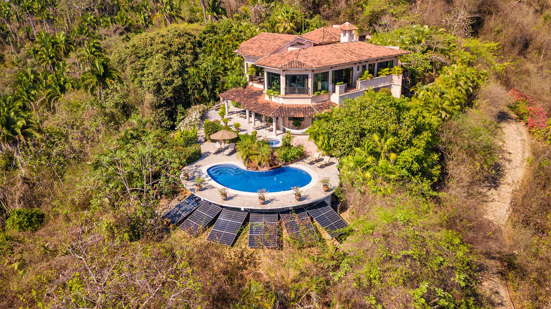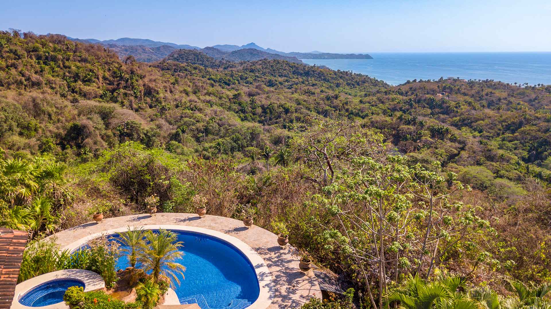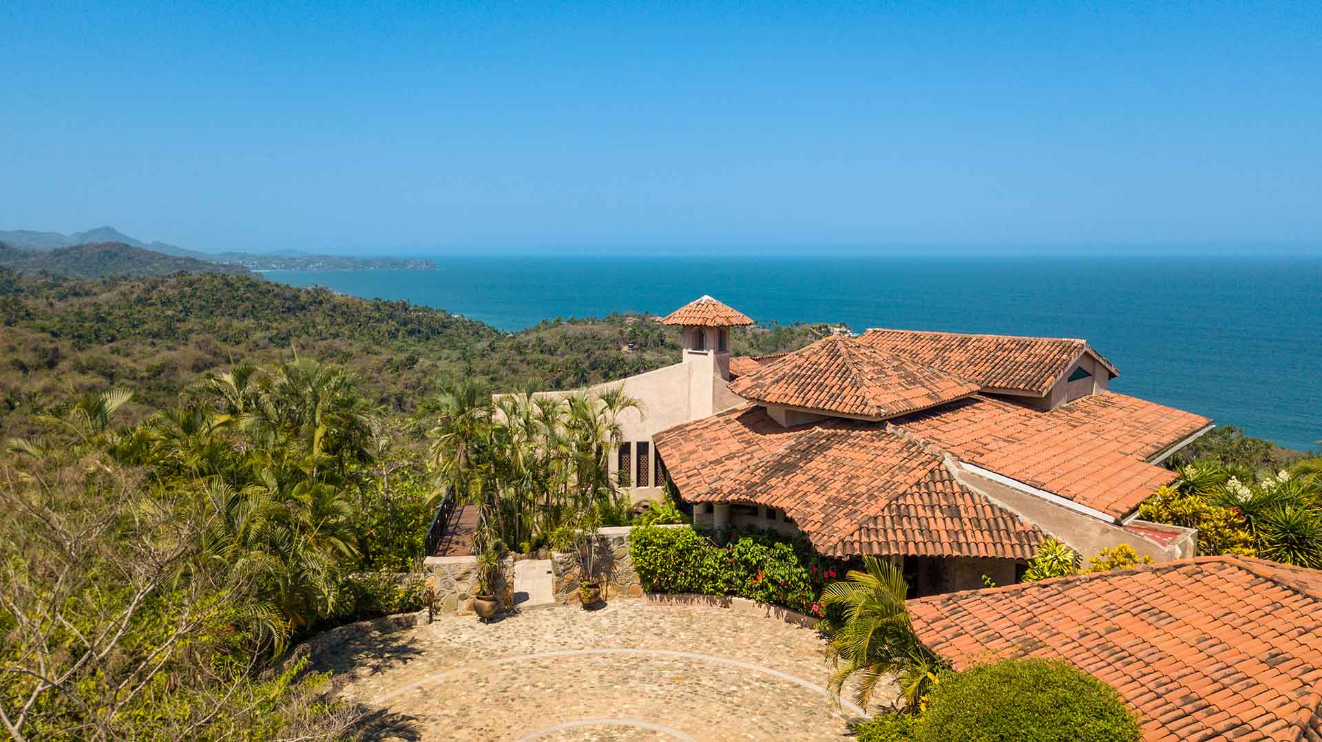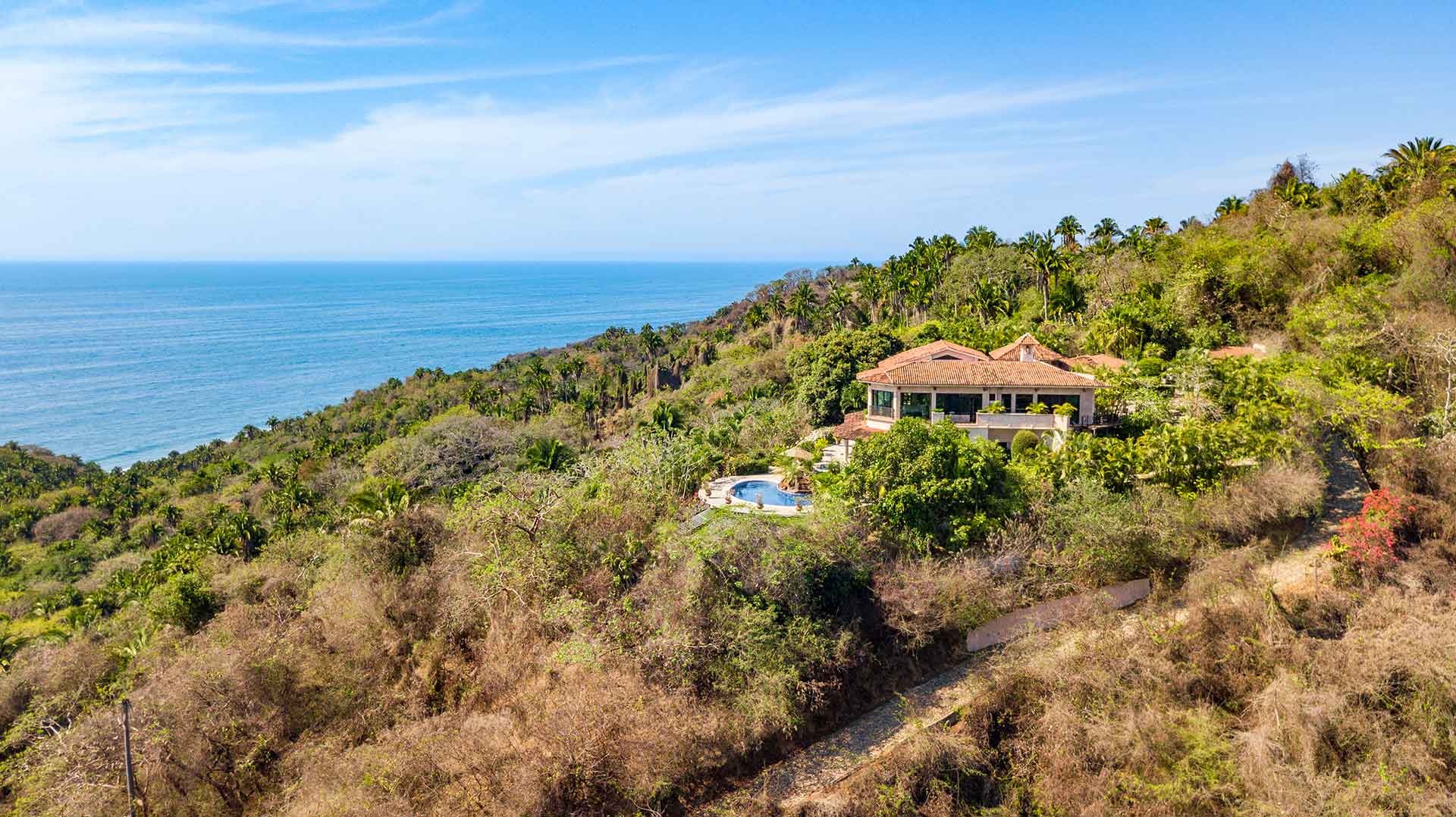 Experience the incredible 180-degree views of the crystal blue waters of the Pacific Ocean and lush tropical jungle at Nido de Aguila. This spectacular property encompasses approximately 9 hectares (20 acres) of pristine Riviera Nayarit jungle. The property is fully developed with a hand-laid stone driveway from the gated entry, leading to the ocean view villa at the top of the hill.