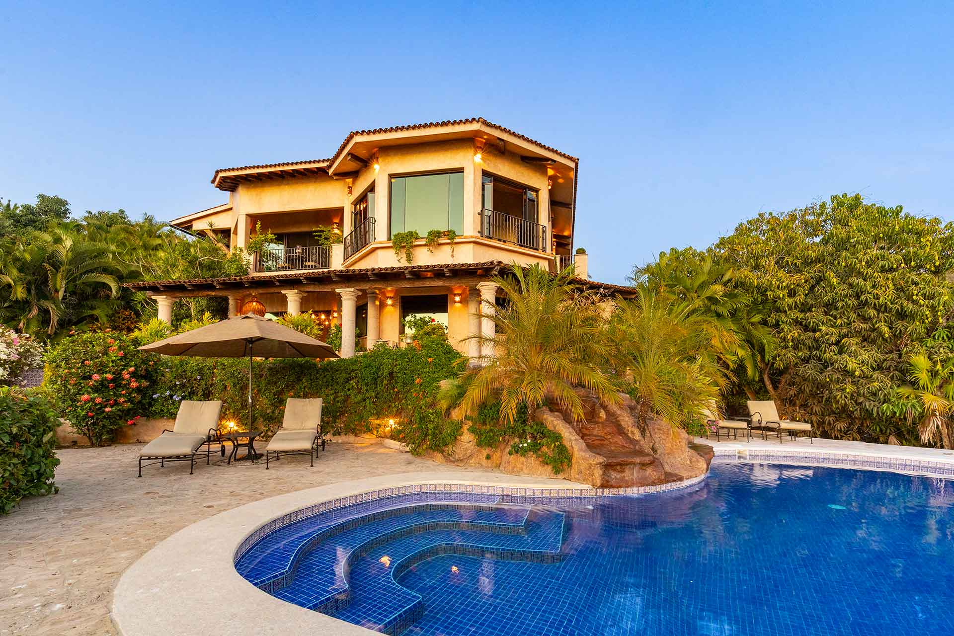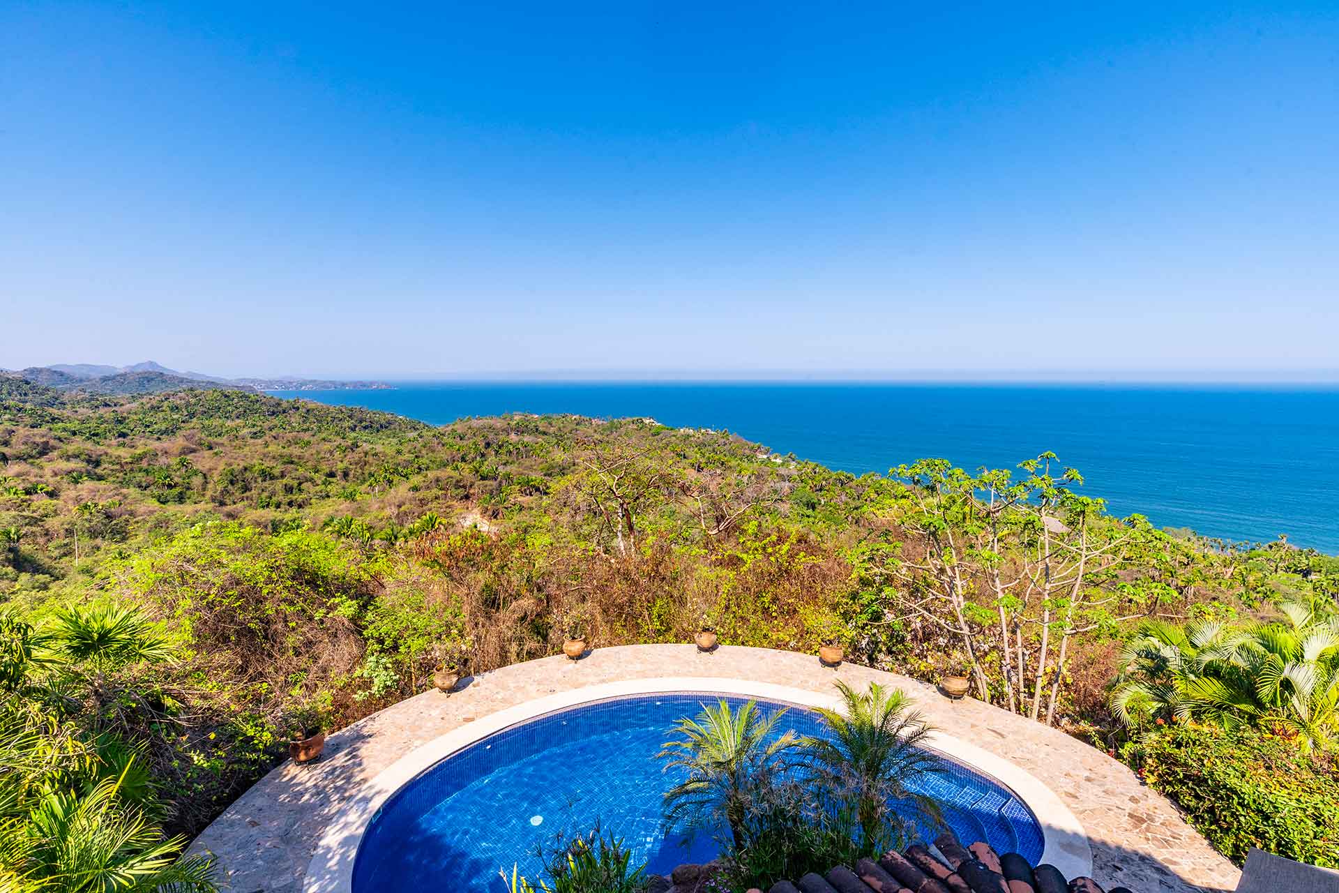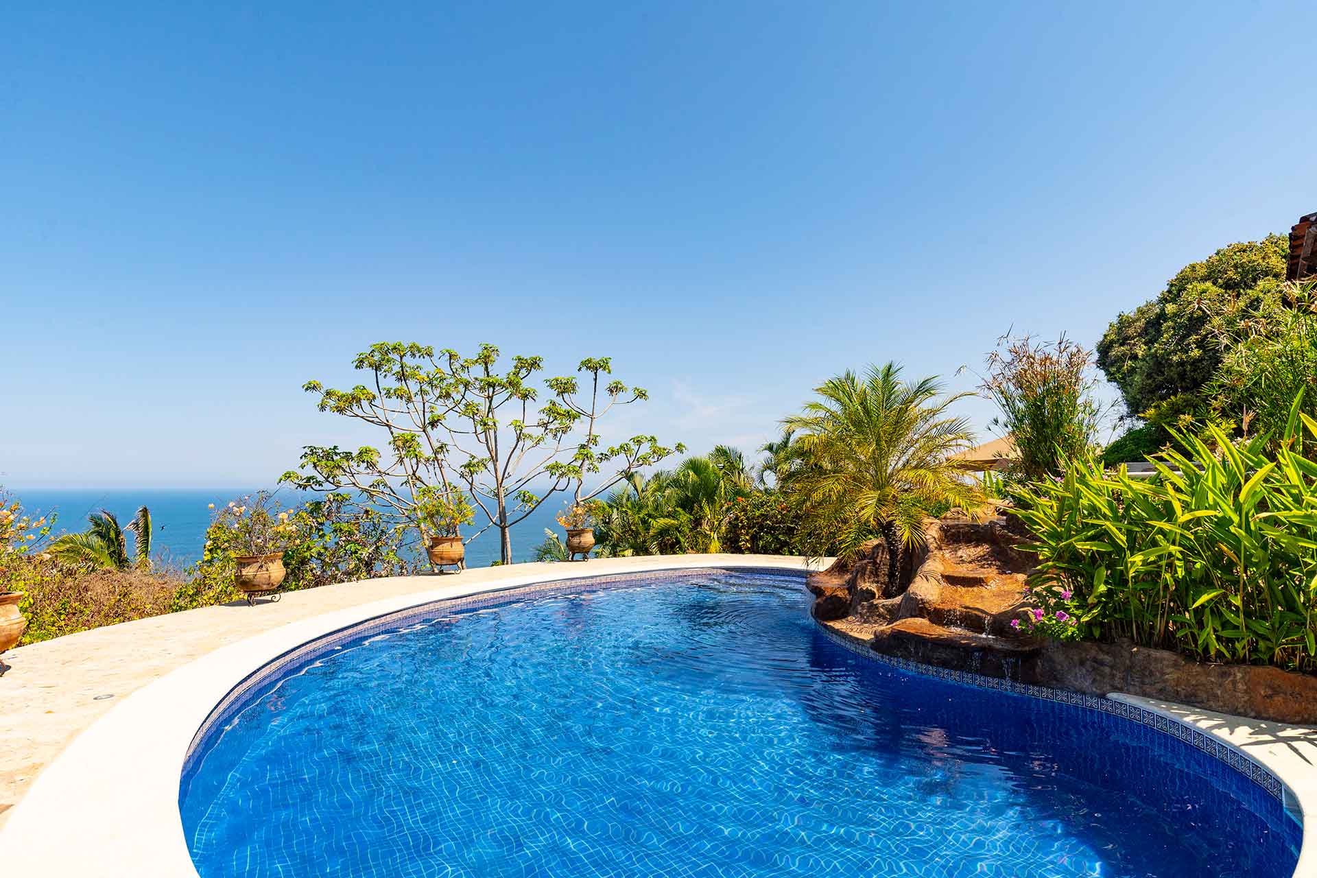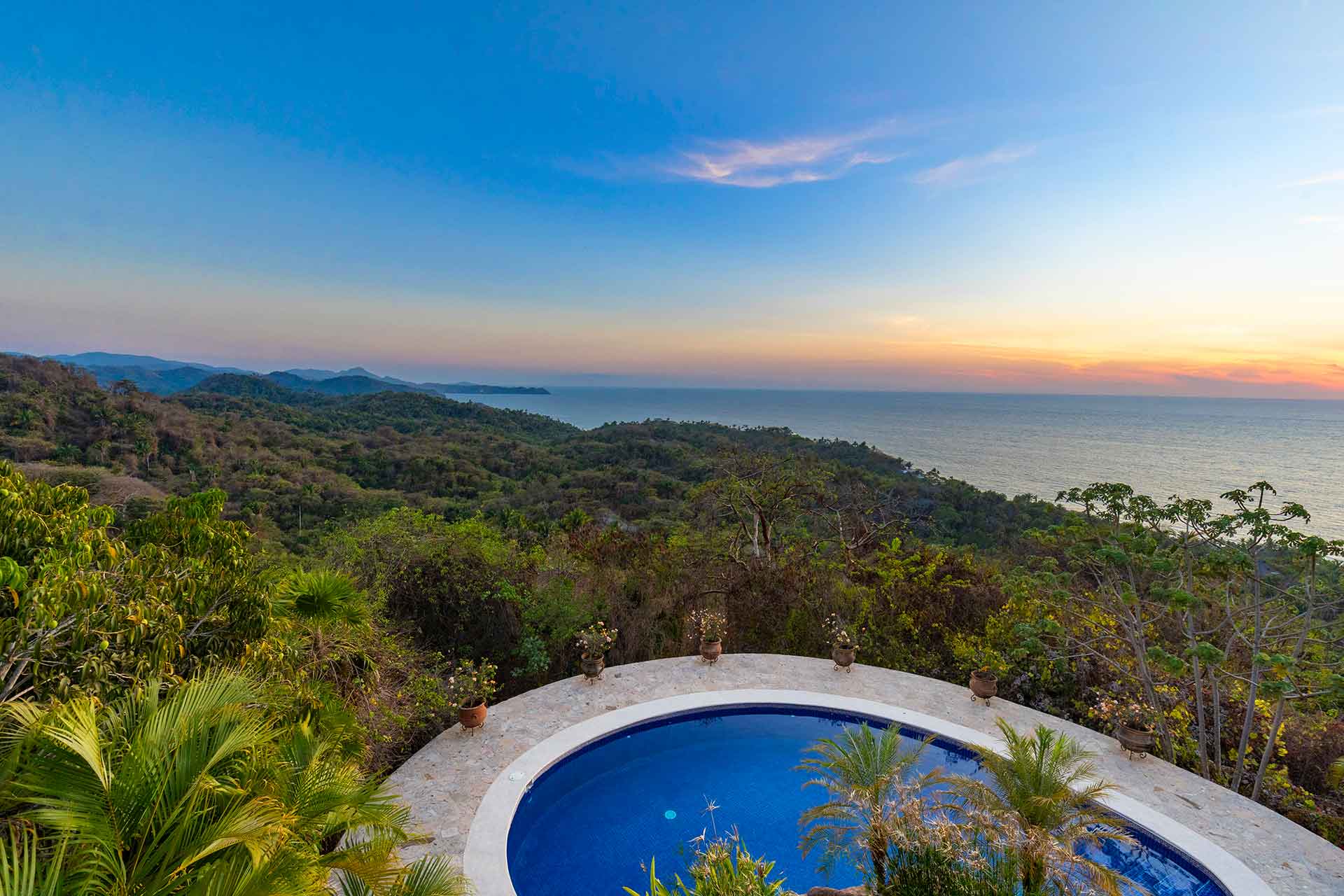 Experience the incredible 180-degree views of the crystal blue waters of the Pacific Ocean and lush tropical jungle at Nido de Aguila. This spectacular property encompasses approximately 9 hectares (20 acres) of pristine Riviera Nayarit jungle. The property is fully developed with a hand-laid stone driveway from the gated entry, leading to the ocean view villa at the top of the hill.