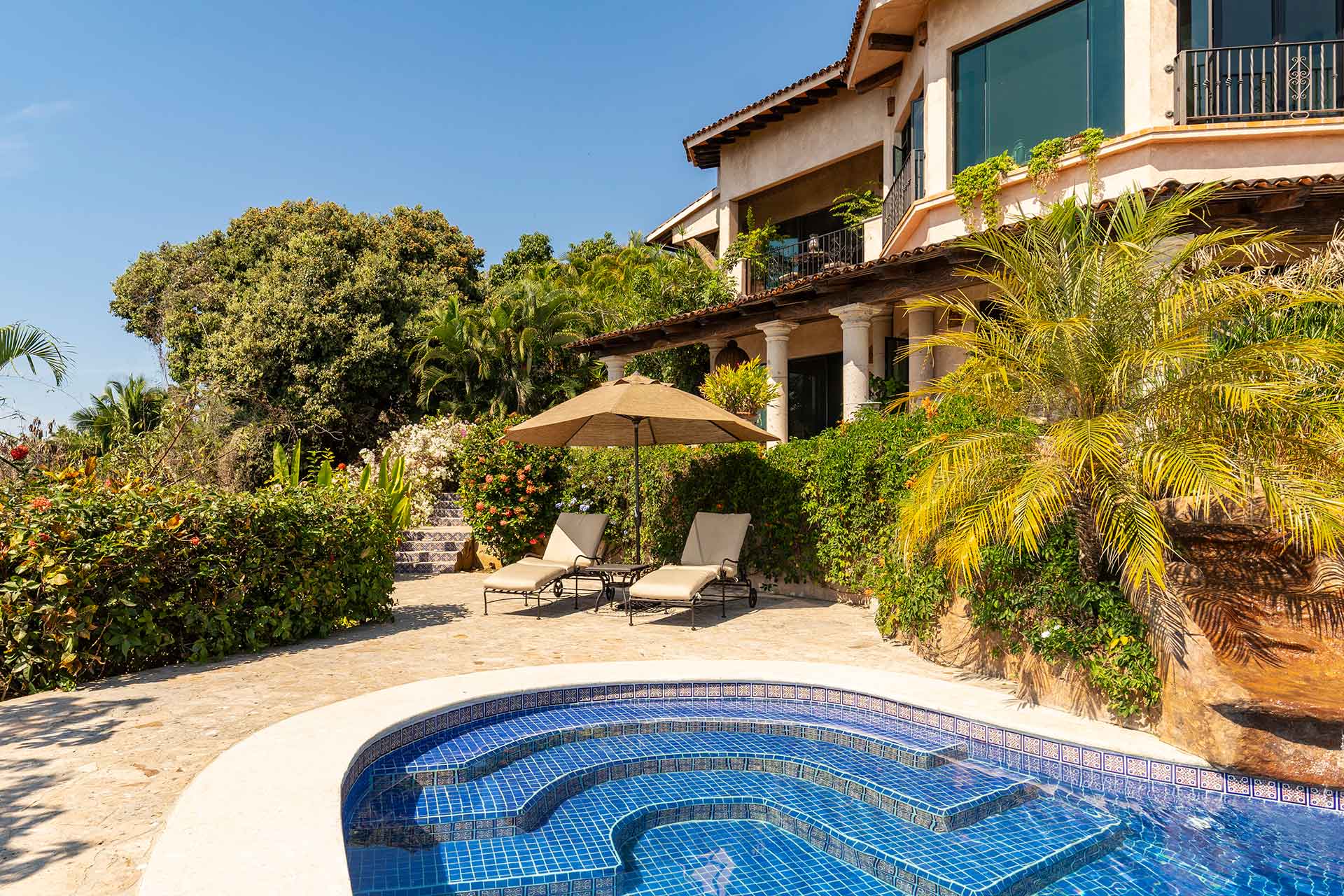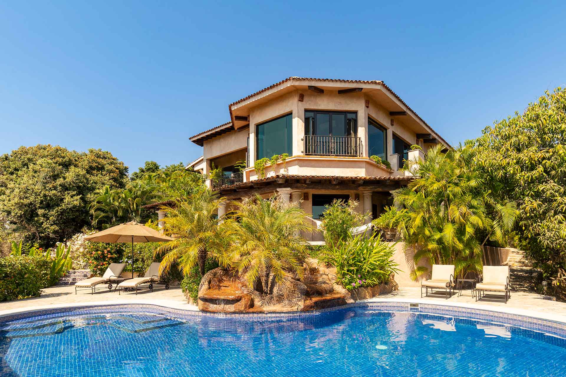 Nido de Aguila is nestled in a secluded corner of paradise surrounded by awe-inspiring nature and beauty. This two-story villa hosts three en suite bedrooms, two with private patios.  The master bedroom provides a panoramic 180-degree view of the ocean and the jungle through four huge picture windows. Adjacent to the master bedroom is a modern, spacious bathroom, a study with a balcony facing the ocean and an exercise room.  A modern kitchen, a formal dining room, living room, powder room, garage with workshop, multi-level terraces, heated whirlpool, and ocean view swimming pool completes the comfort and elegance of this home.
