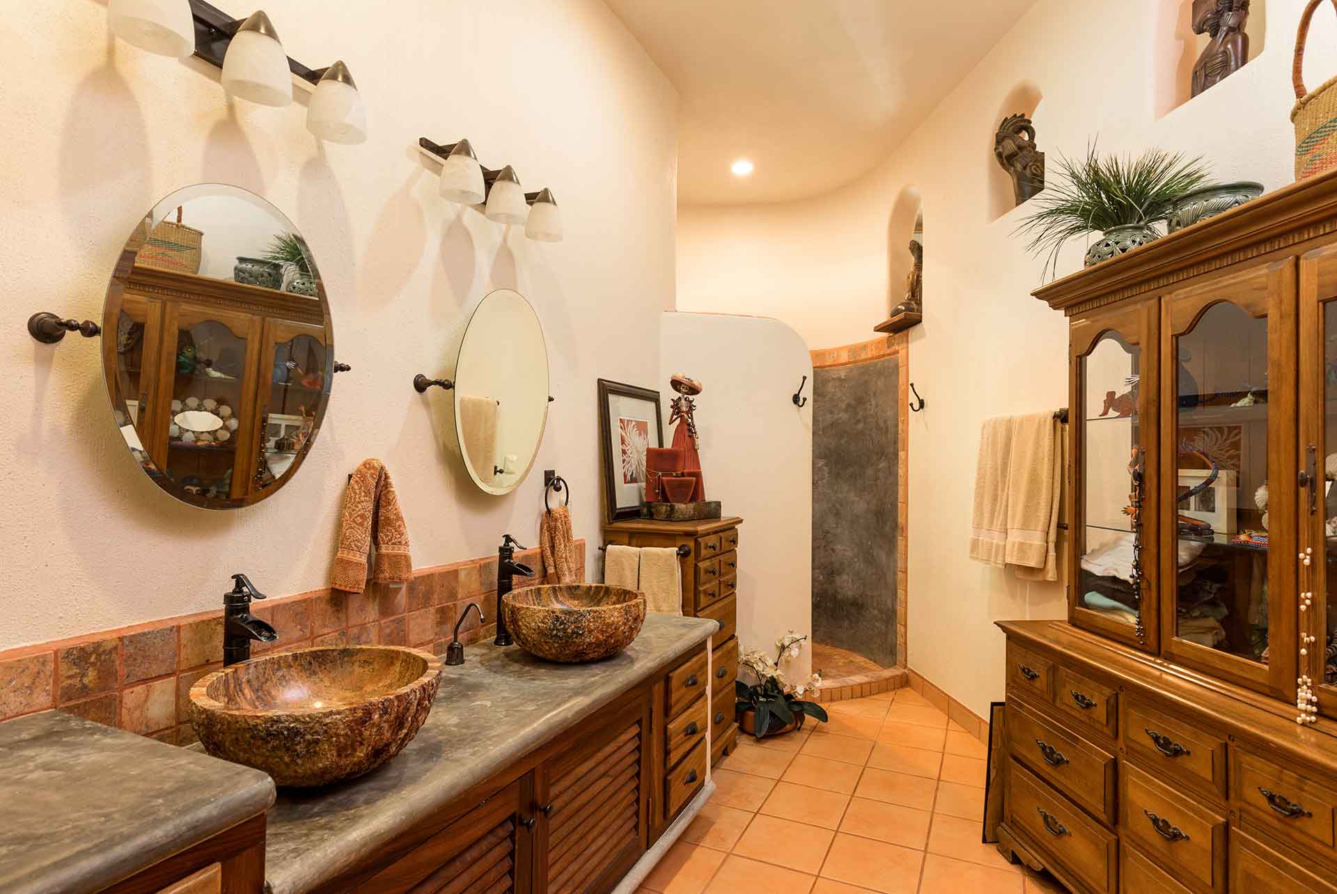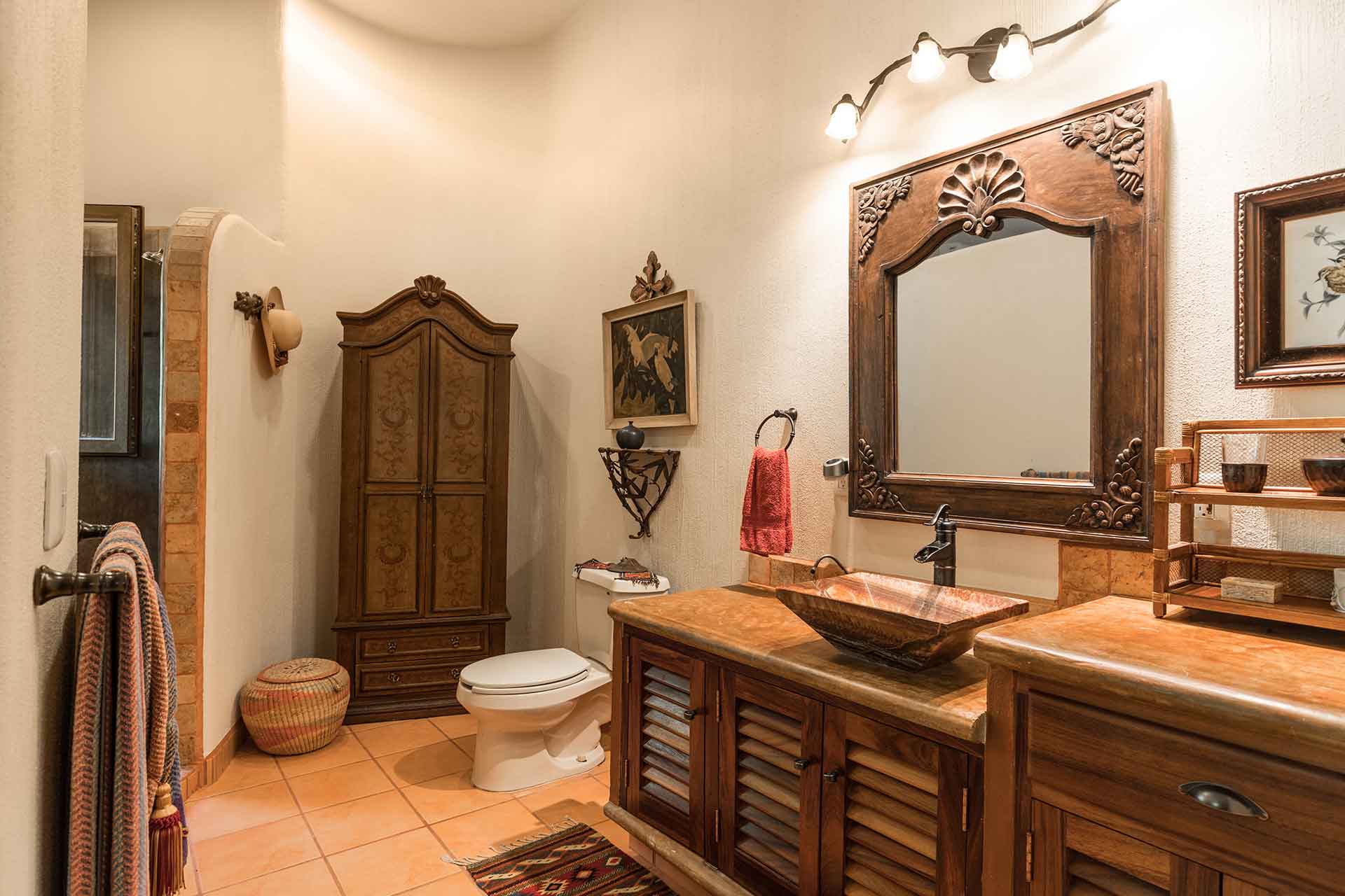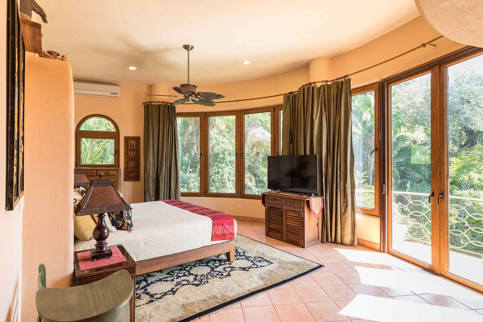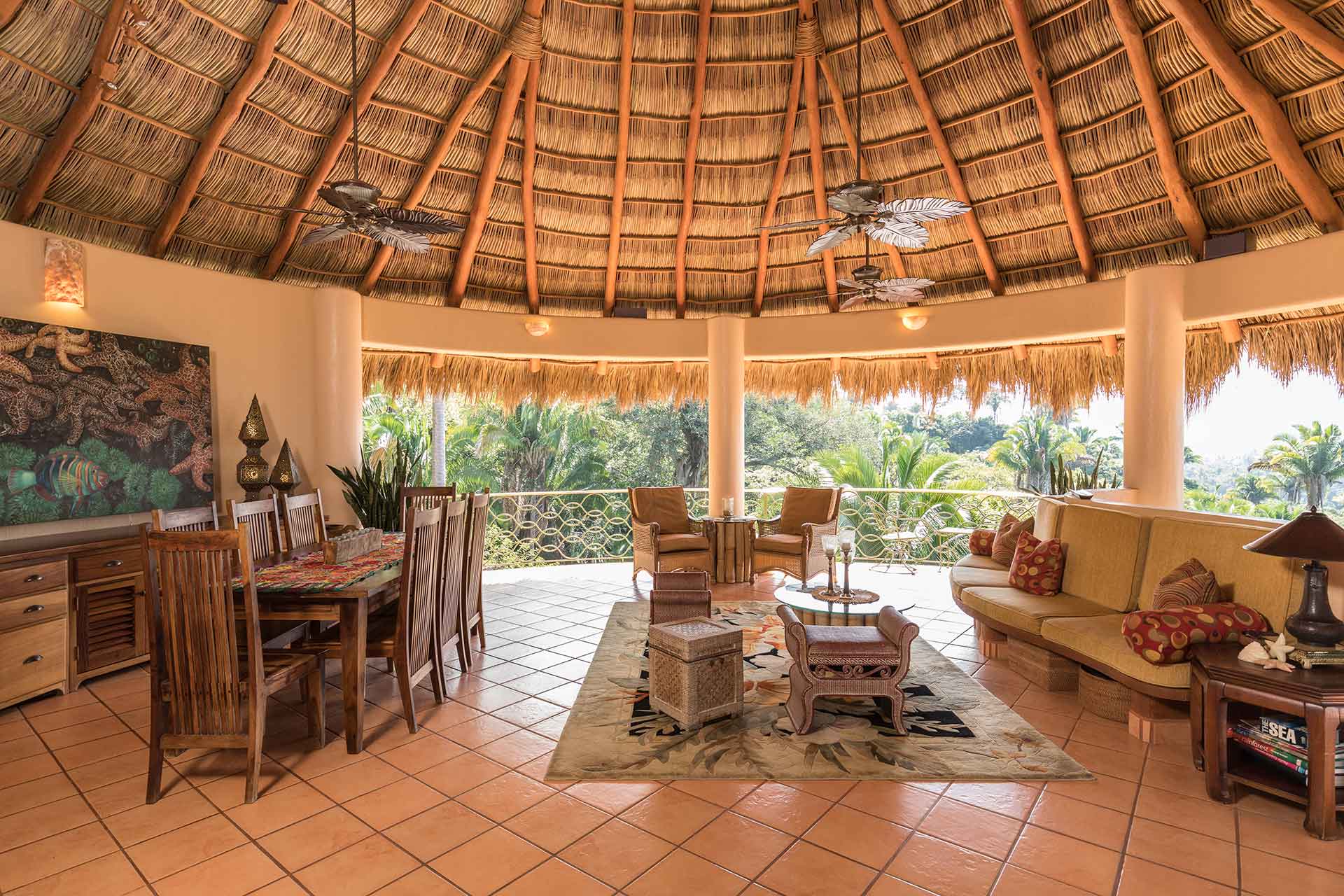 The spacious kitchen and barbeque area was designed for hosting family and friends. The living and dining areas are open-concept and lead out to the rooftop pool and veranda. The expansive living area adjoins the tropical, indoor dining area under a beautifully constructed palapa, which overlooks the pool, jungle and ocean. Stairs lead down to the three en-suite bedrooms, all of which are tastefully decorated and offer views of the ocean or jungle.