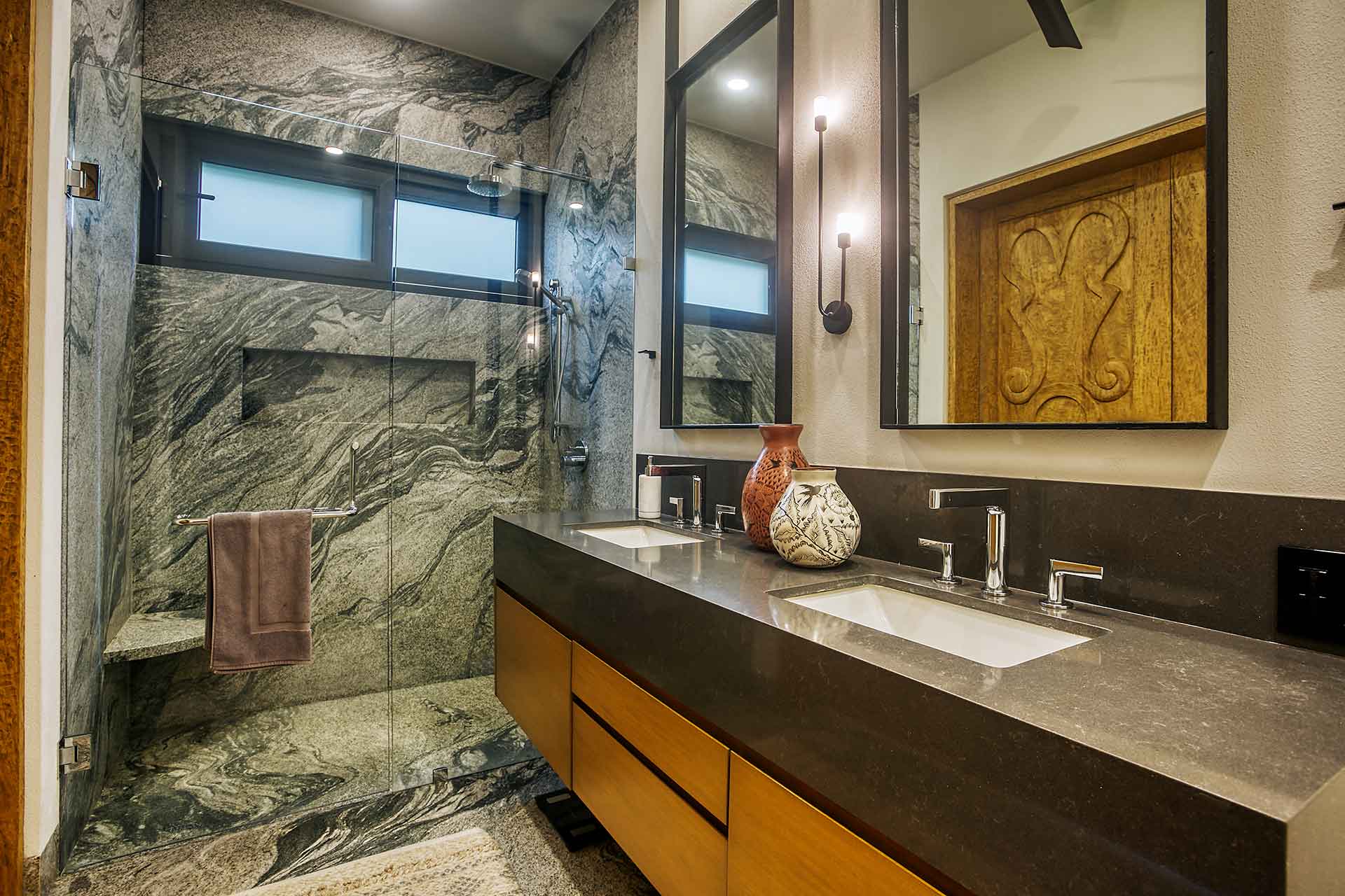 As you enter the multi-level villa, you are immediately encompassed in breathtaking architecture, décor and curated gardens while being embraced by the impressive Pacific Ocean views and breeze. The combination of two homes in one villa provides ample common areas for everyone to gather as well as those that provide complete privacy.