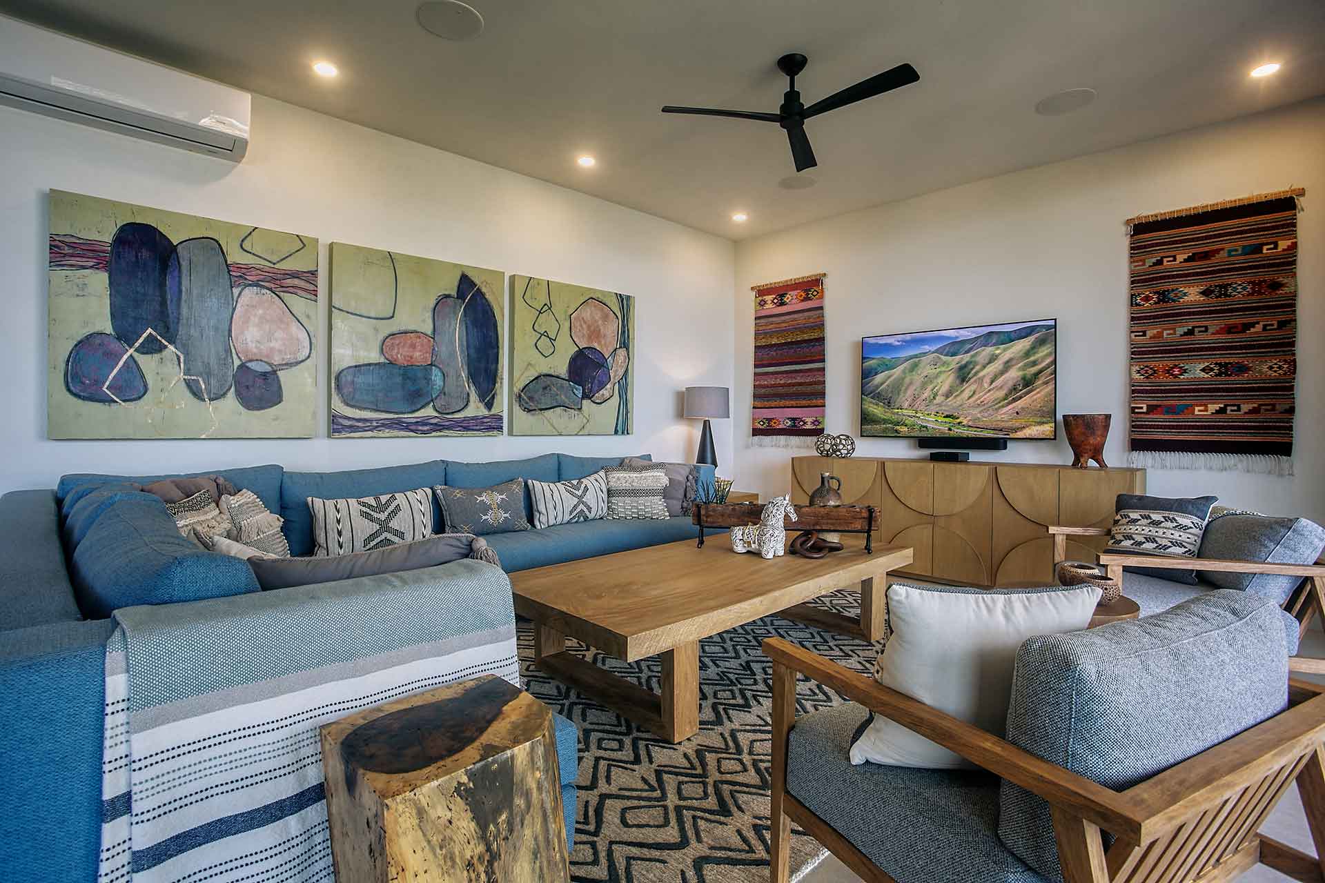 Perched on the hillside in the sought-after Costa Azul Residential neighborhood with impressionable ocean and neighborhood views lies Villa Higuera. Upon entering the grounds, one is immediately transported into a private, resort-like setting with the comfort and privacy of an elegant villa. Completed in 2021, the property’s most unique feature is that it contains two complete homes seamlessly combined to make one larger villa hosting a total of five en suite bedrooms, two pools, game room and media room. The entire villa was designed with luxurious details, plush furnishings and spectacular artwork.